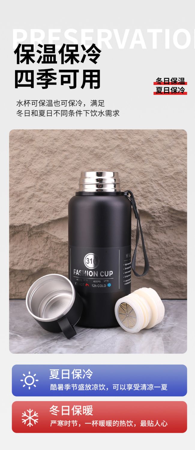 夏季大容量316加厚保温杯短粗款便携男女士水杯学生便携车载旅行
