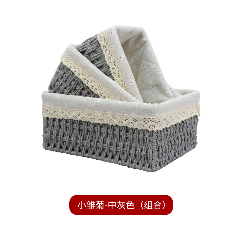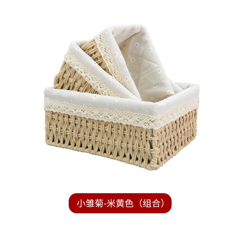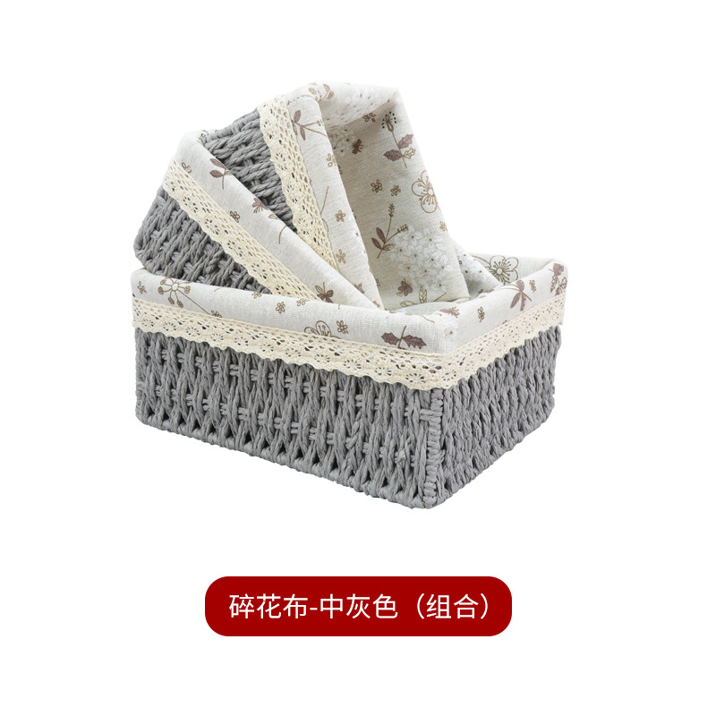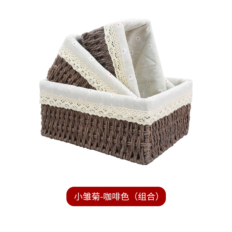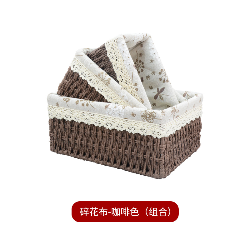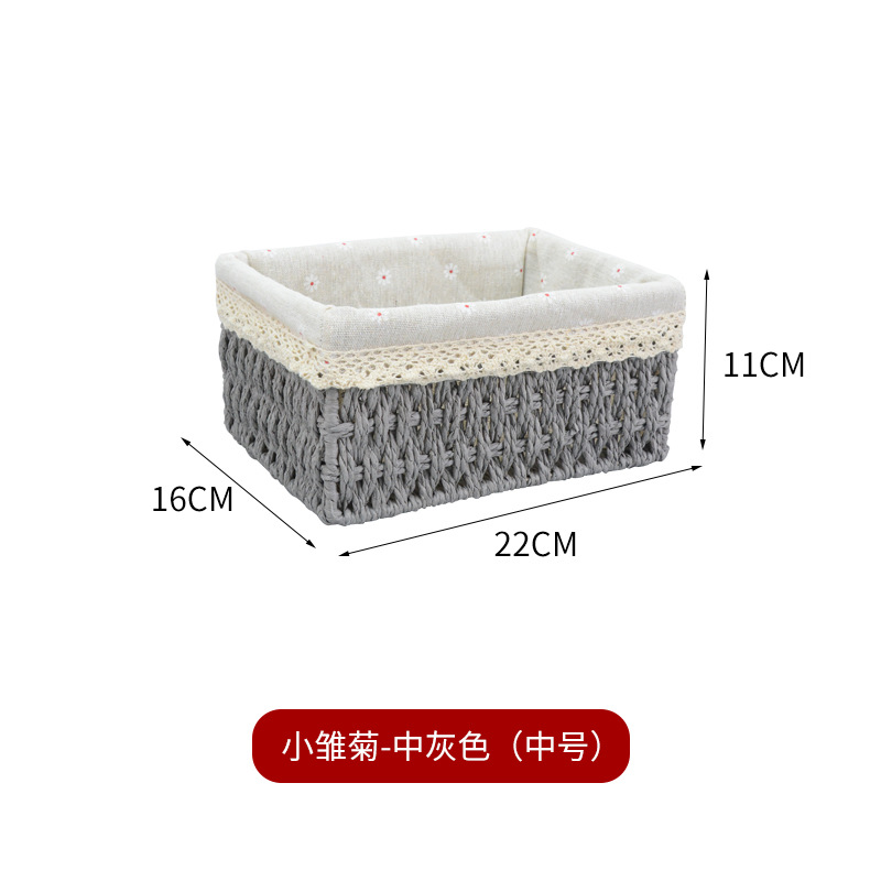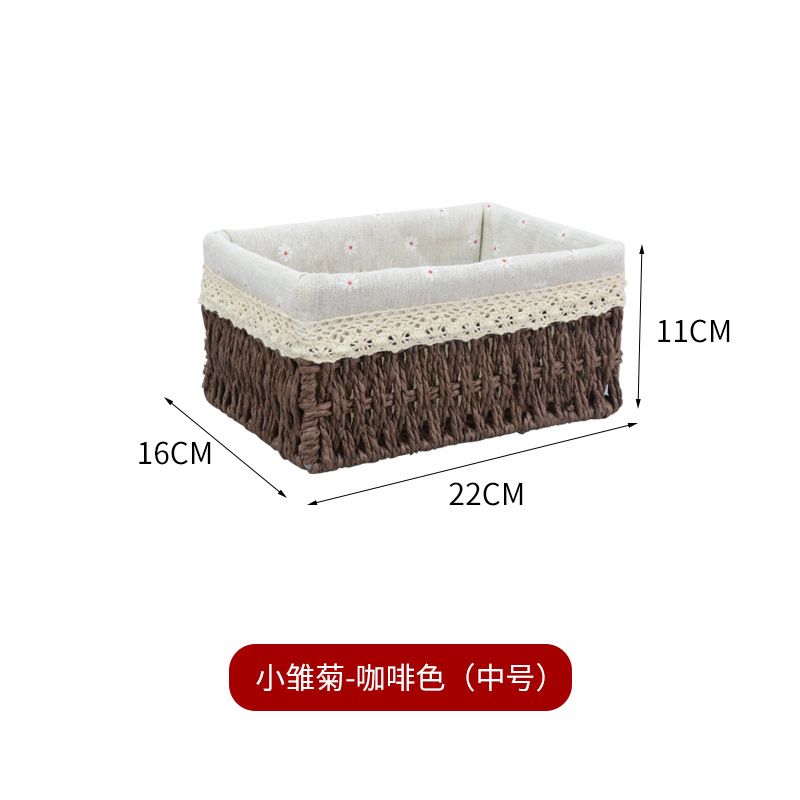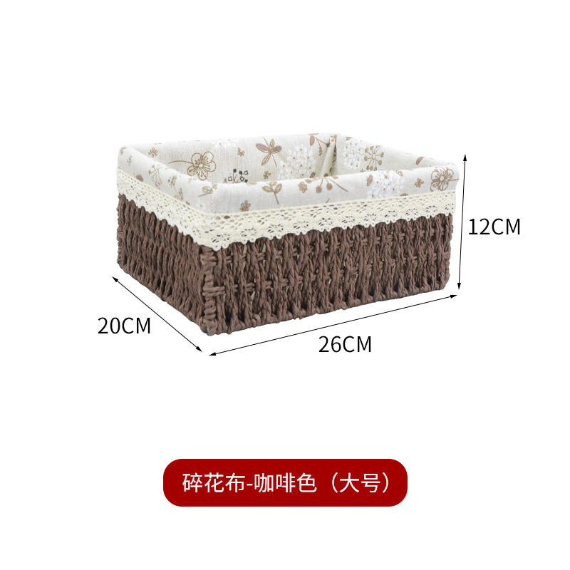 桌面杂物整理收纳零食收纳盒藤编玩具收纳纸绳筐编织收纳篮收纳框