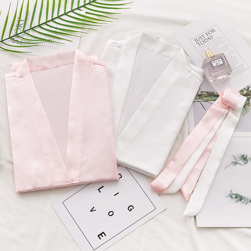 新娘晨袍浴袍伴娘团浴袍结婚睡衣春秋仿真丝女士冰丝薄款睡袍批发