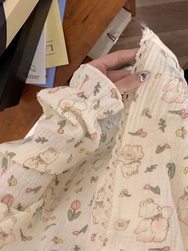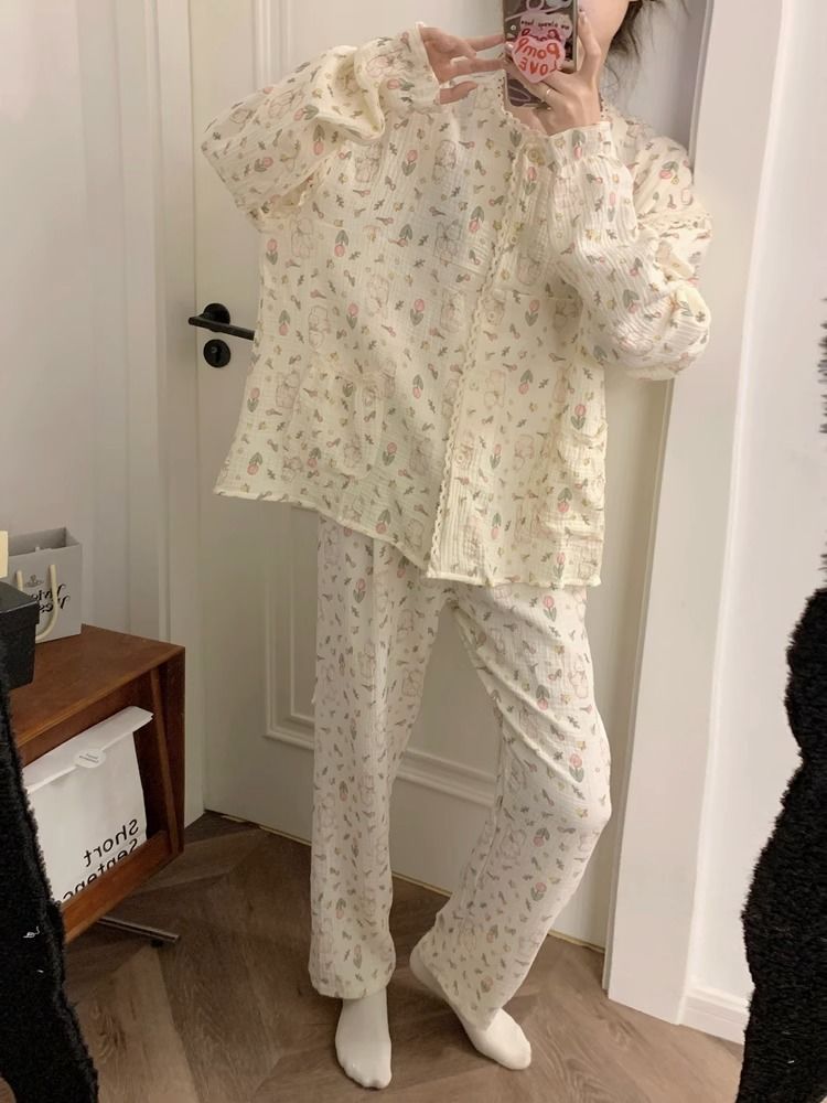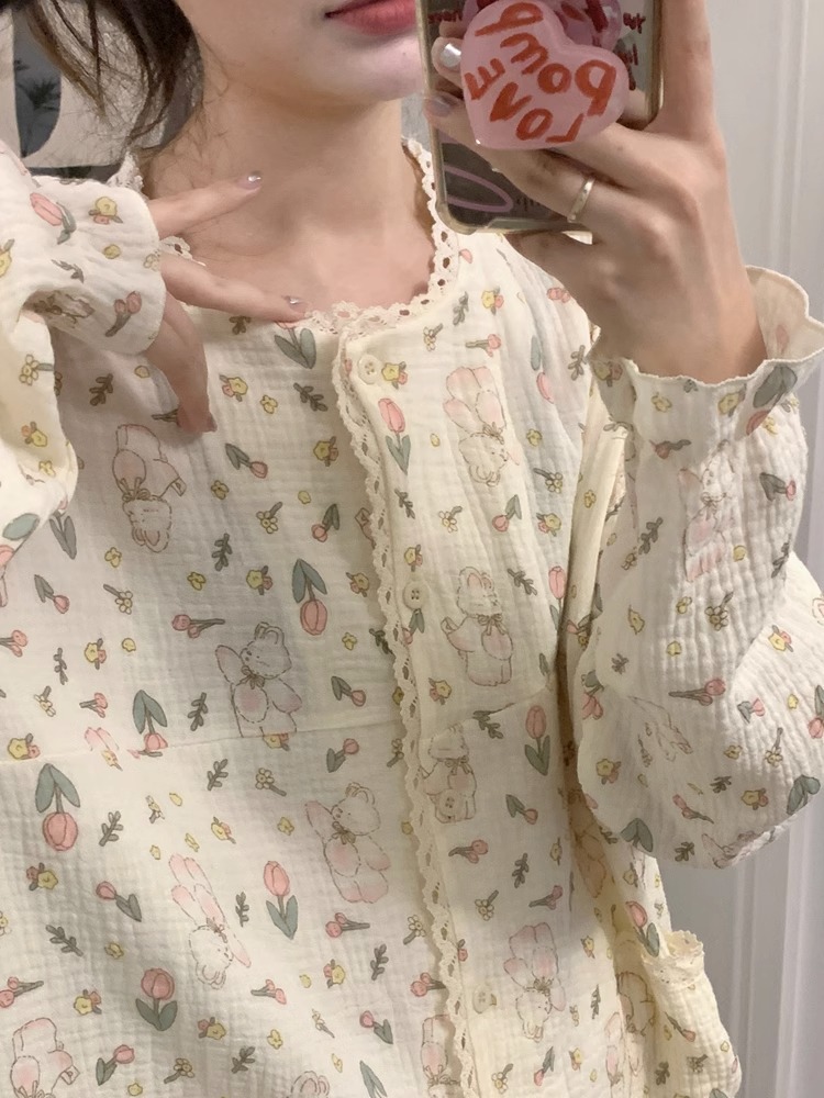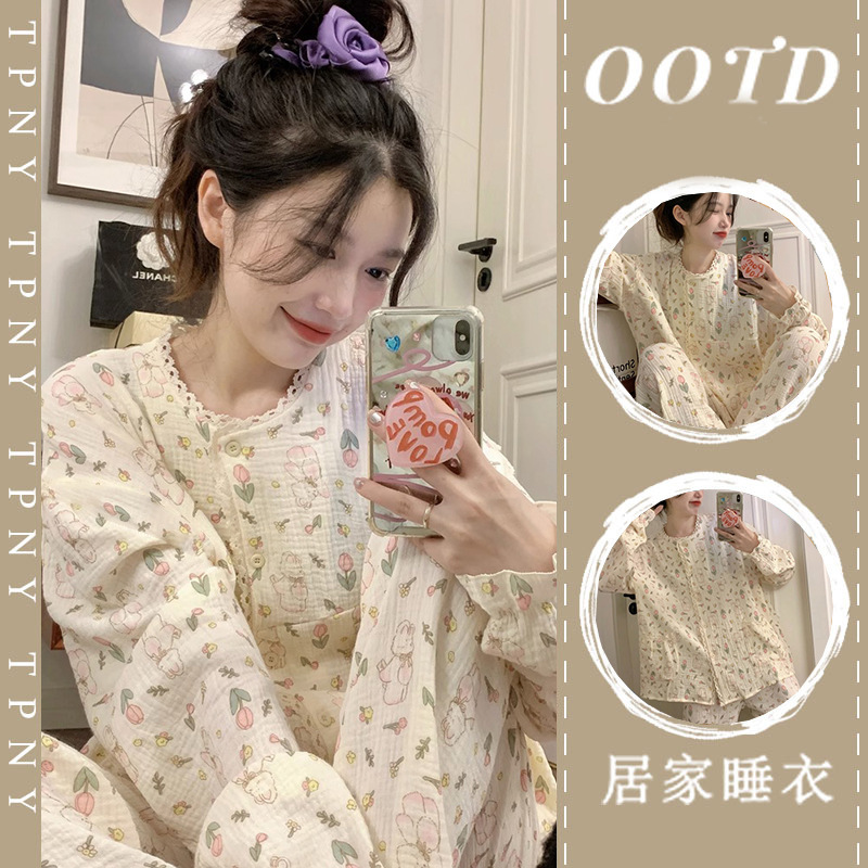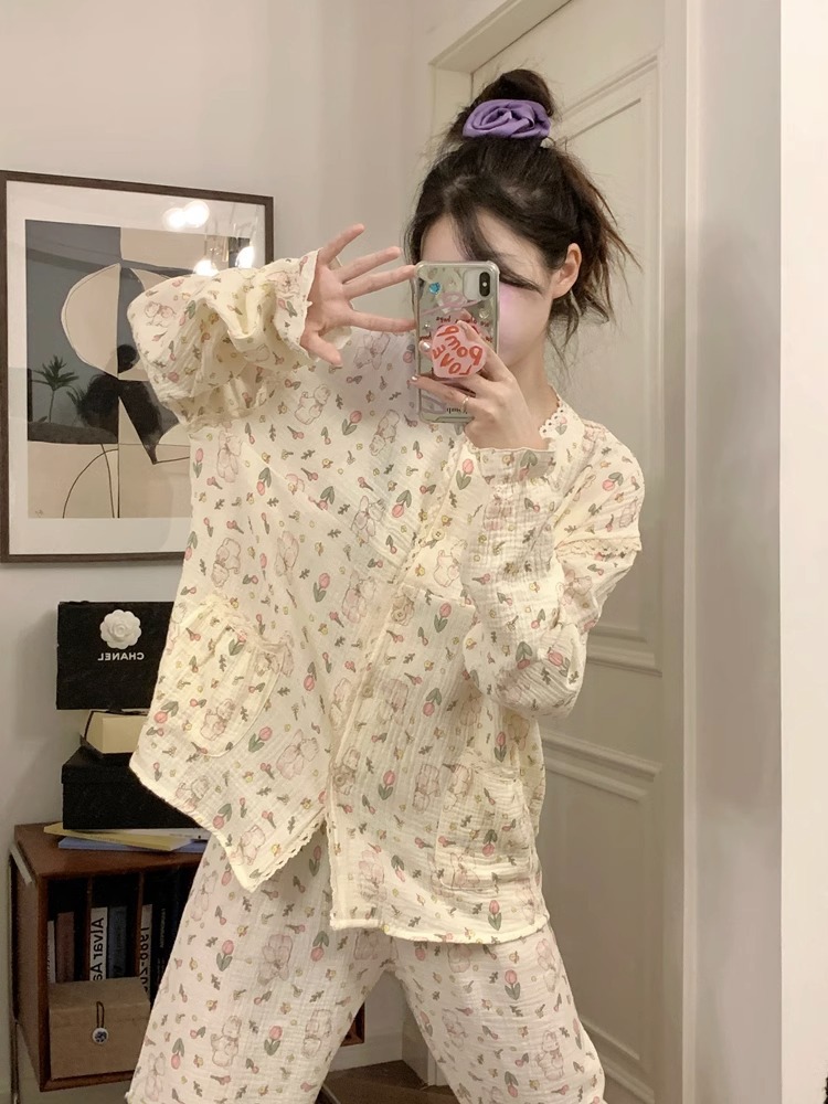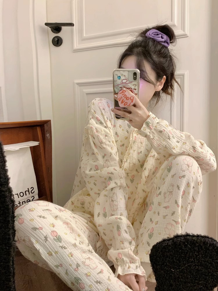 韩版睡衣女春秋2023年卡通家居服长袖套装女款甜美可外穿两件套秋