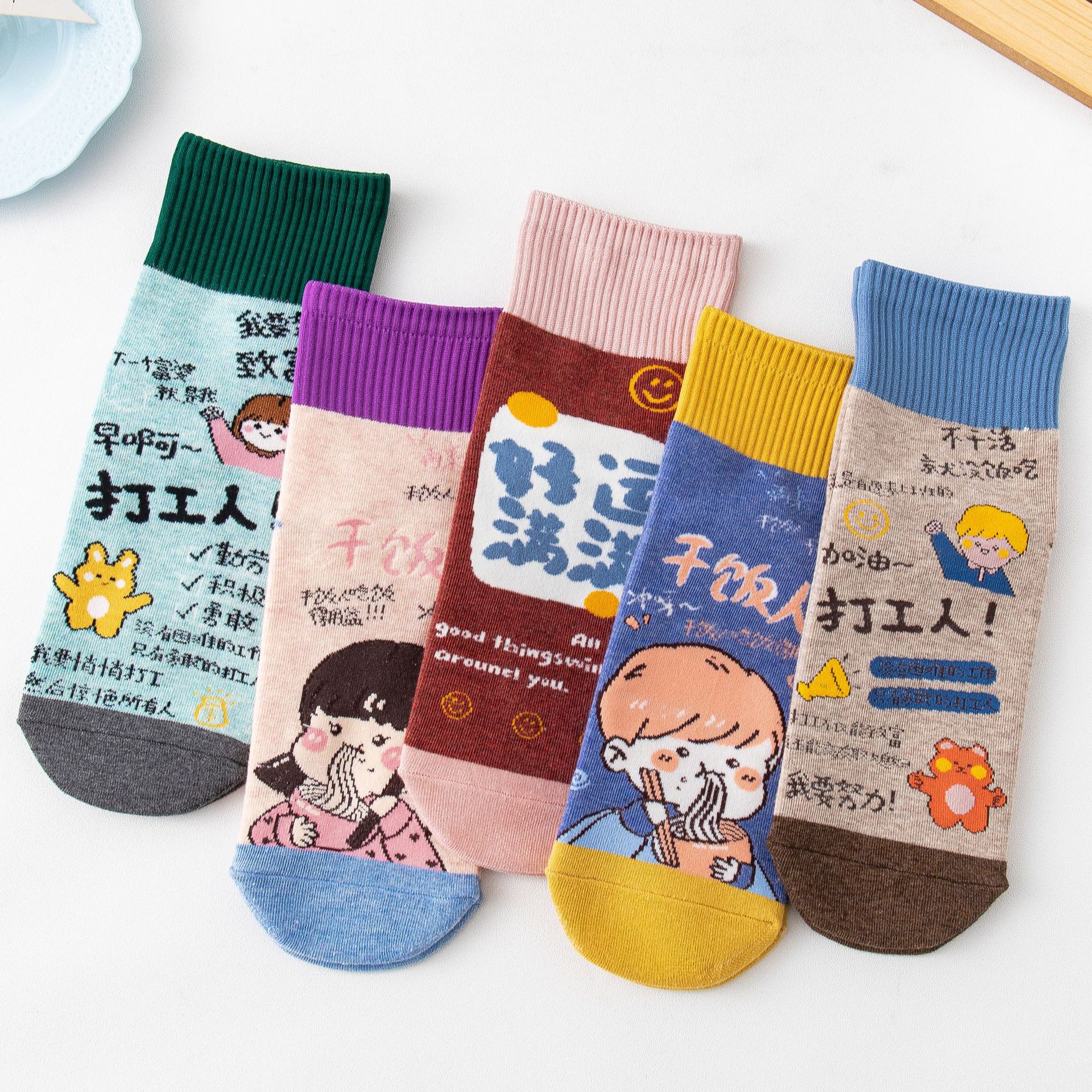 网红棋盘格袜子女新品卡通小熊中筒袜棉质菱形直板女袜批发诸暨袜