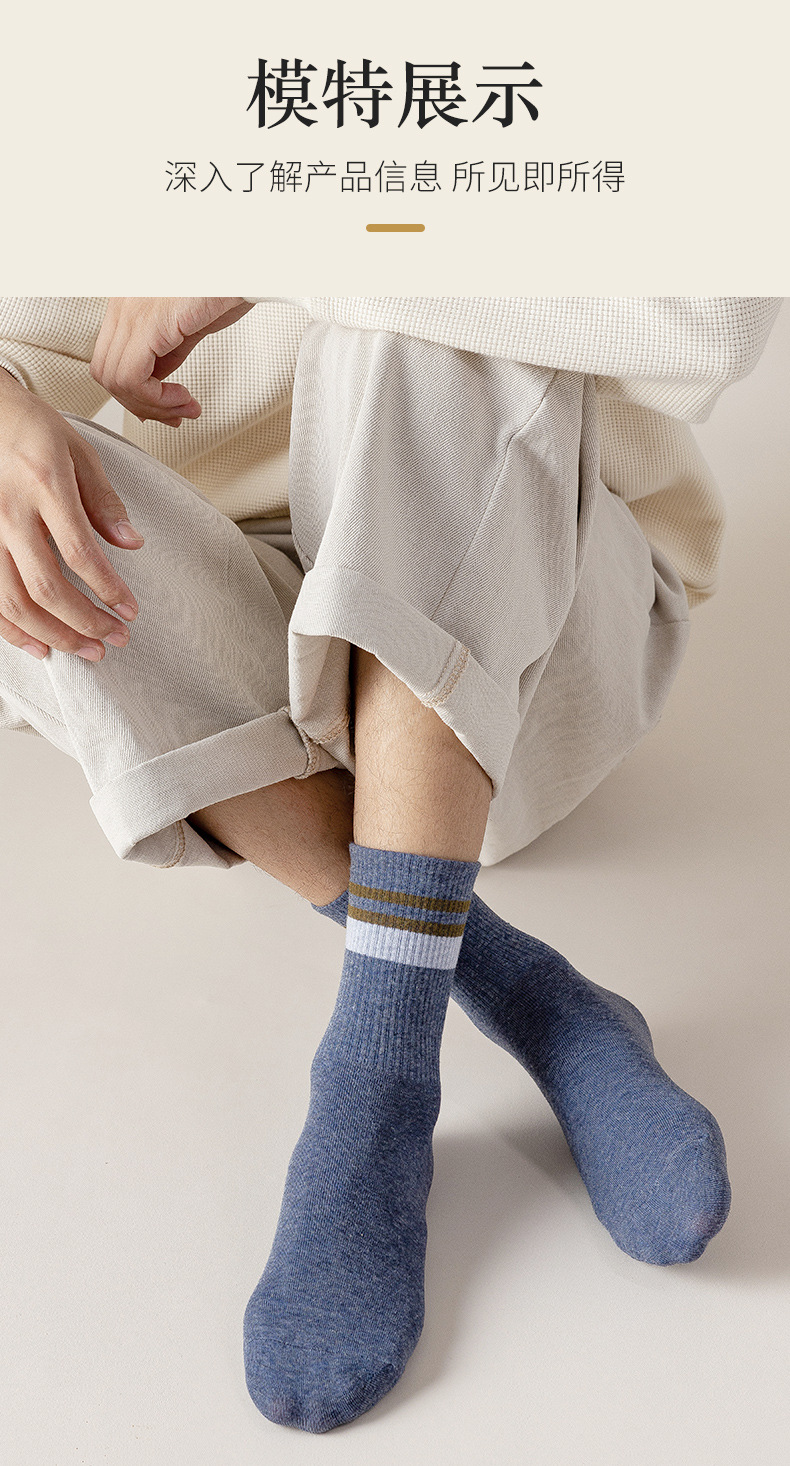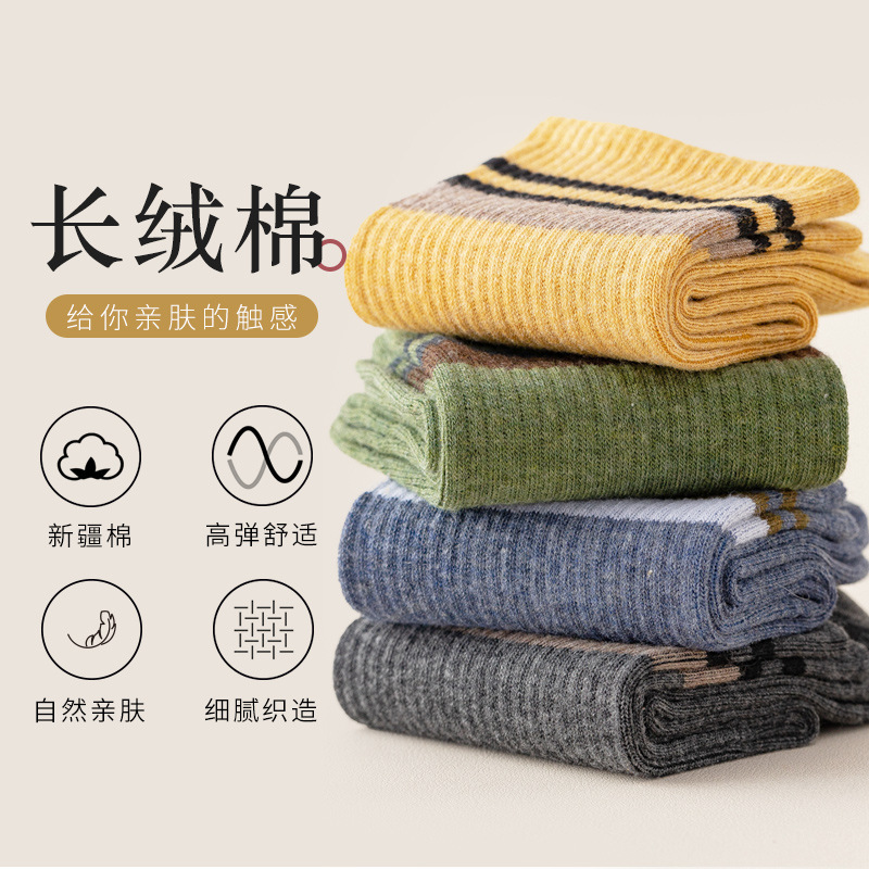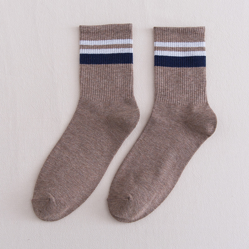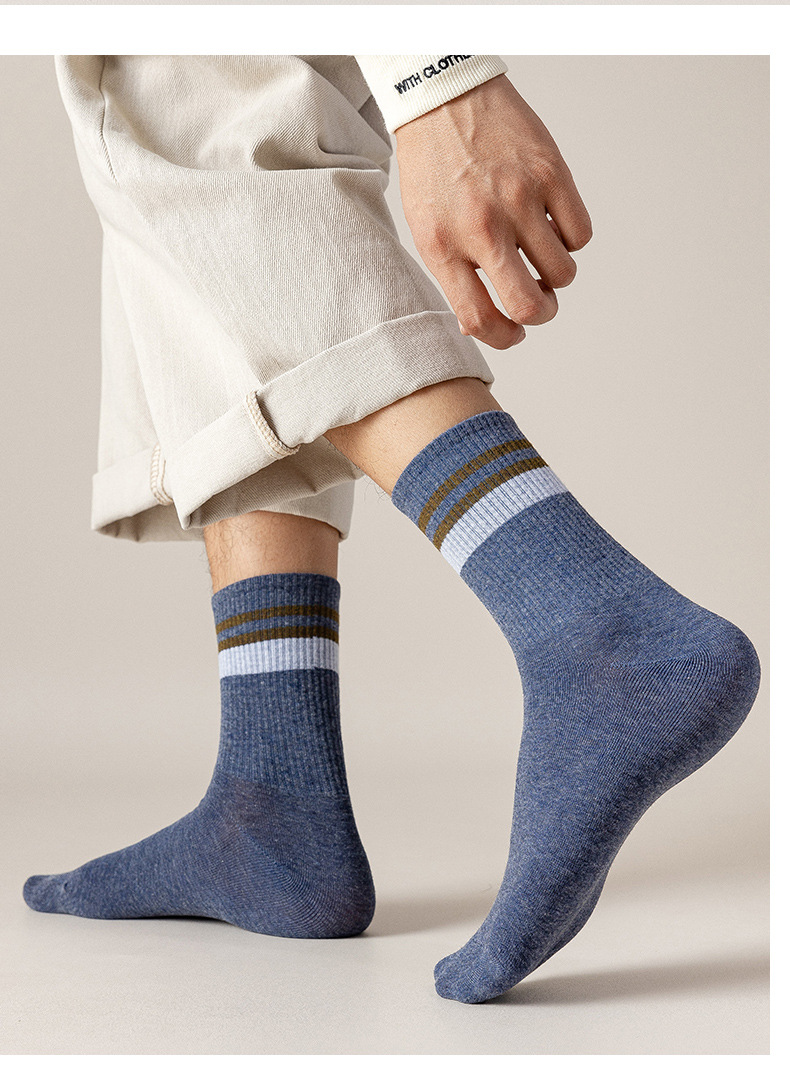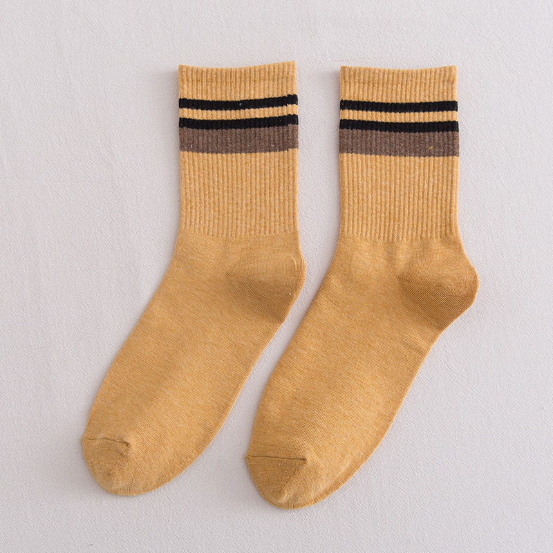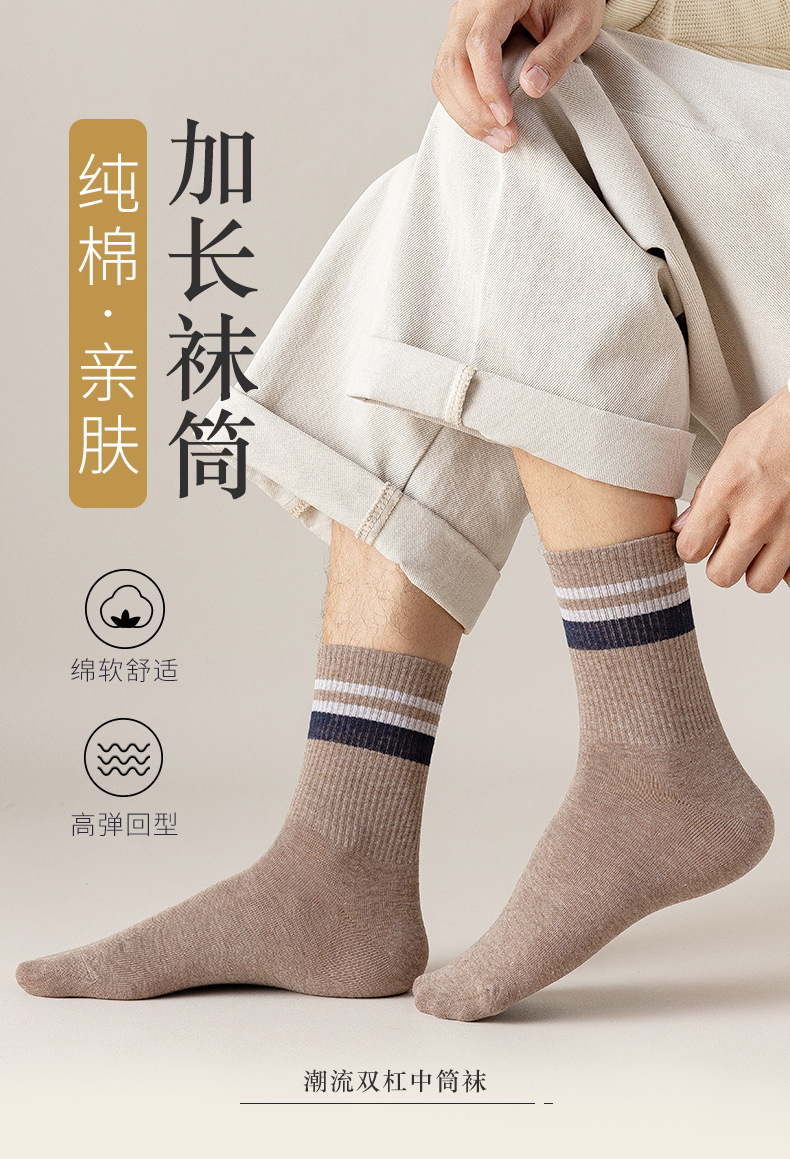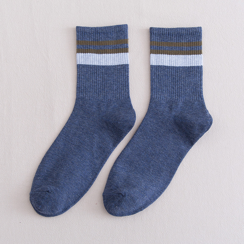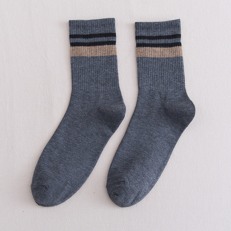 诸暨袜子男春秋中筒袜韩系潮流条纹长筒学生运动休闲高帮棉袜批发