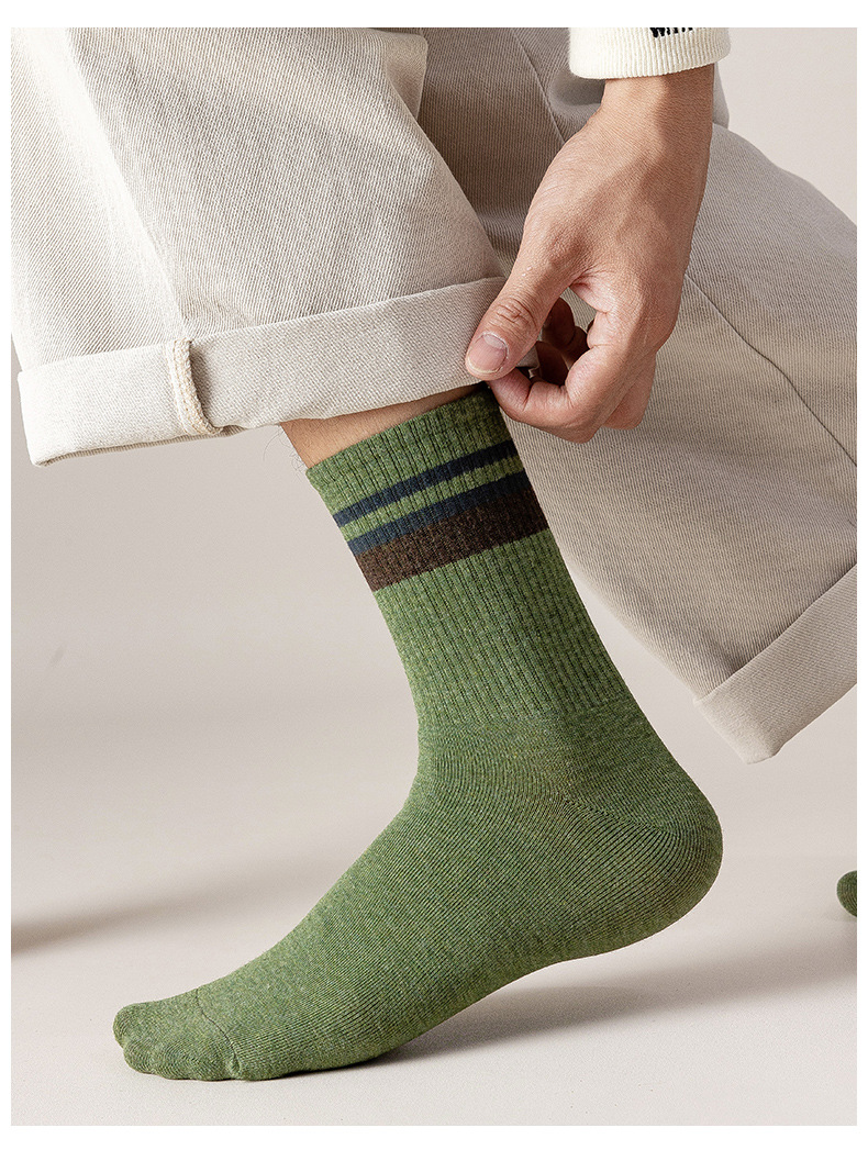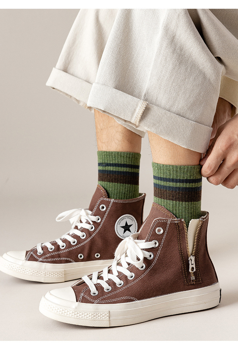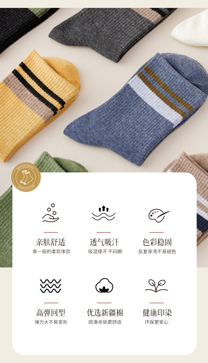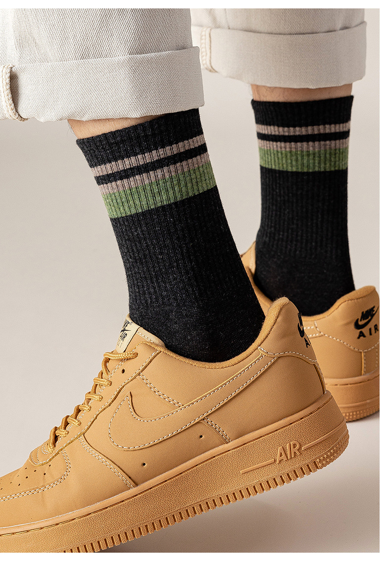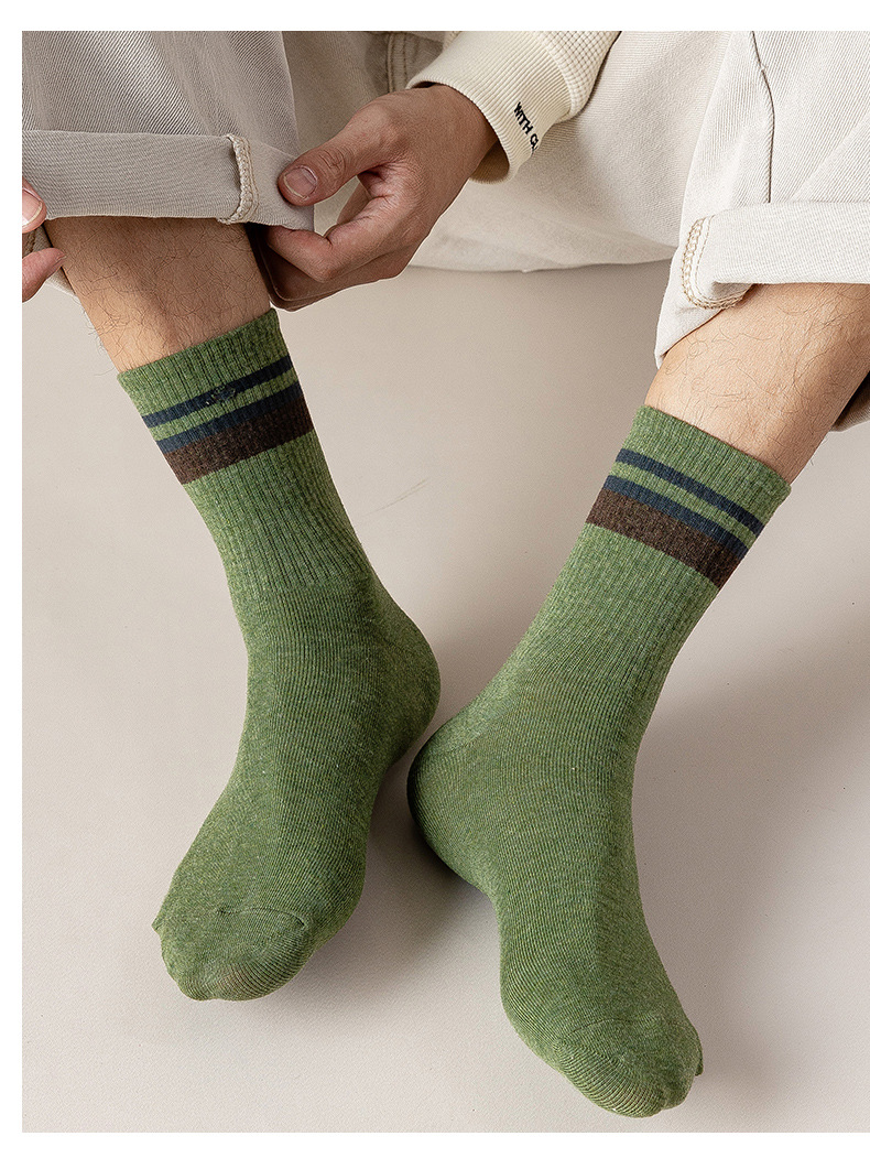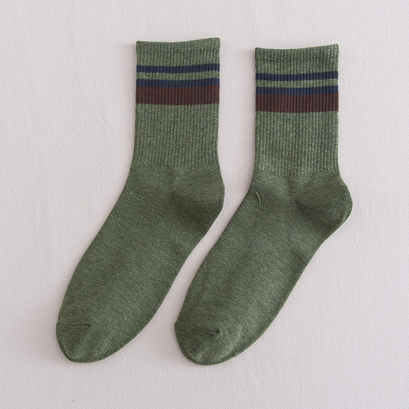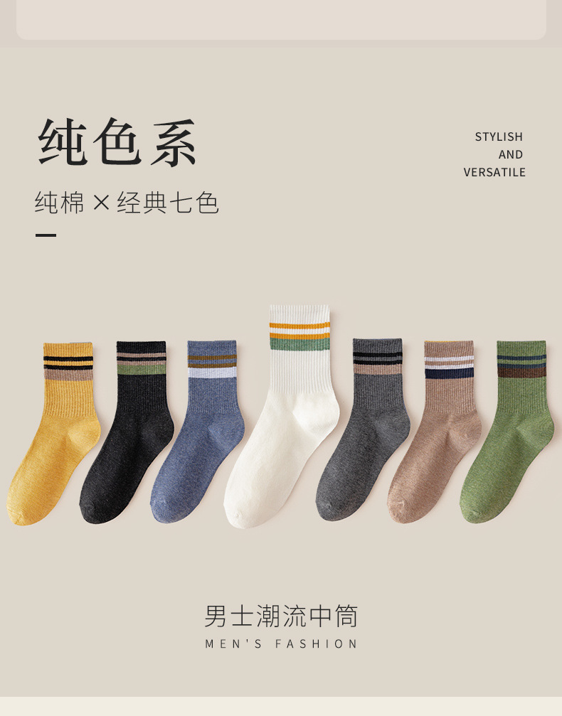 诸暨袜子男春秋中筒袜韩系潮流条纹长筒学生运动休闲高帮棉袜批发