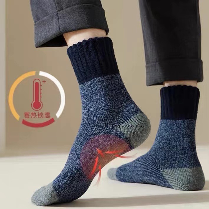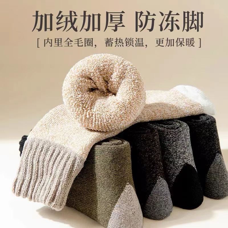 诸暨袜子秋冬季超厚羊毛袜男加厚保暖袜子加绒中筒抗寒毛圈雪地袜