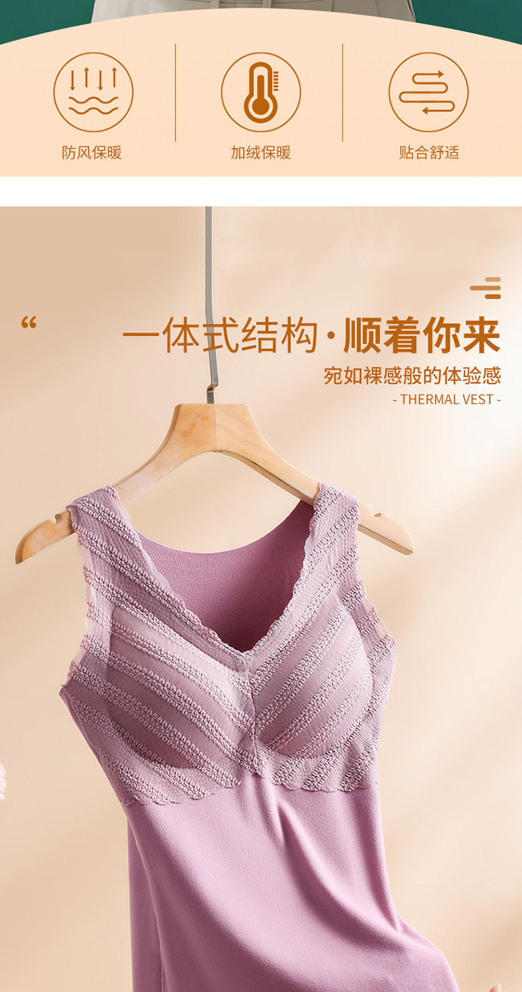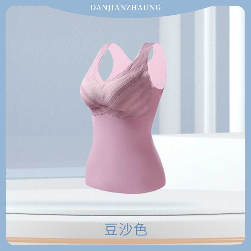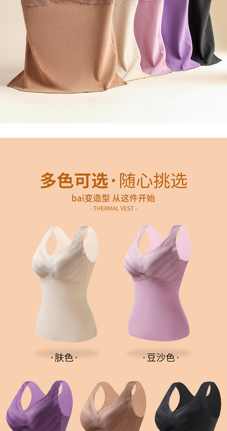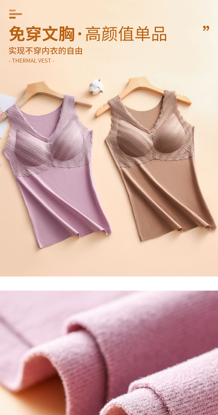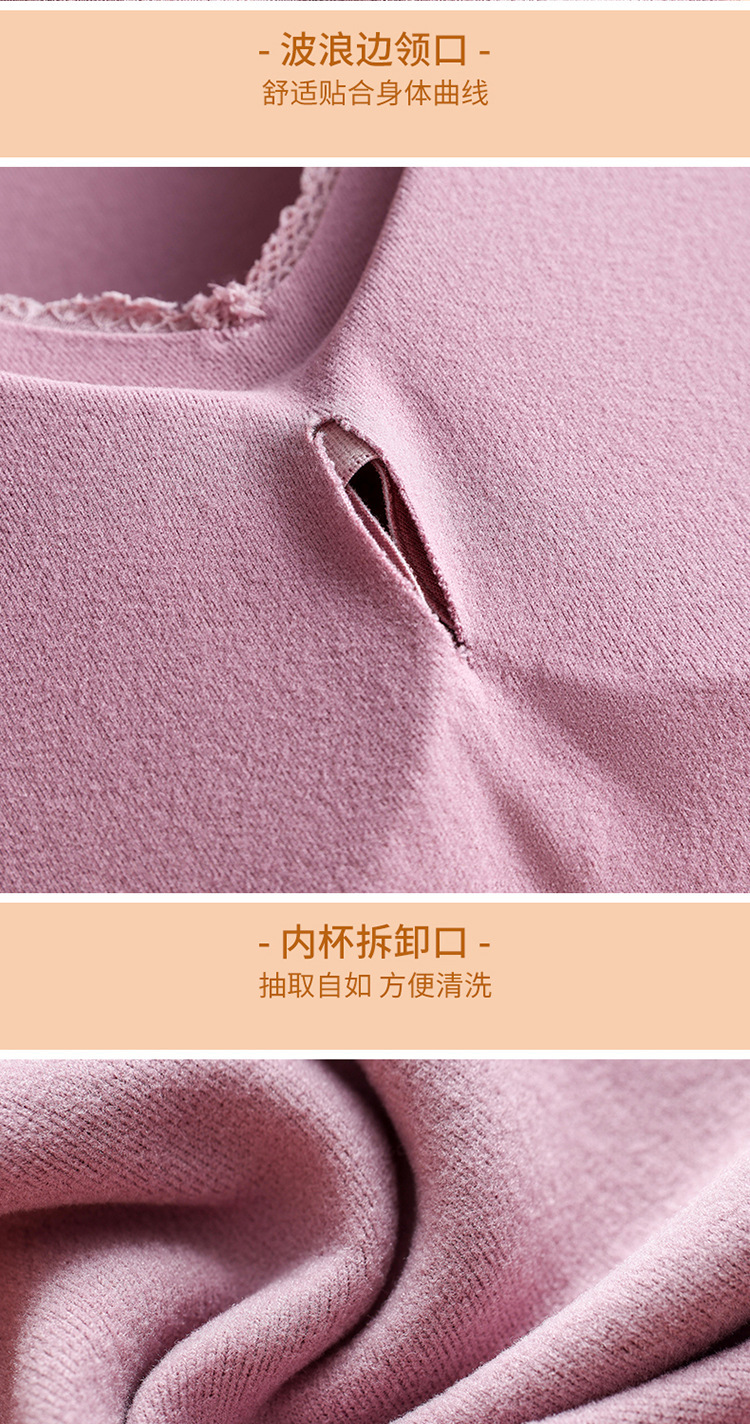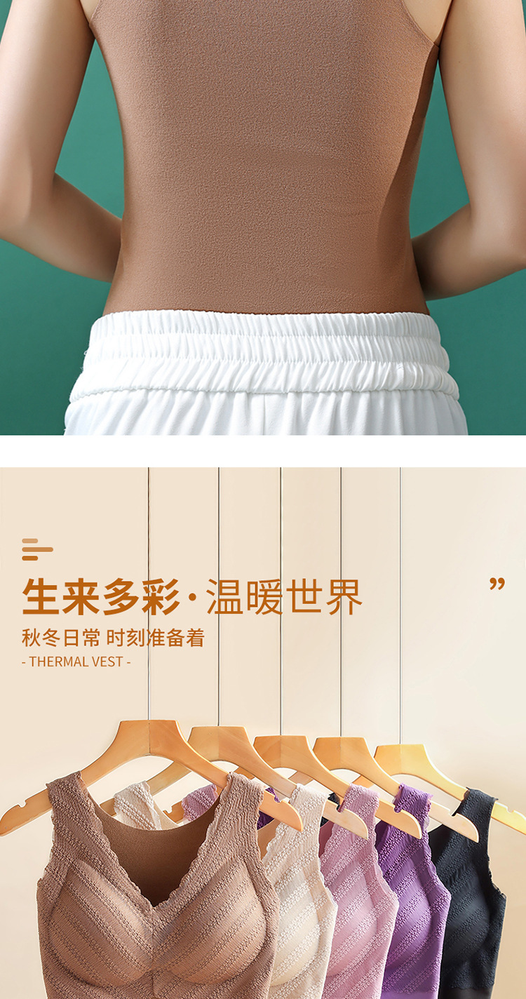 秋冬款德绒加厚无痕保暖背心女 一体式加绒带胸垫打底保暖内衣女