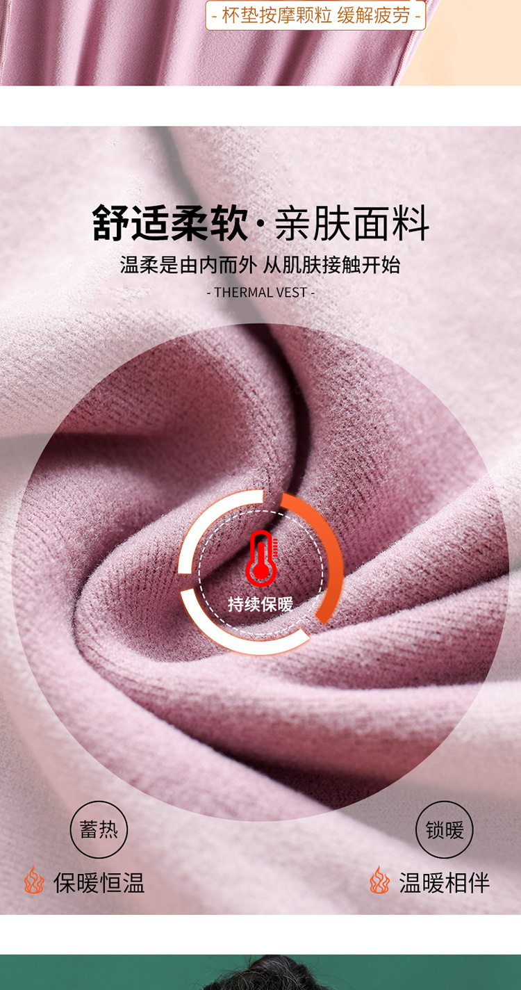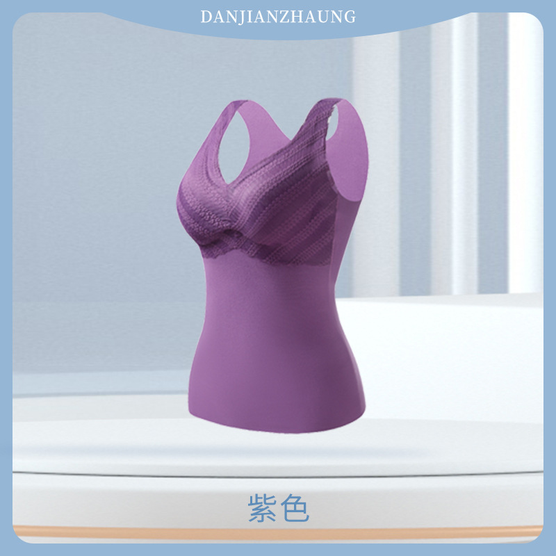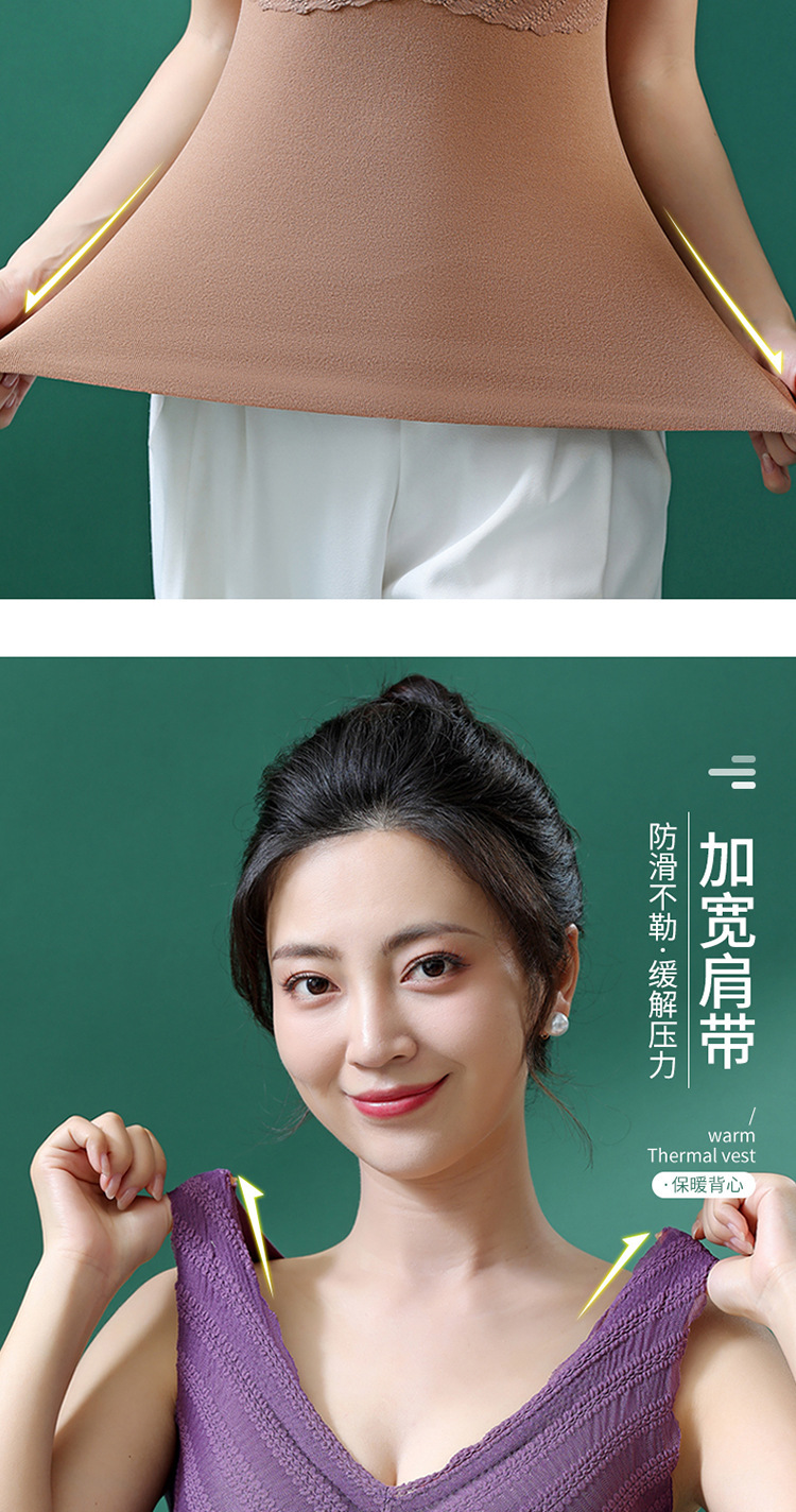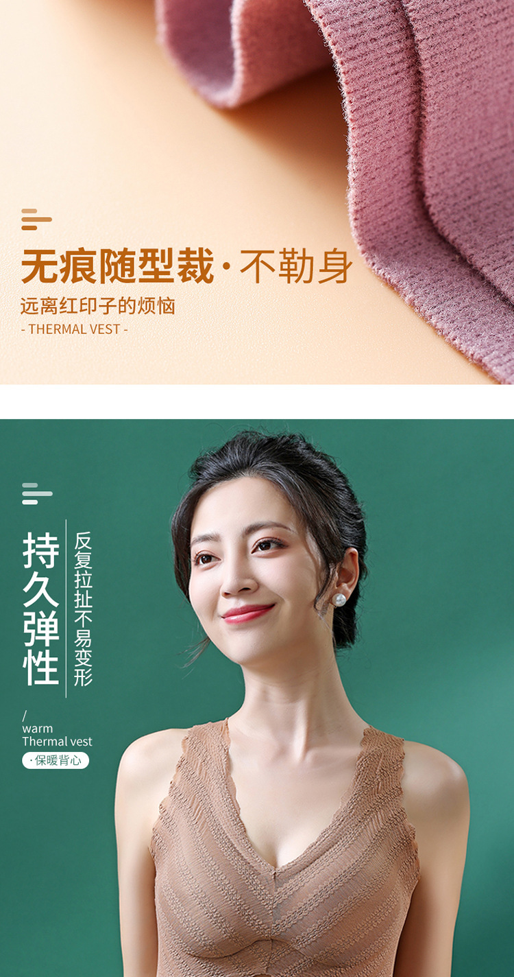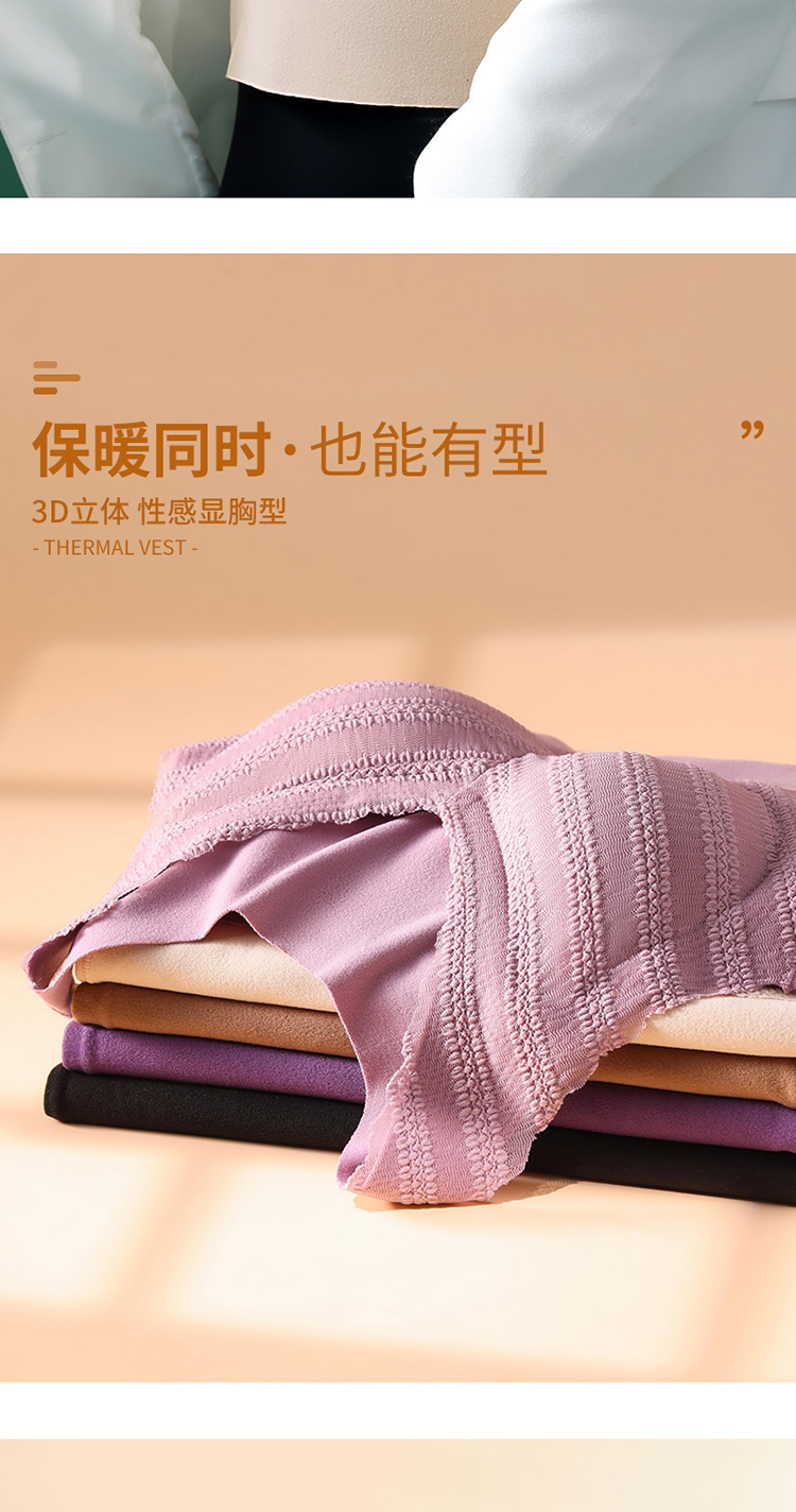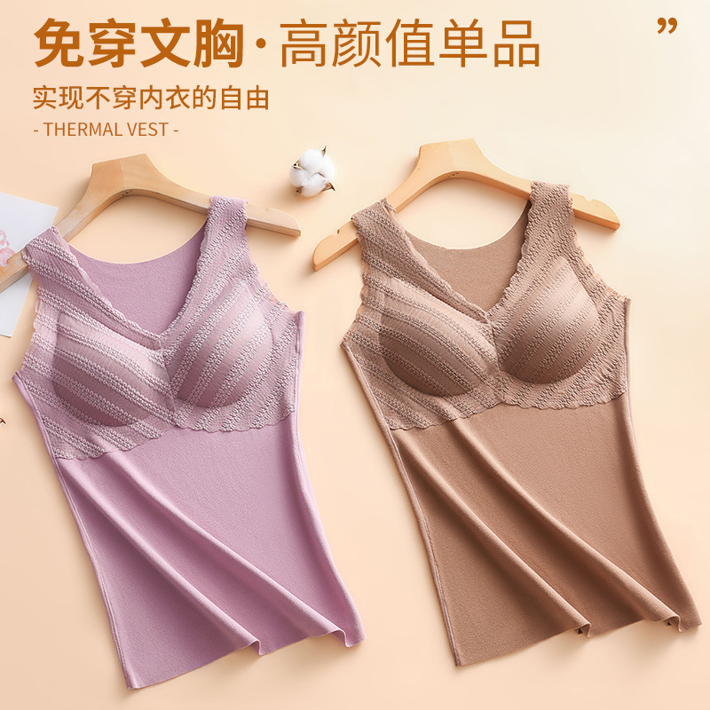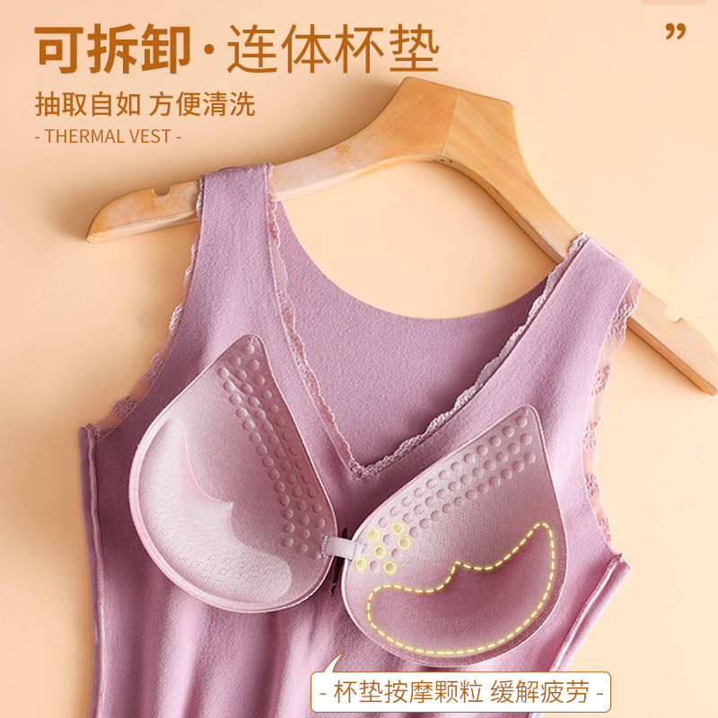 秋冬款德绒加厚无痕保暖背心女 一体式加绒带胸垫打底保暖内衣女