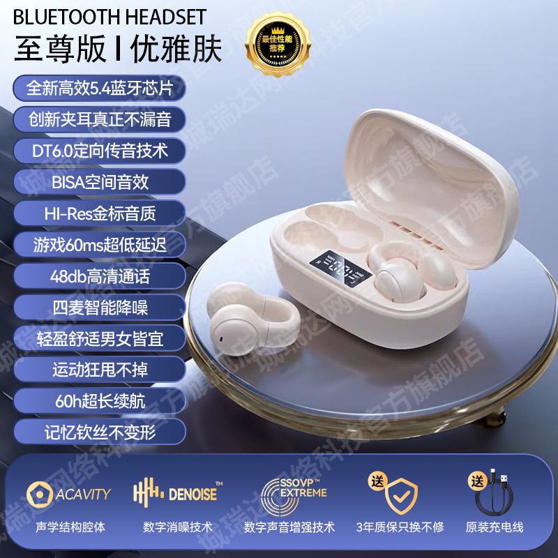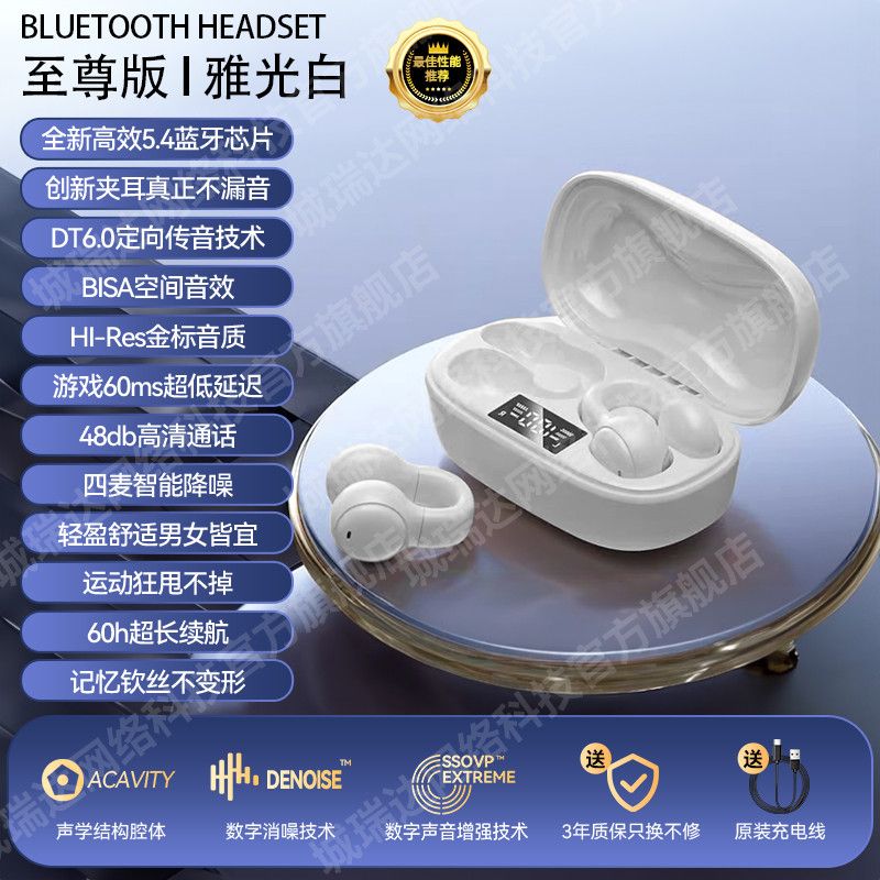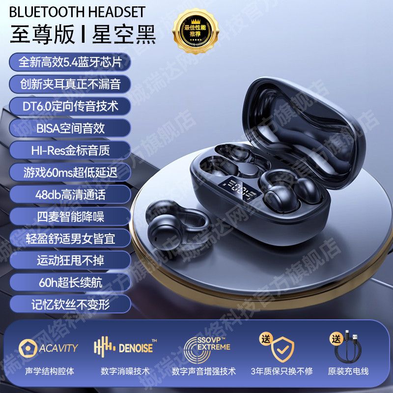 德国柏林之音2024新款骨传导蓝牙耳机无线夹耳式超长续航运动降噪