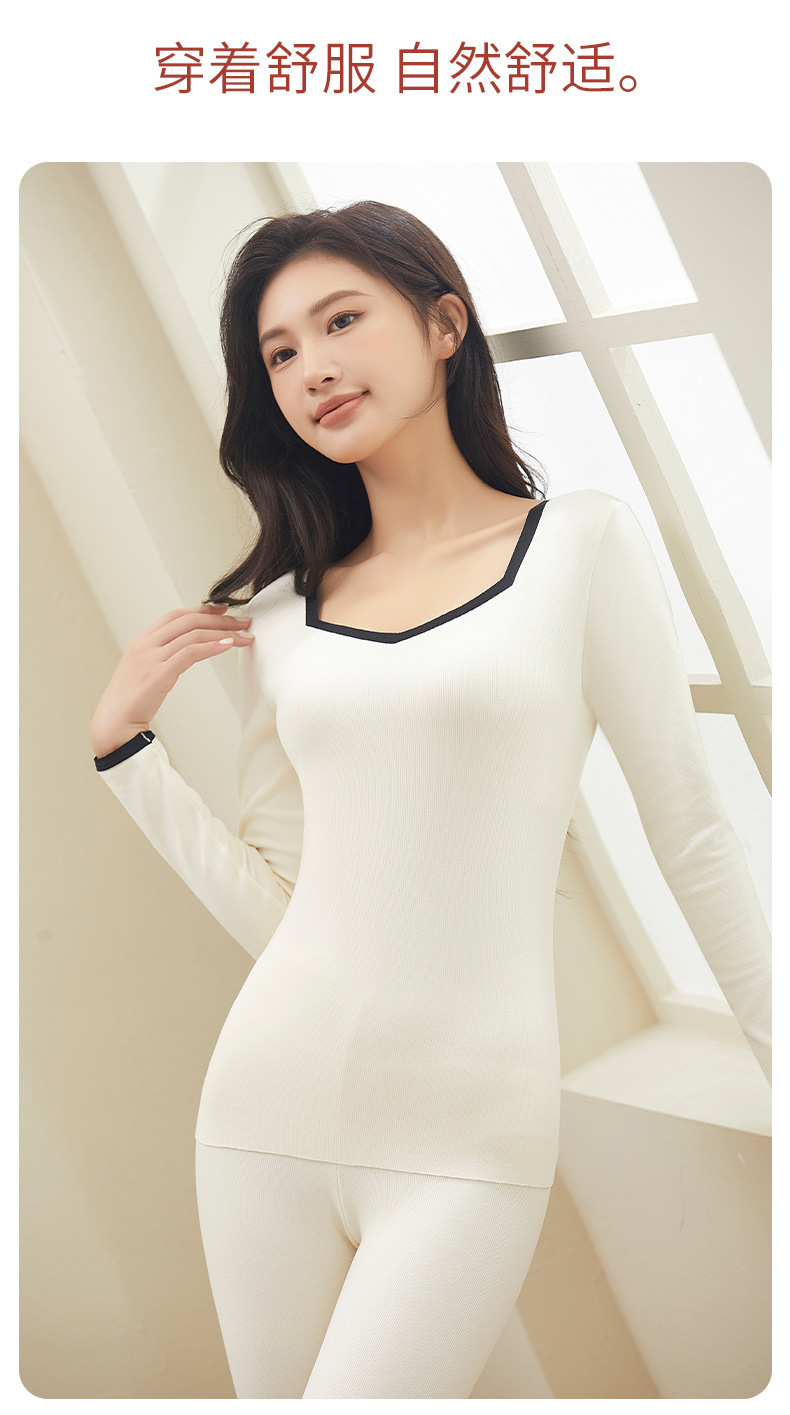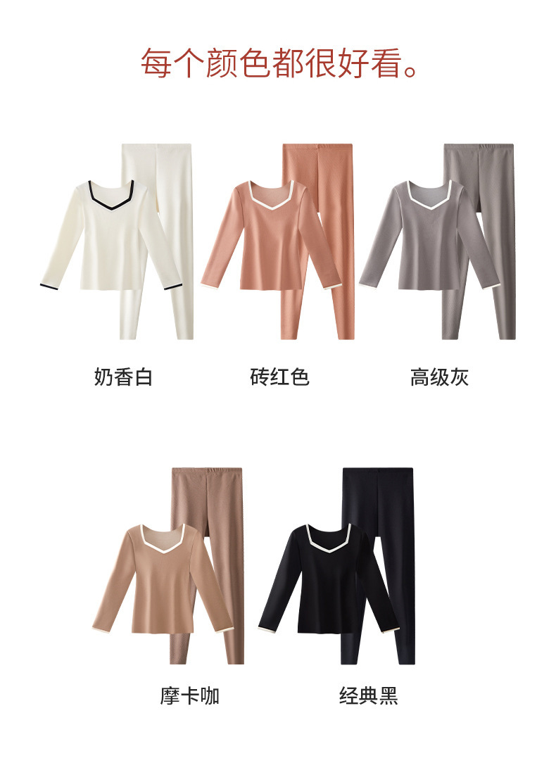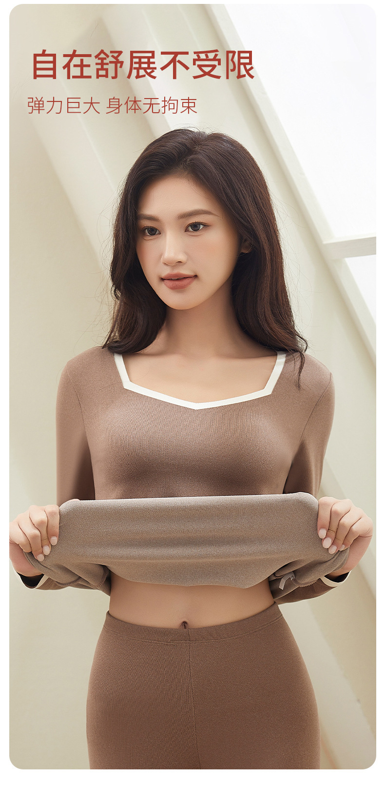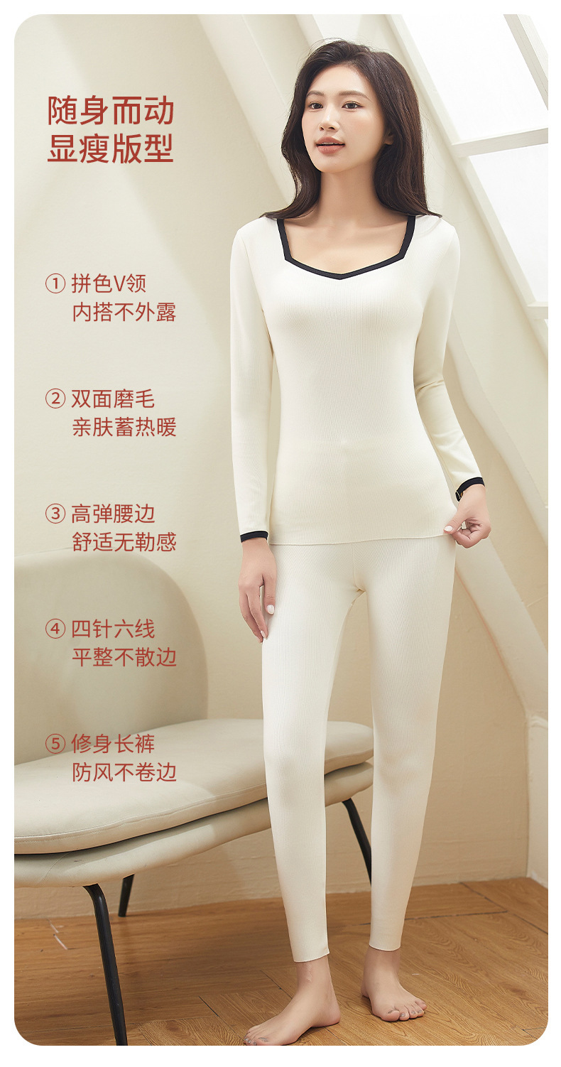 撞色德绒保暖内衣套装女士秋冬修身无痕打底加绒保暖衣秋衣套装女