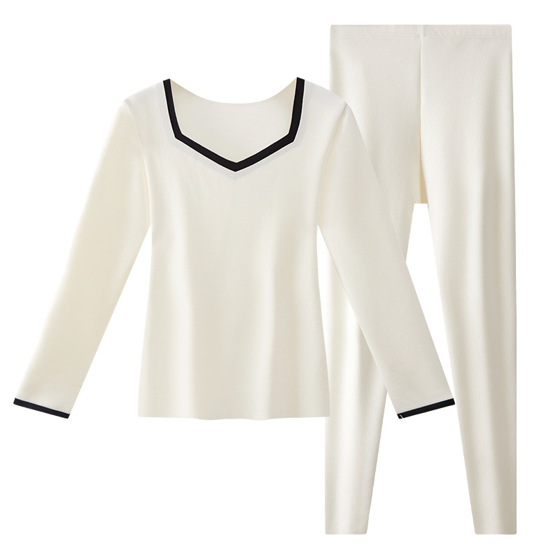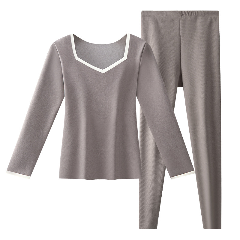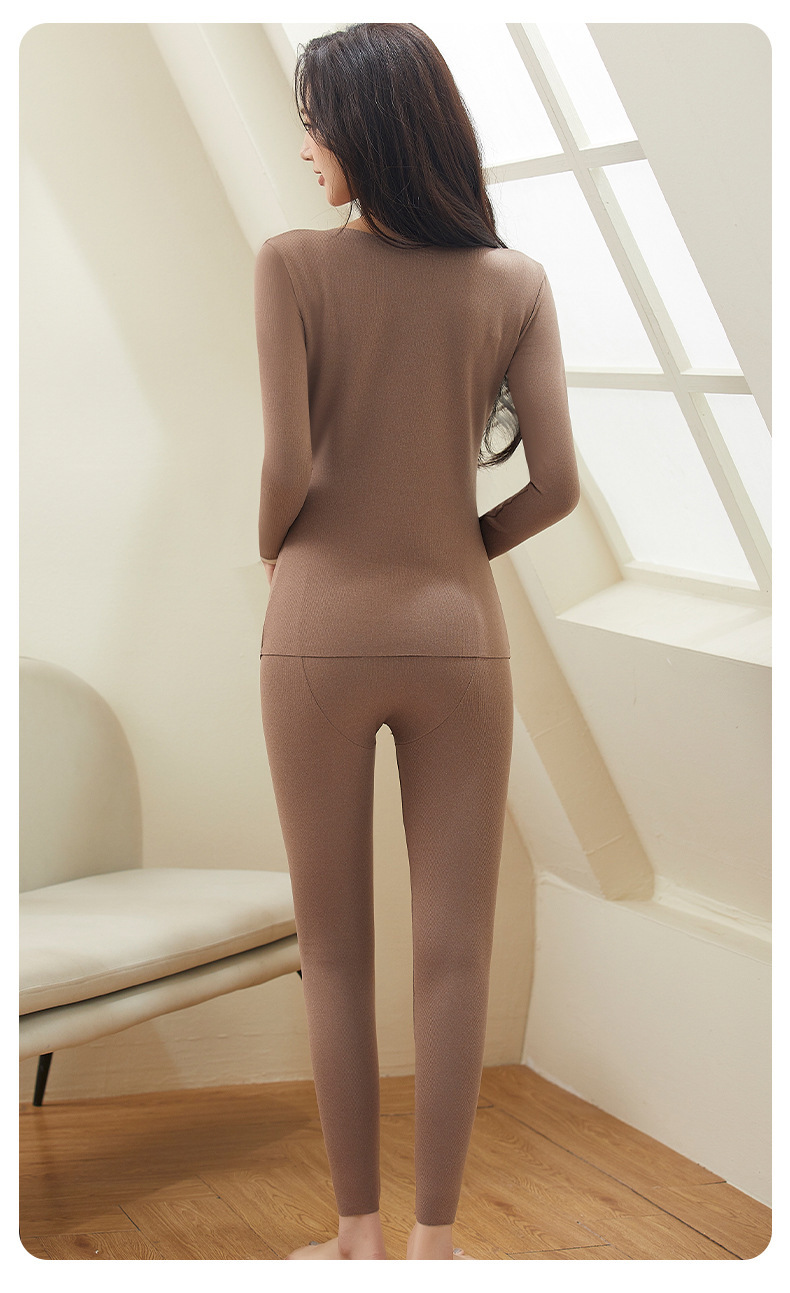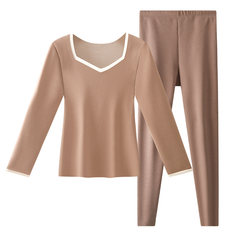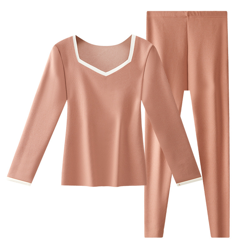 撞色德绒保暖内衣套装女士秋冬修身无痕打底加绒保暖衣秋衣套装女