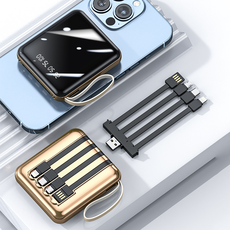 新款迷你自带四线充电宝20000毫安大容量移动电源礼品印制logo