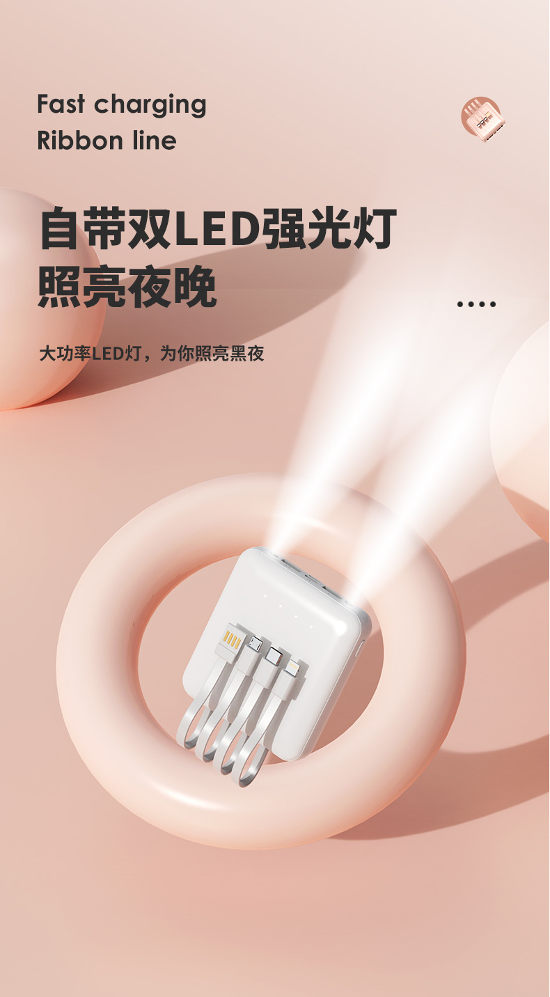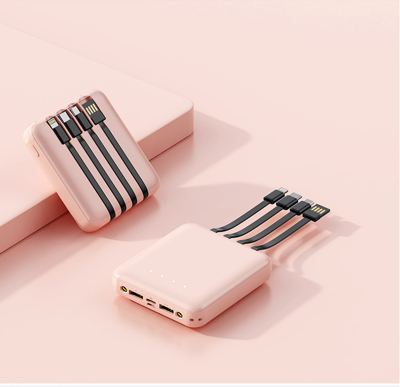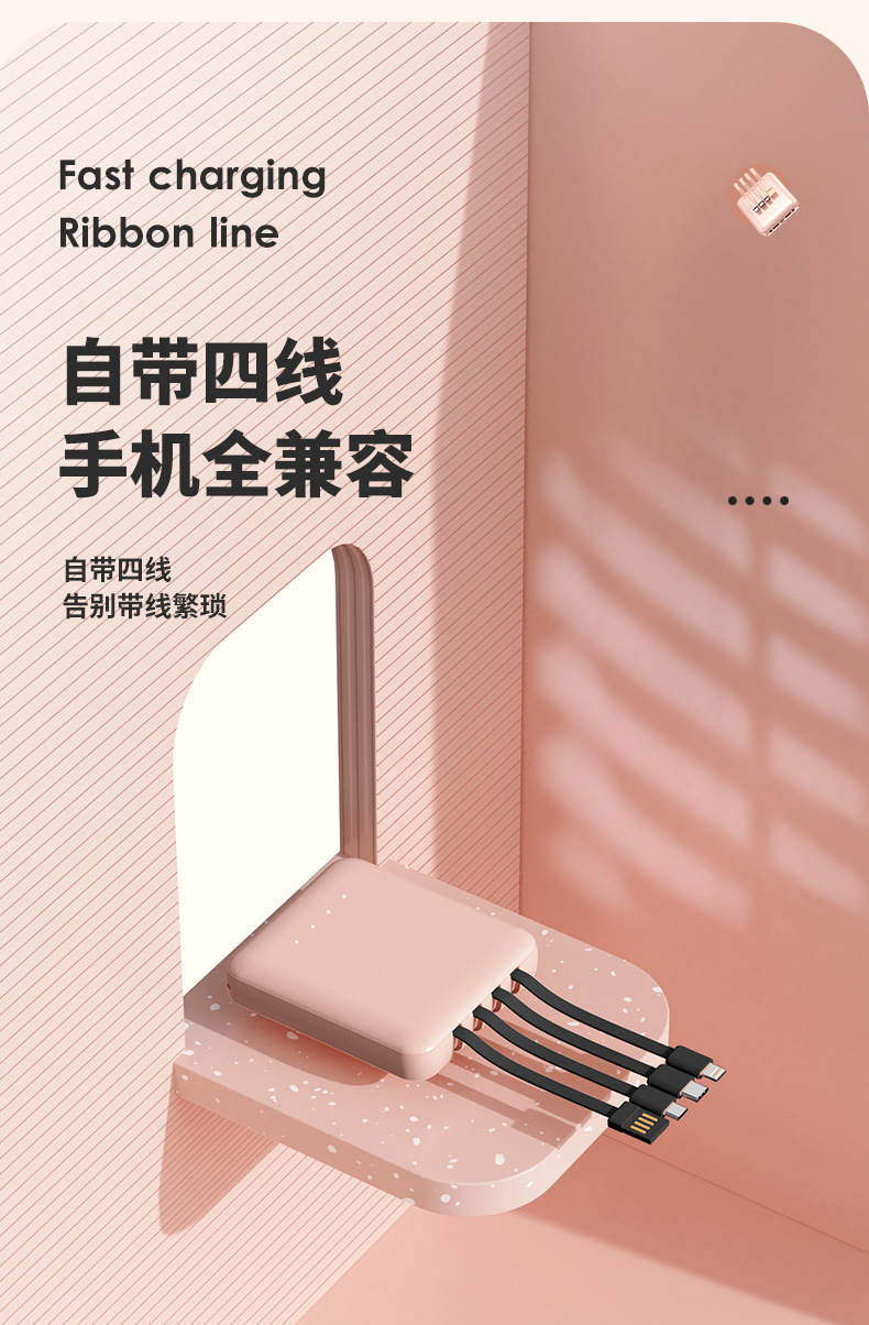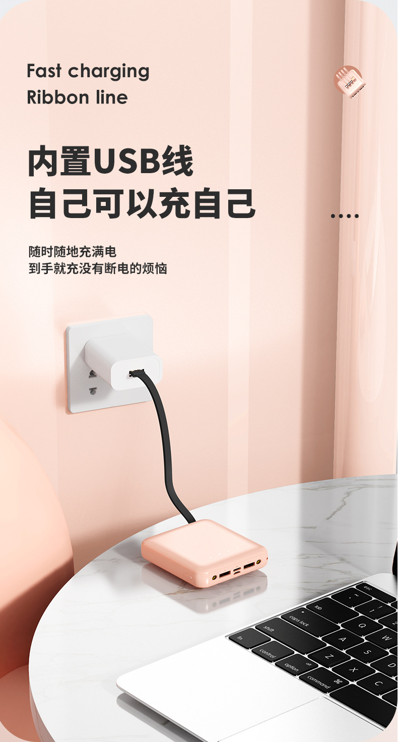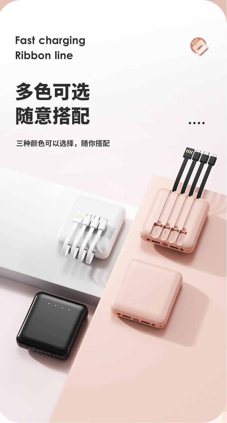 充电宝批发便携小巧20000毫安充电宝自带线迷你大容量印制logo移