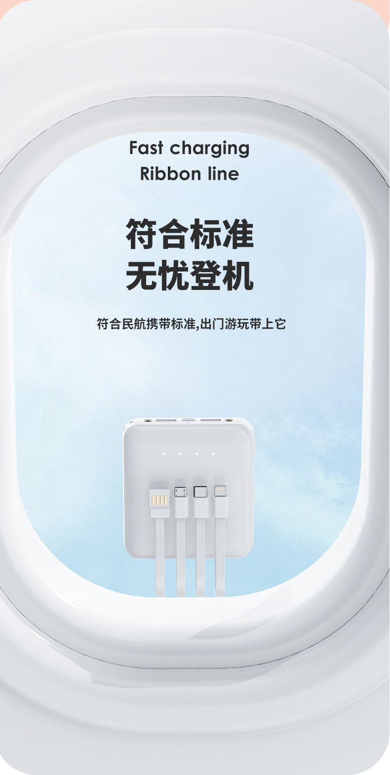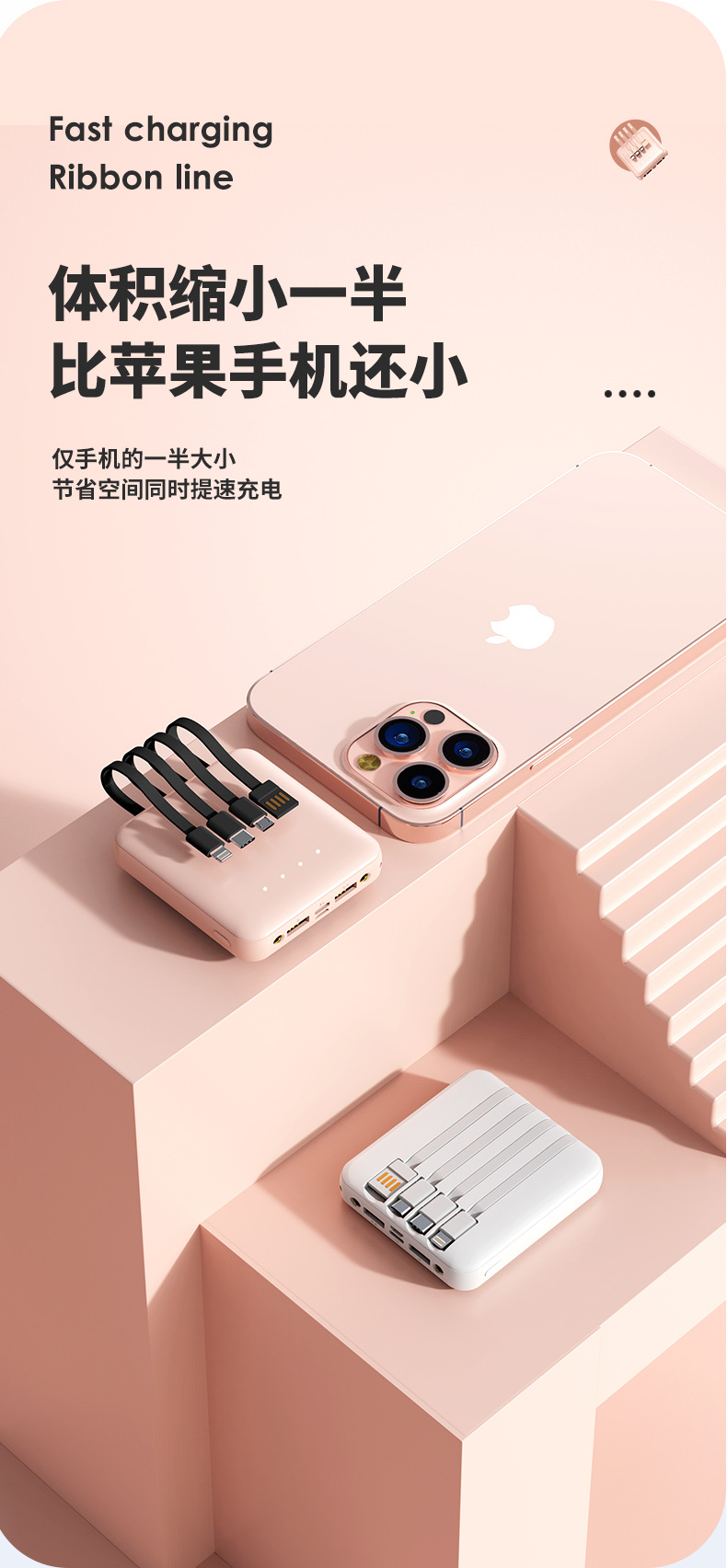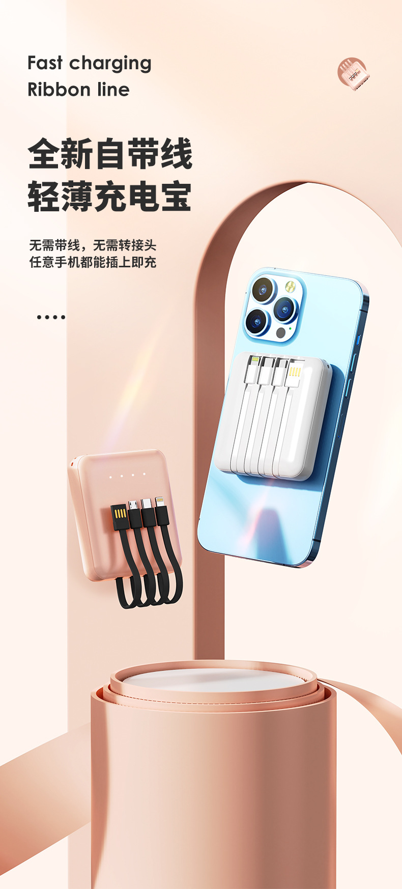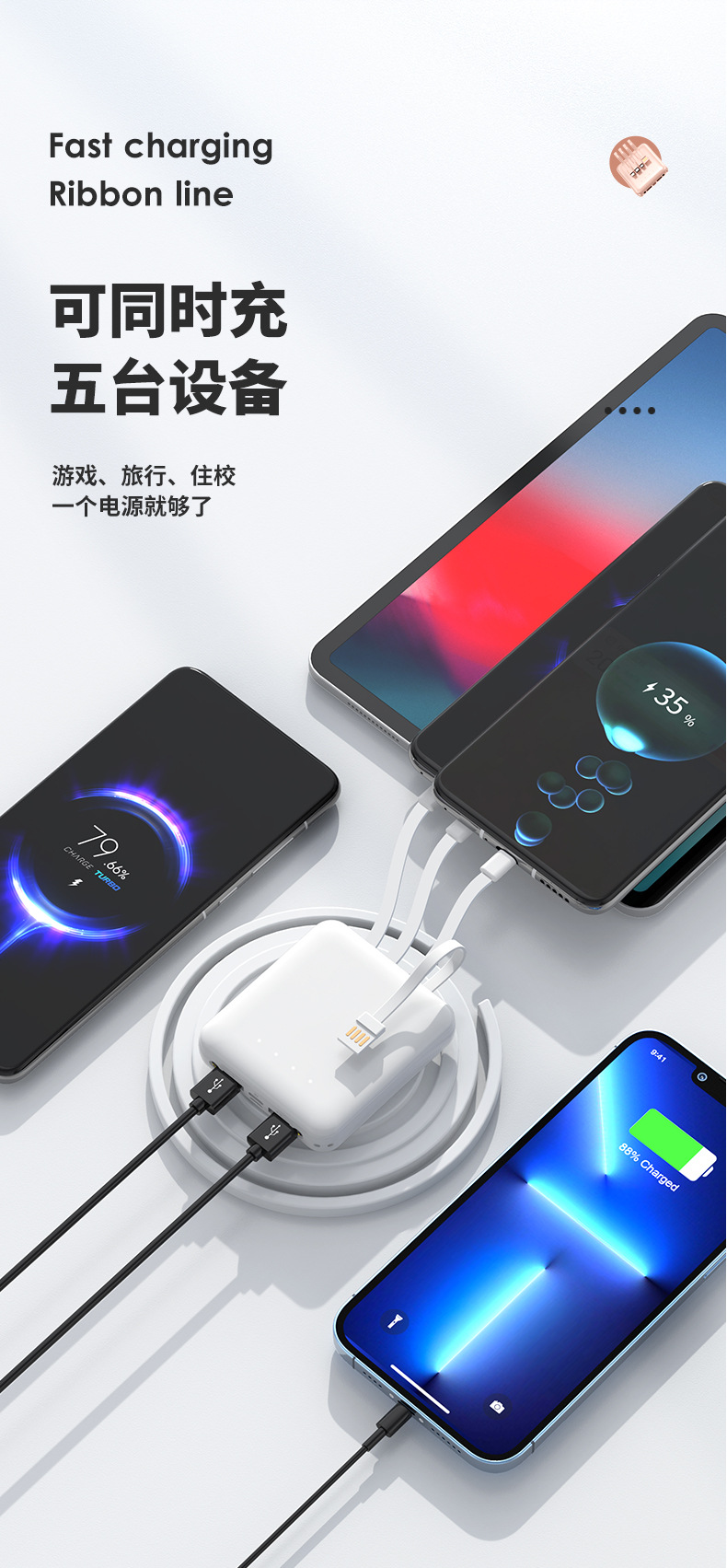 充电宝批发便携小巧20000毫安充电宝自带线迷你大容量印制logo移