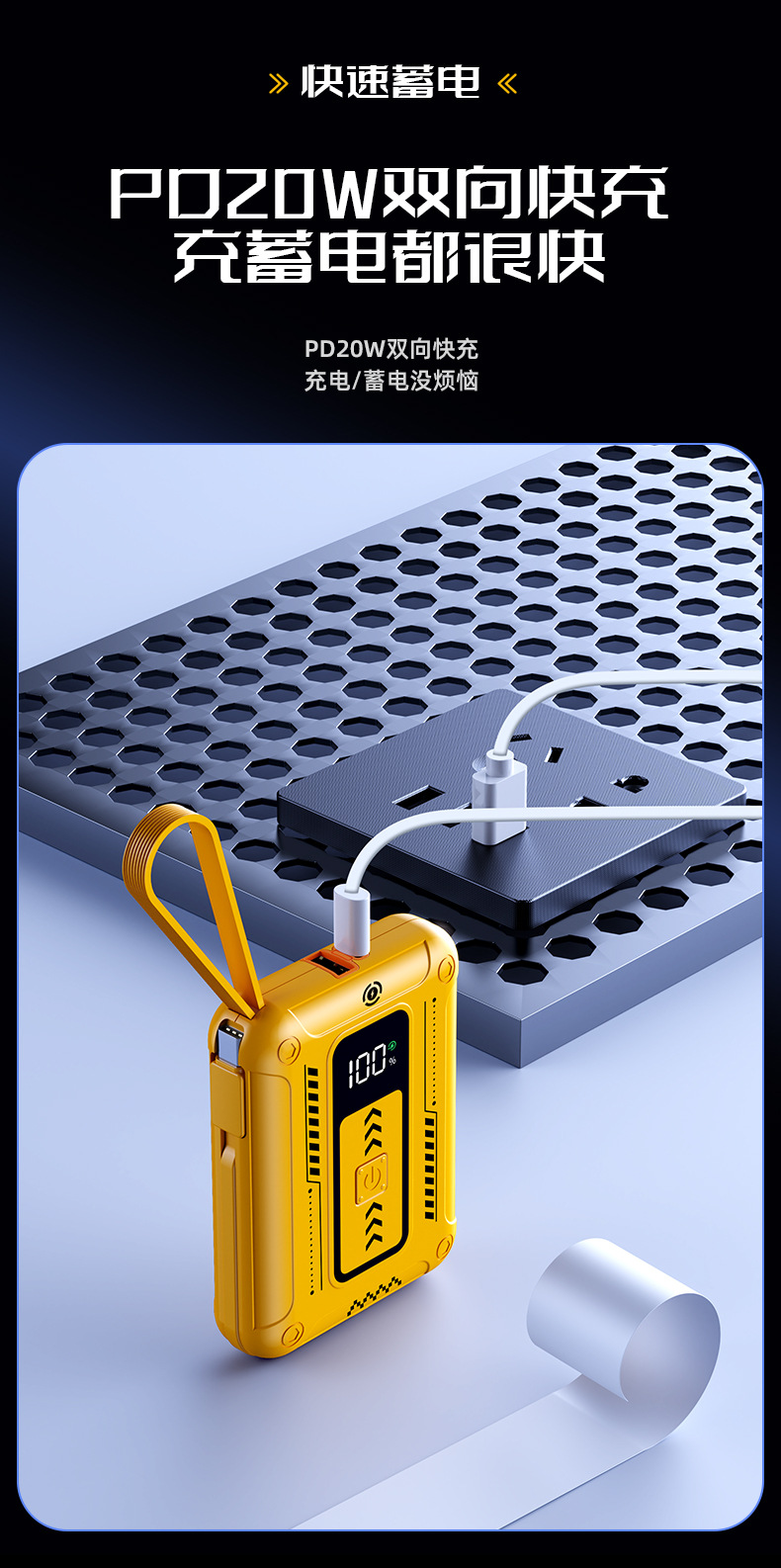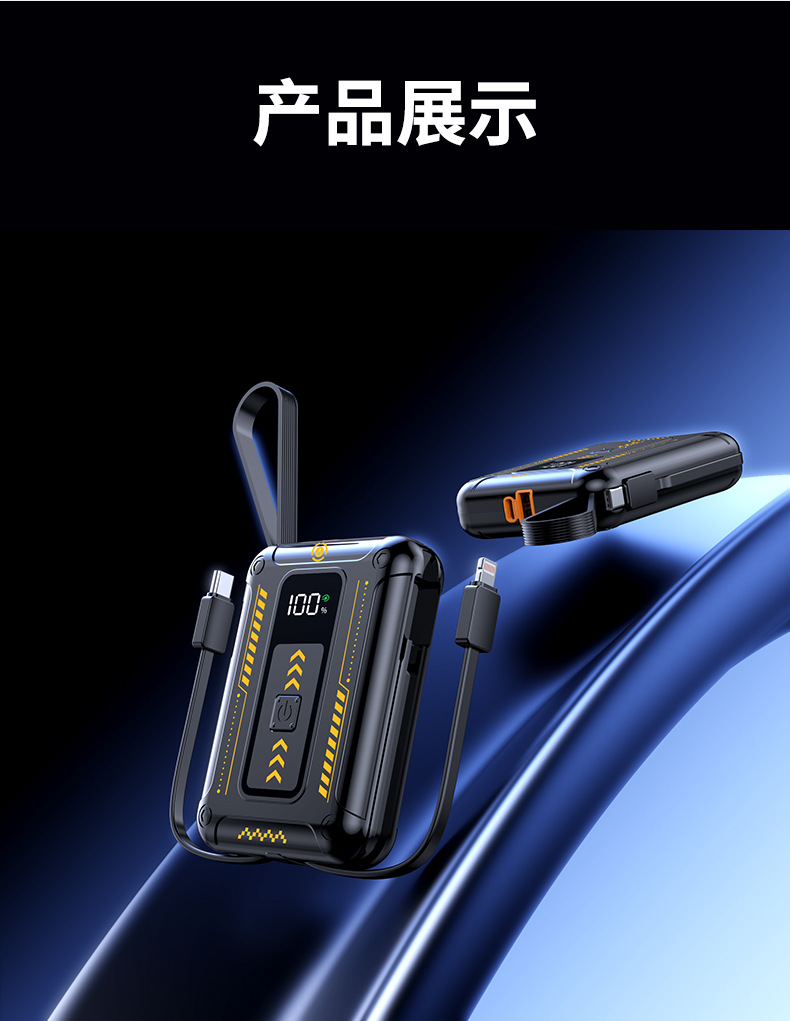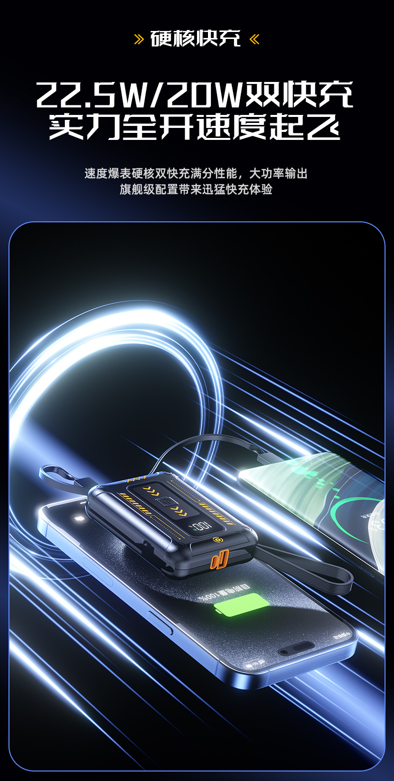 迷你PD22.5W超级快充充电宝大容量自带可拆卸双线移动电源跨境