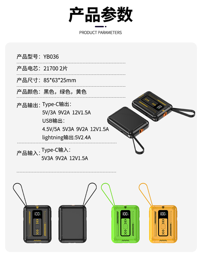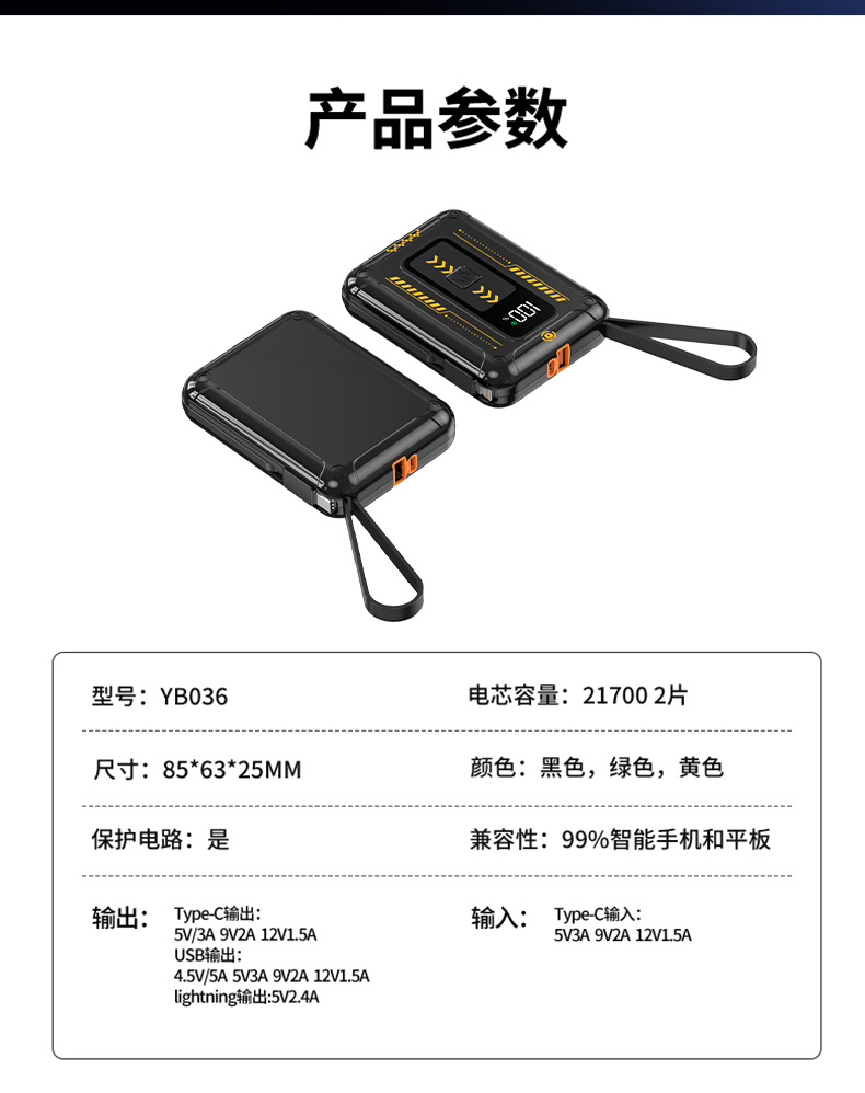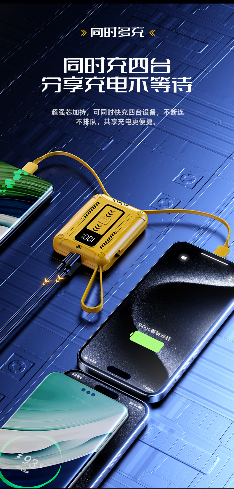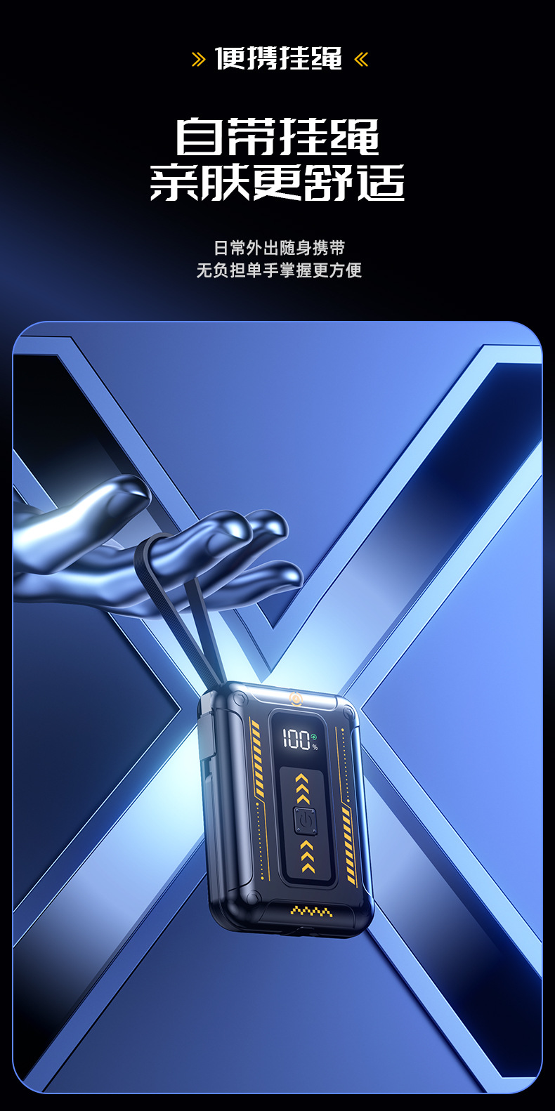 迷你PD22.5W超级快充充电宝大容量自带可拆卸双线移动电源跨境