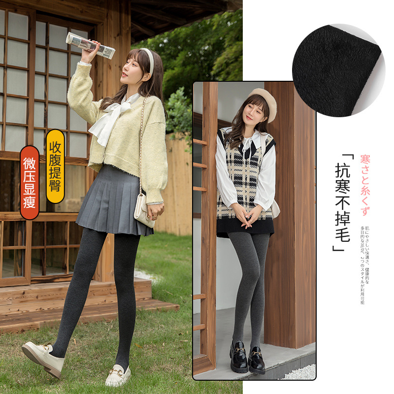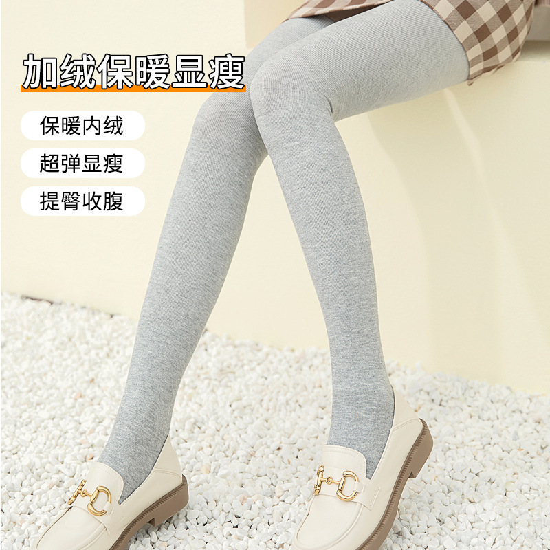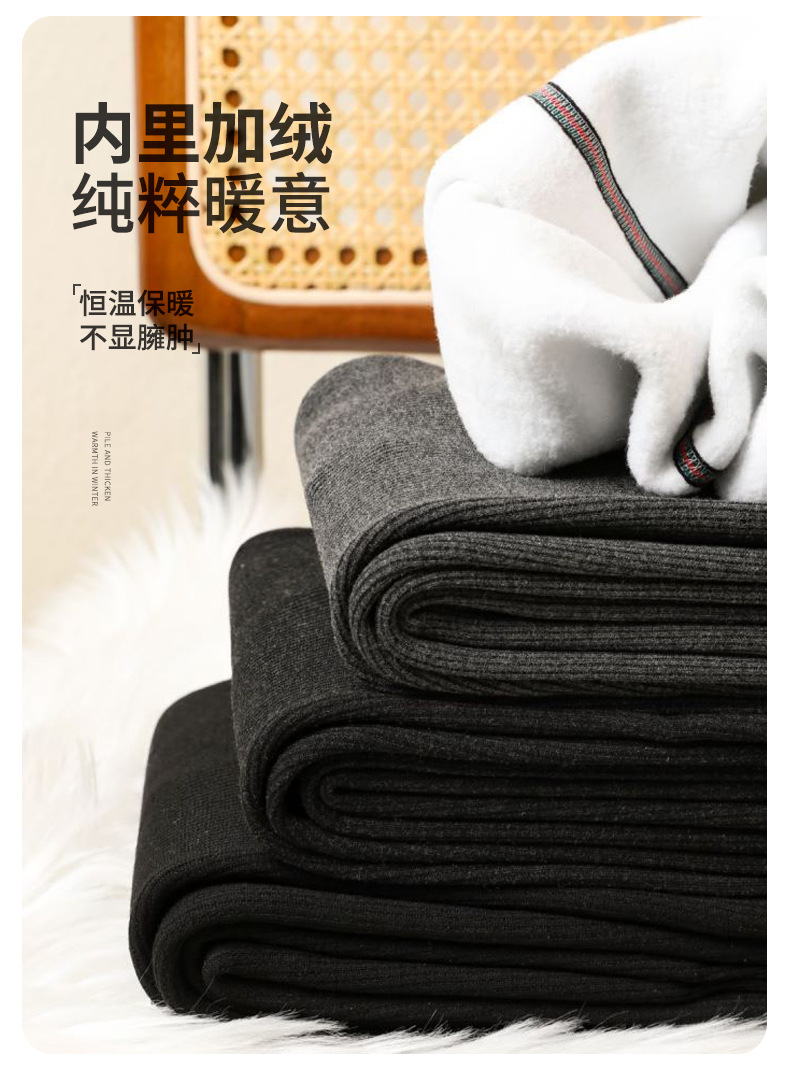 棉竖条纹打底裤女外穿秋冬加绒踩脚保暖连裤袜微压显瘦加厚打底袜