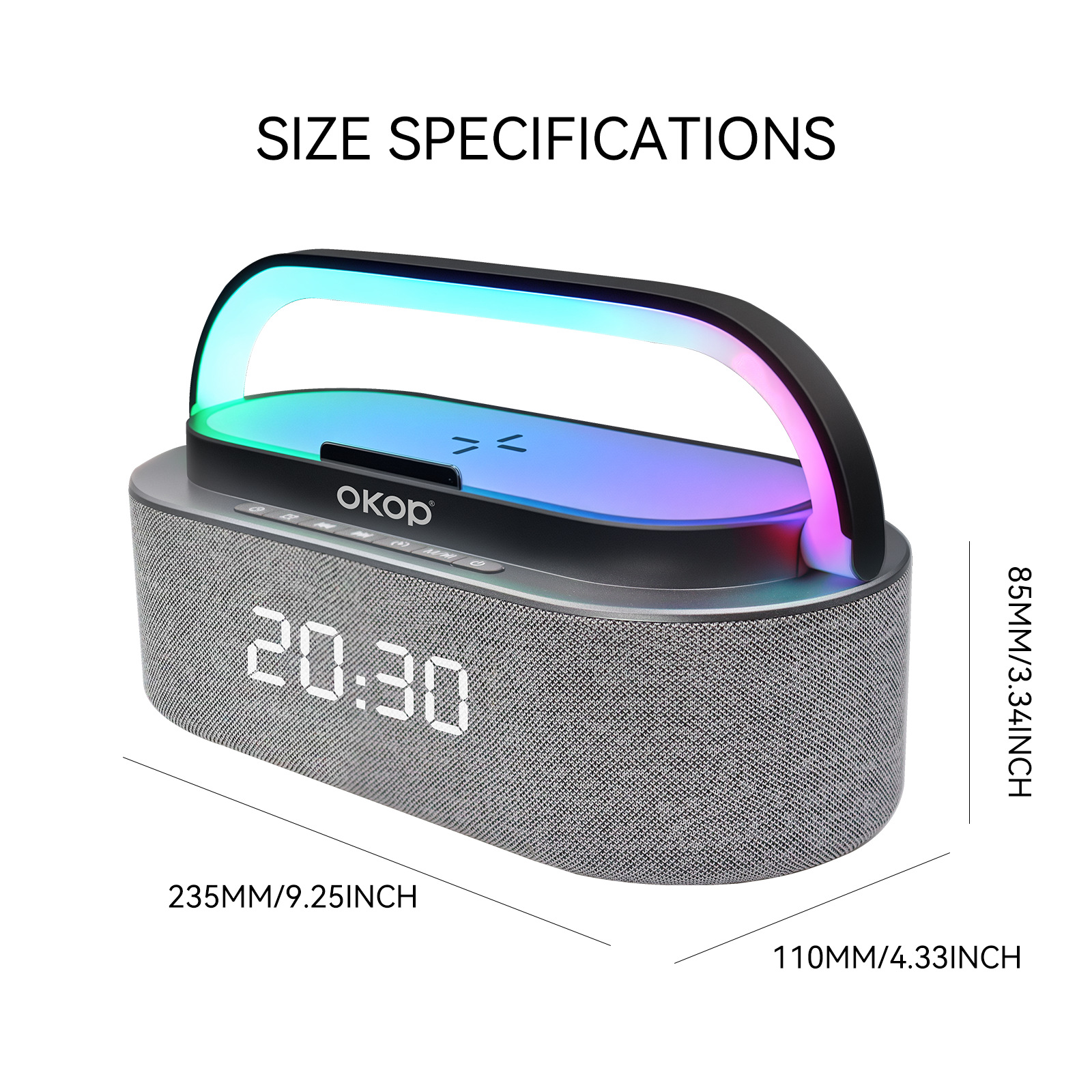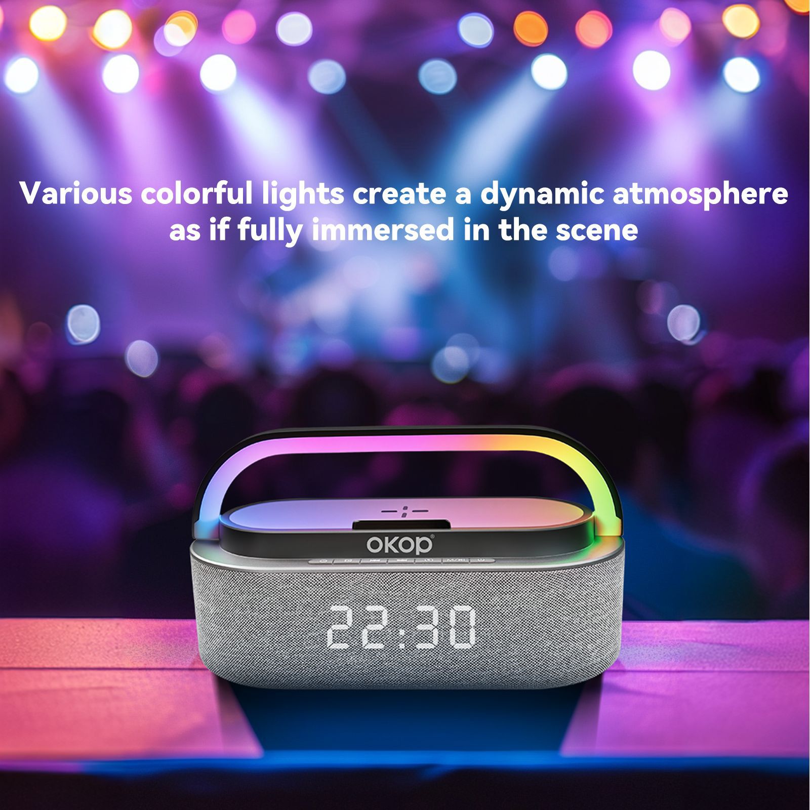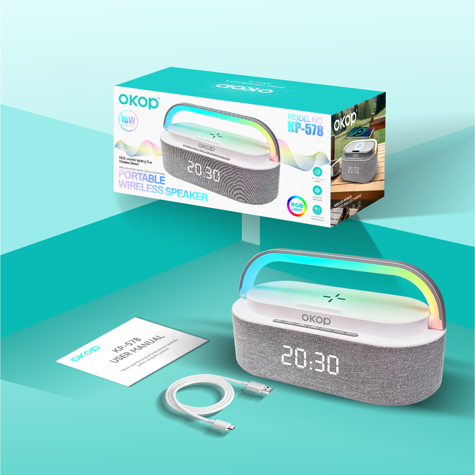 KP-578蓝牙音箱手提桌面RGB彩灯手机无线充白噪音时钟礼品音响