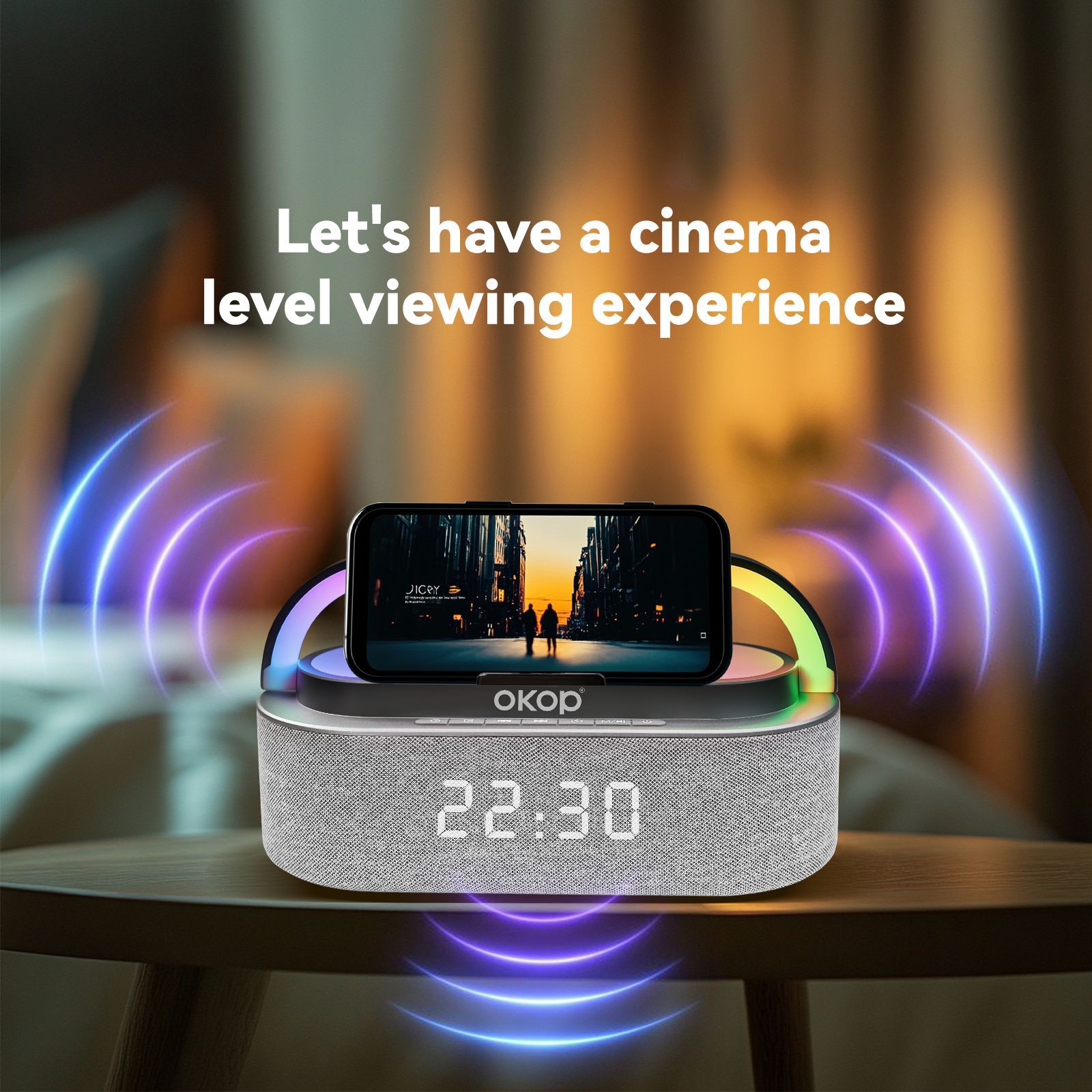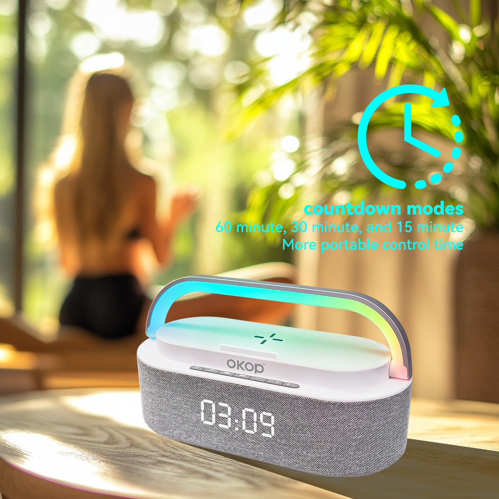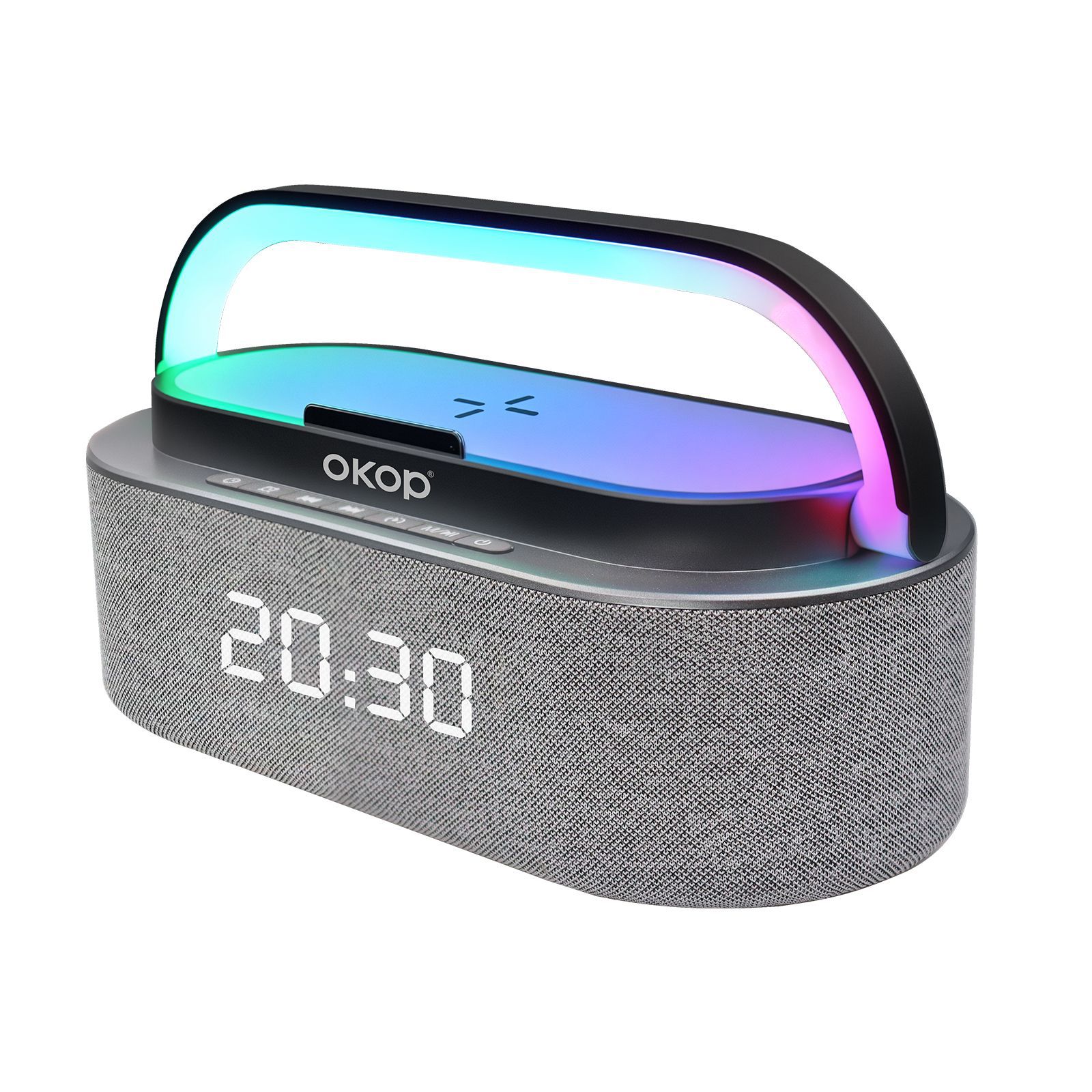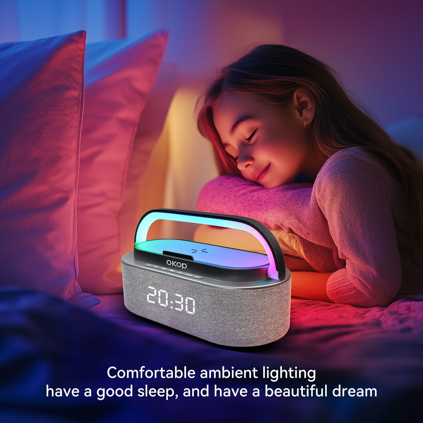 KP-578蓝牙音箱手提桌面RGB彩灯手机无线充白噪音时钟礼品音响
