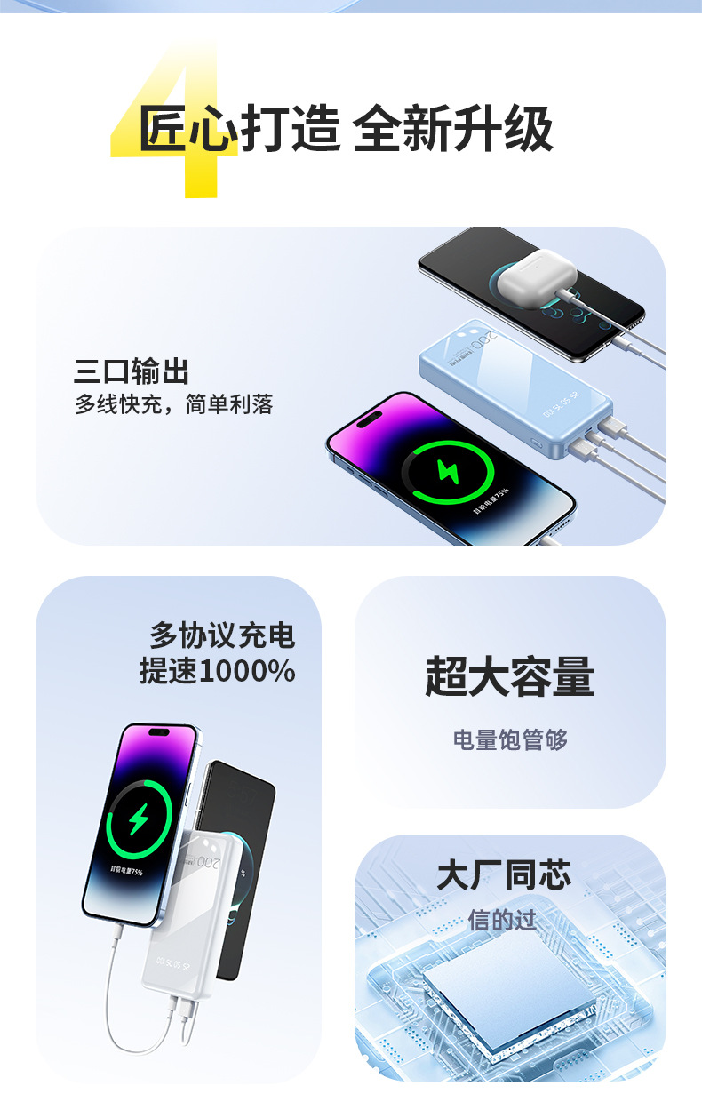 外贸30000毫安大容量手机移动电源便携三输出数显充电宝跨境热卖