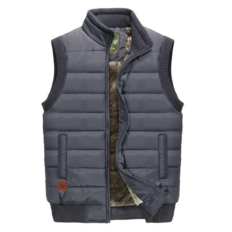 外贸男加绒加厚防风防水马甲跨境大码中老年立领坎肩背心保暖护心