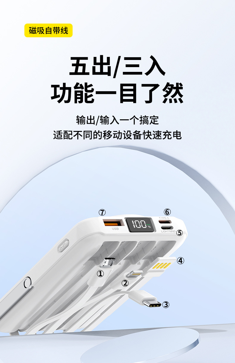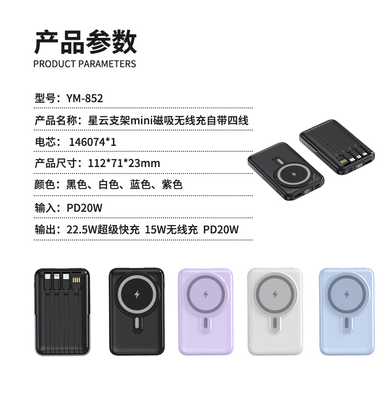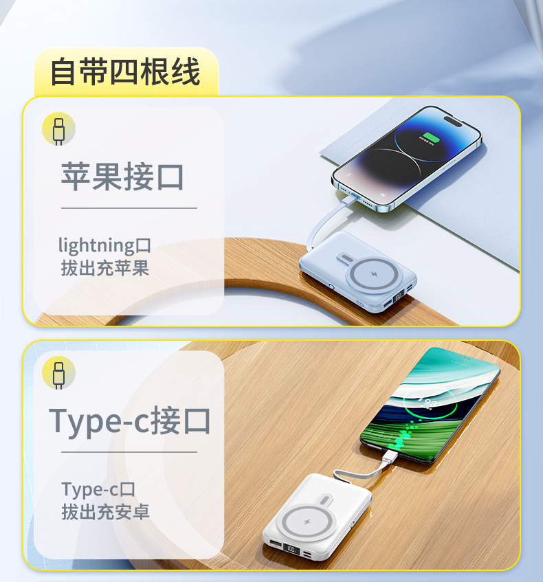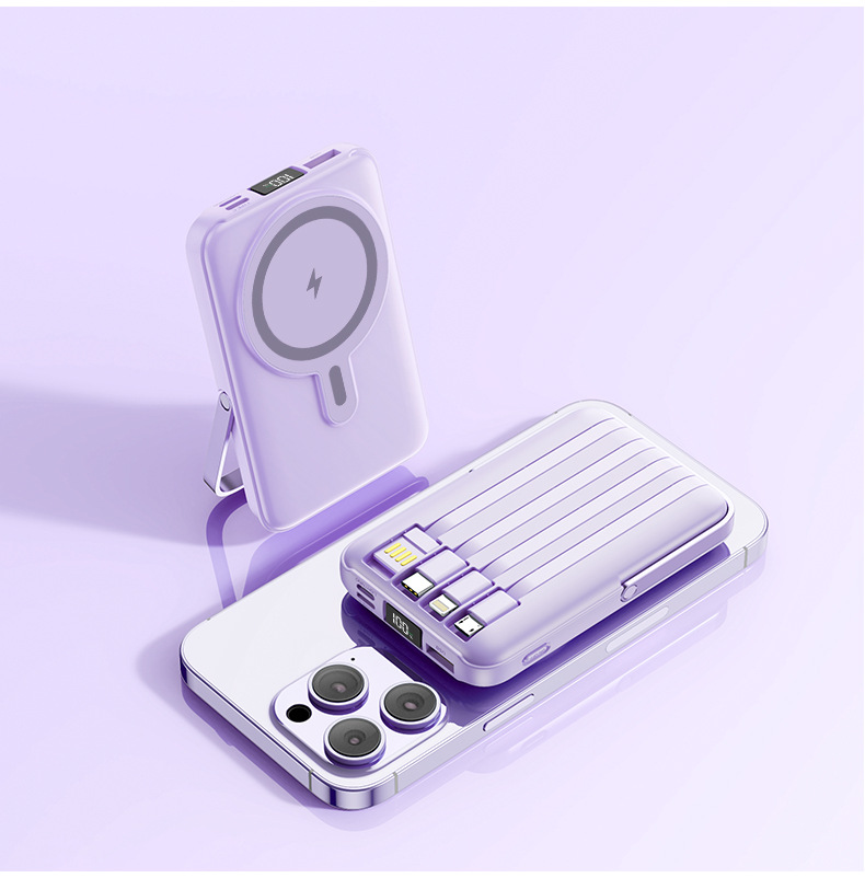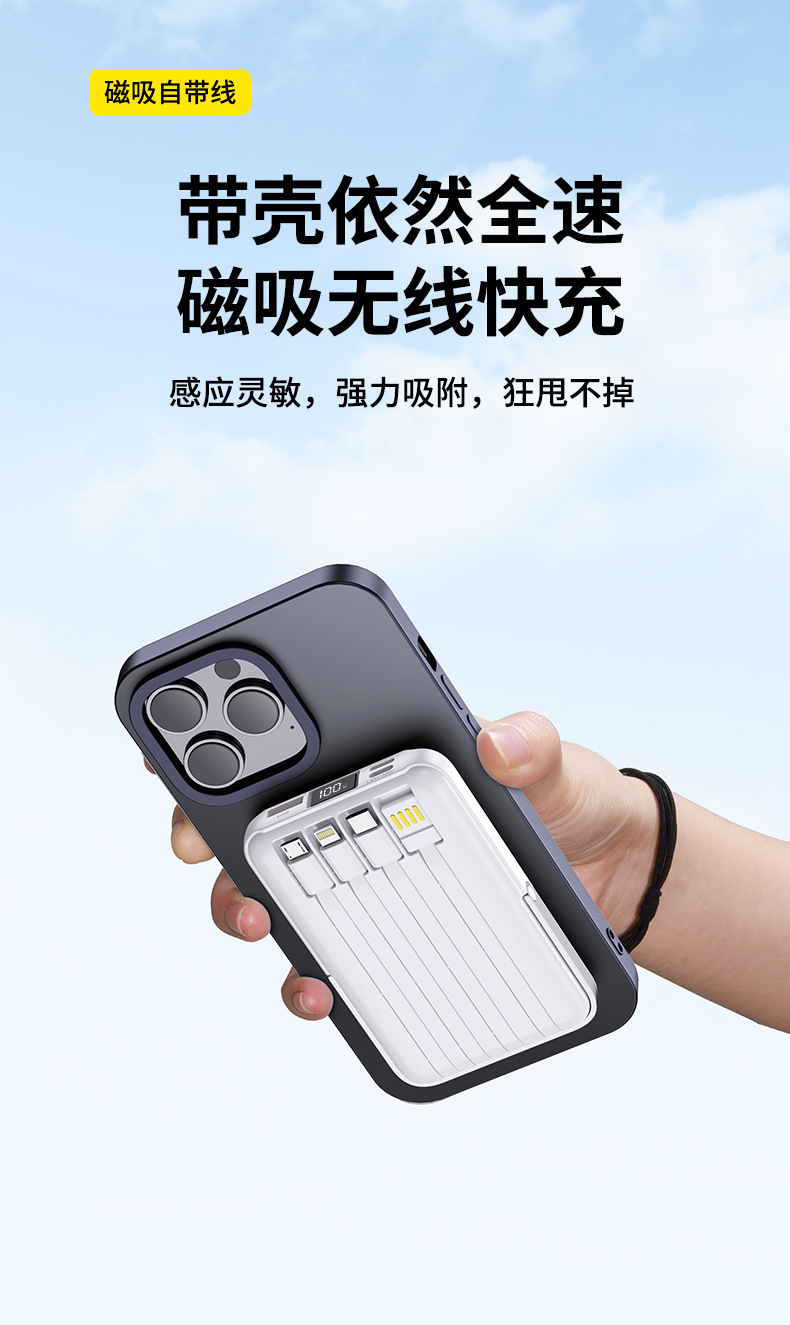 支架磁吸无线充10000毫安自带线移动电源快充手机充电宝跨境
