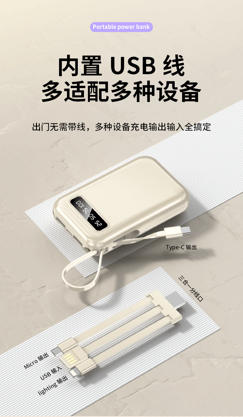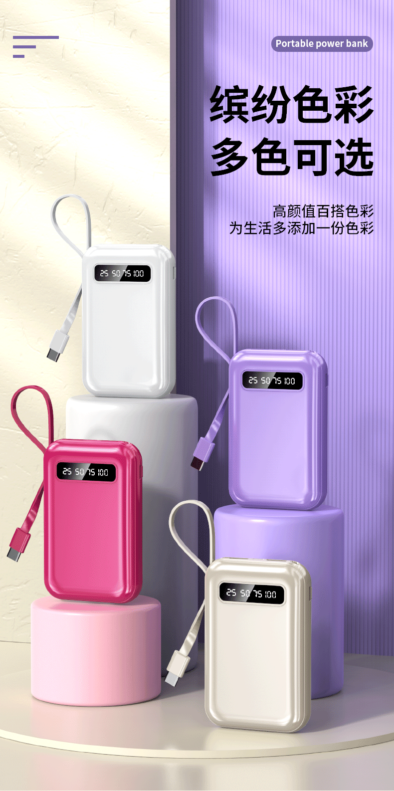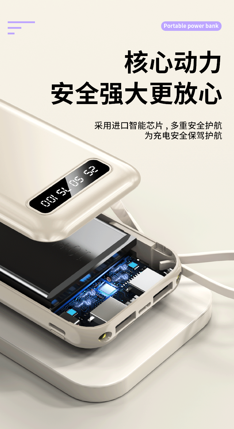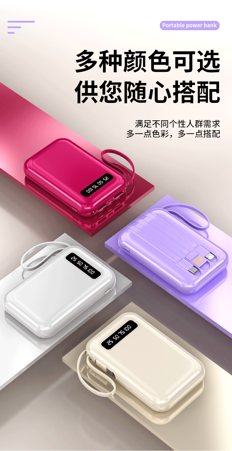 小巧迷你大容量20000毫安充电宝自带线便携手机移动电源礼品logo