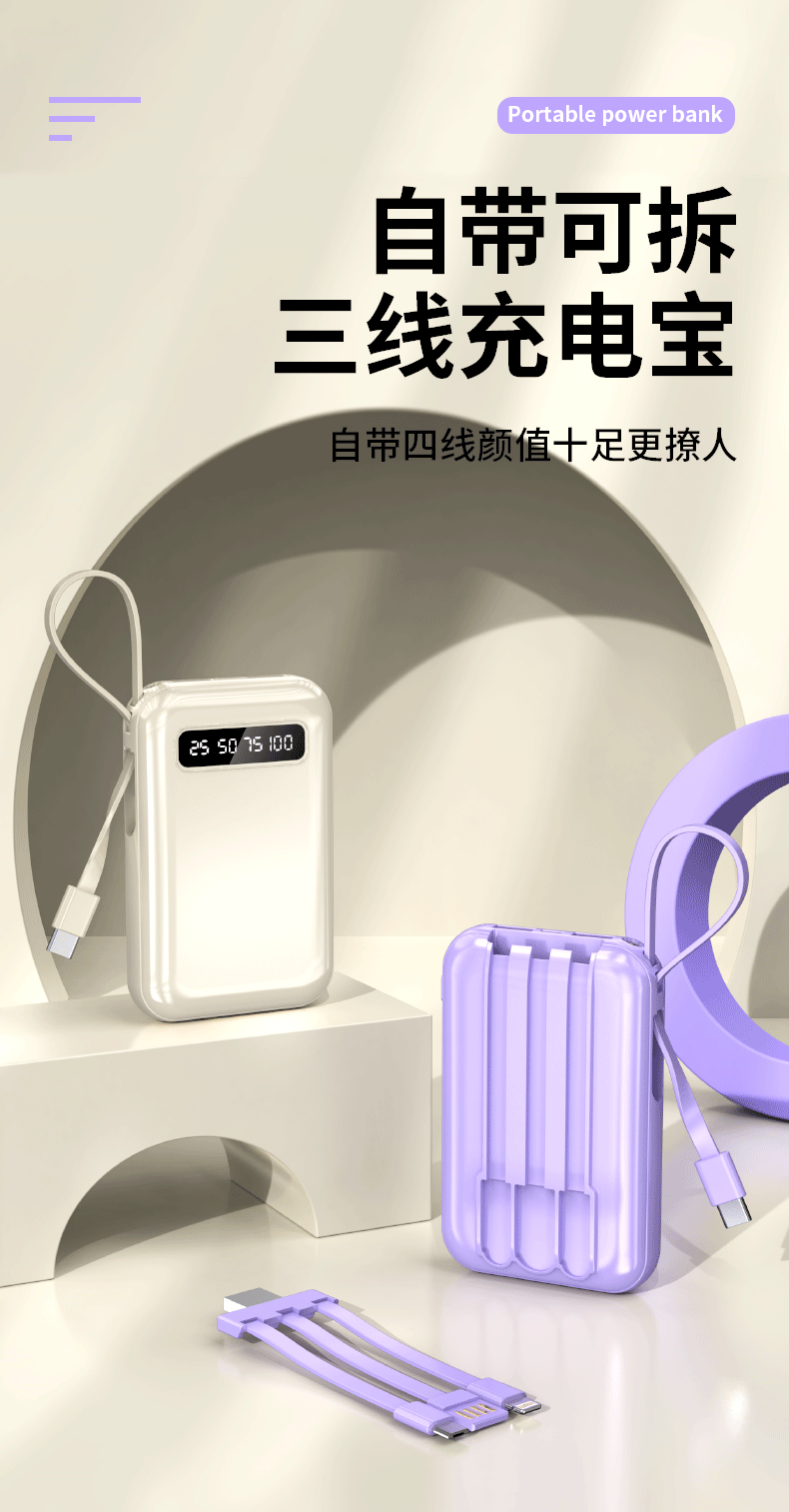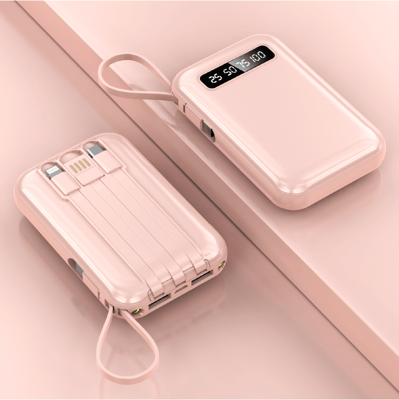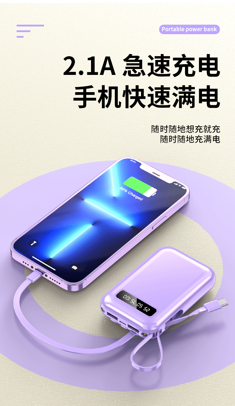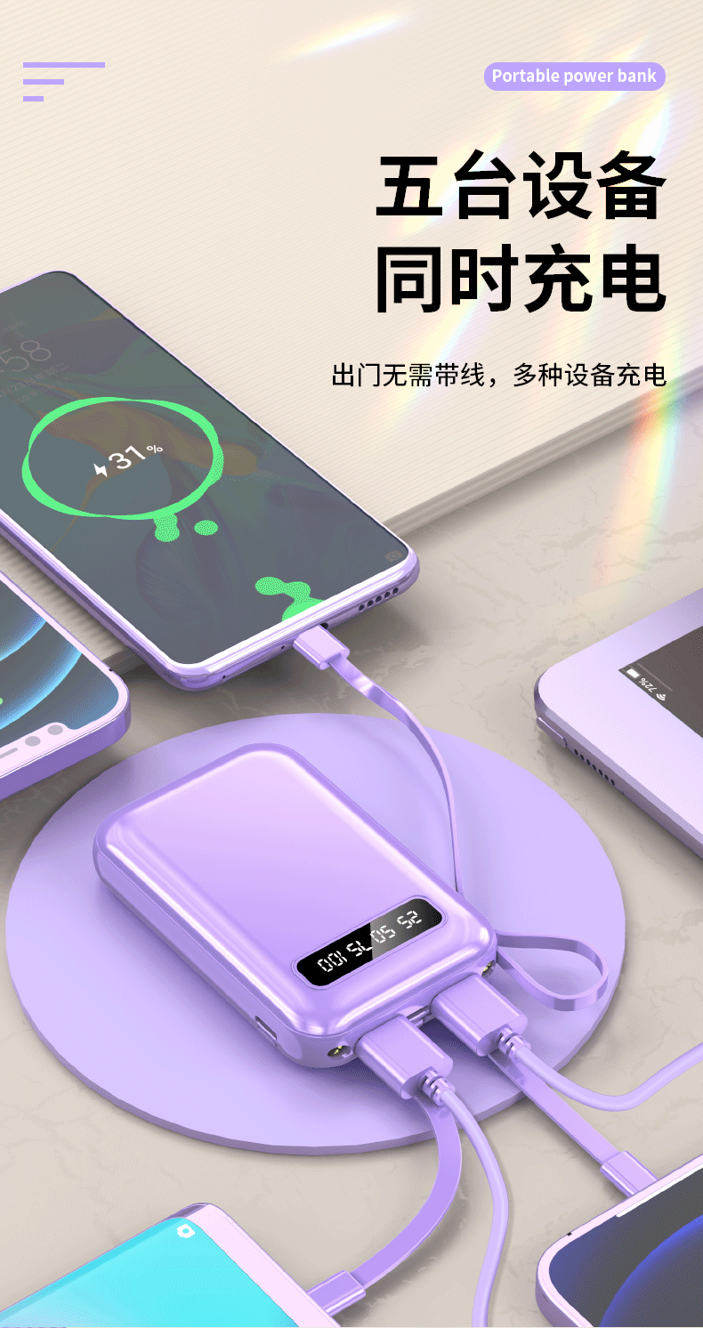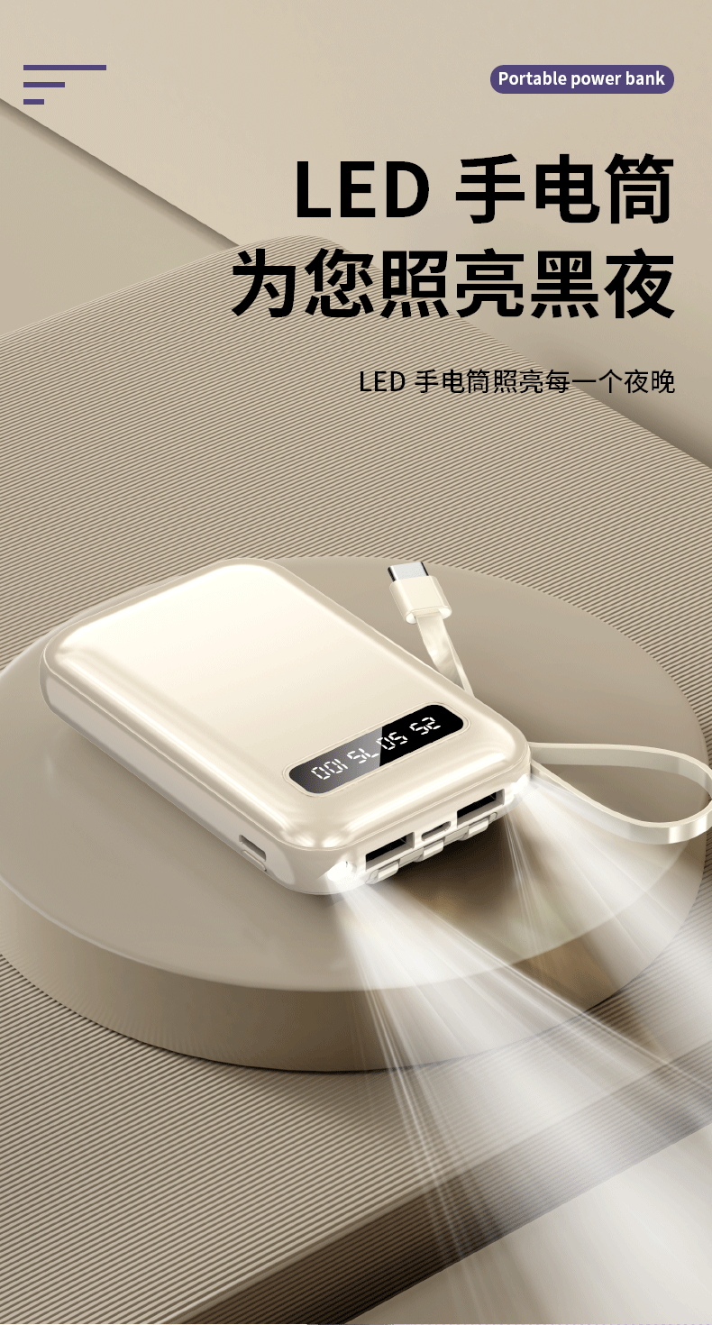小巧迷你大容量20000毫安充电宝自带线便携手机移动电源礼品logo