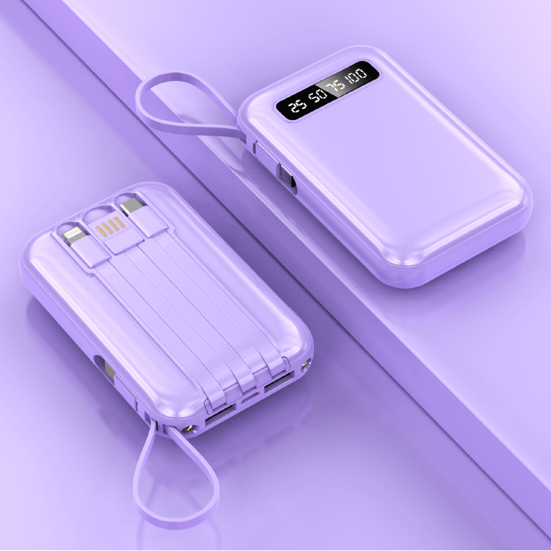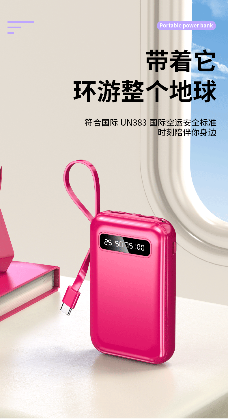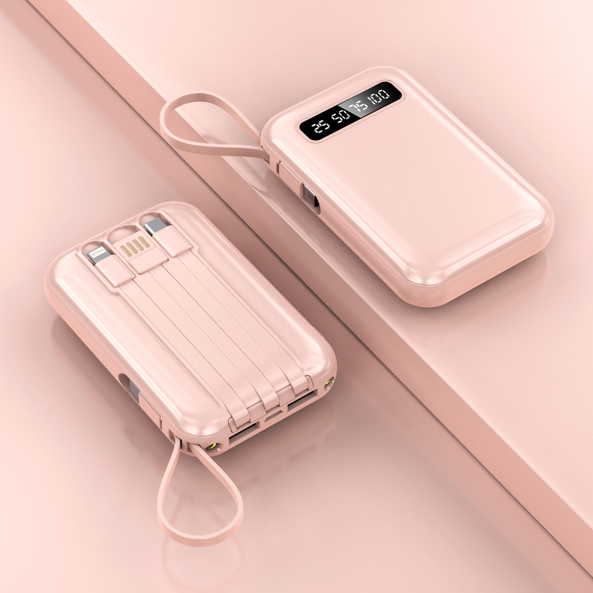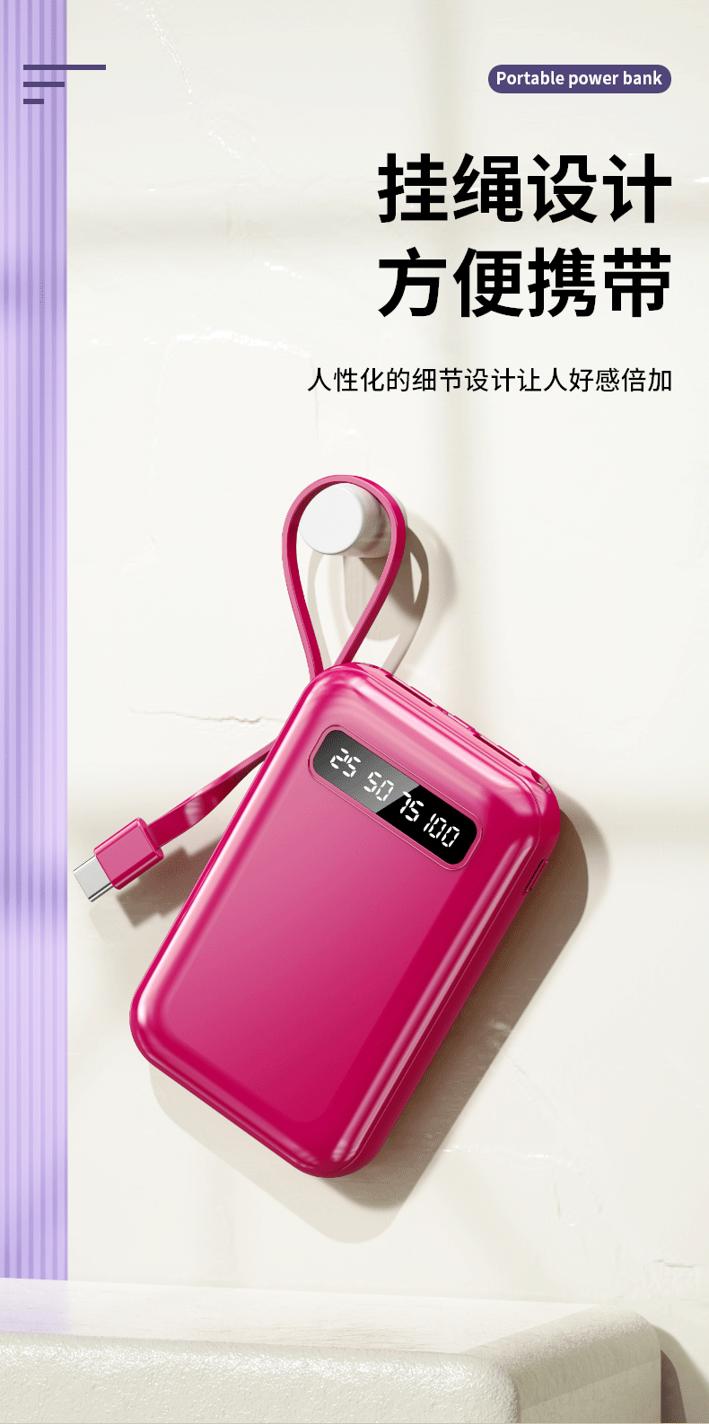 小巧迷你大容量20000毫安充电宝自带线便携手机移动电源礼品logo
