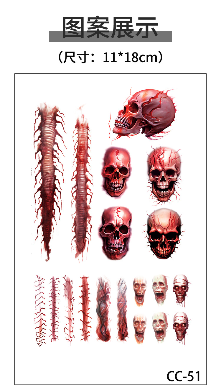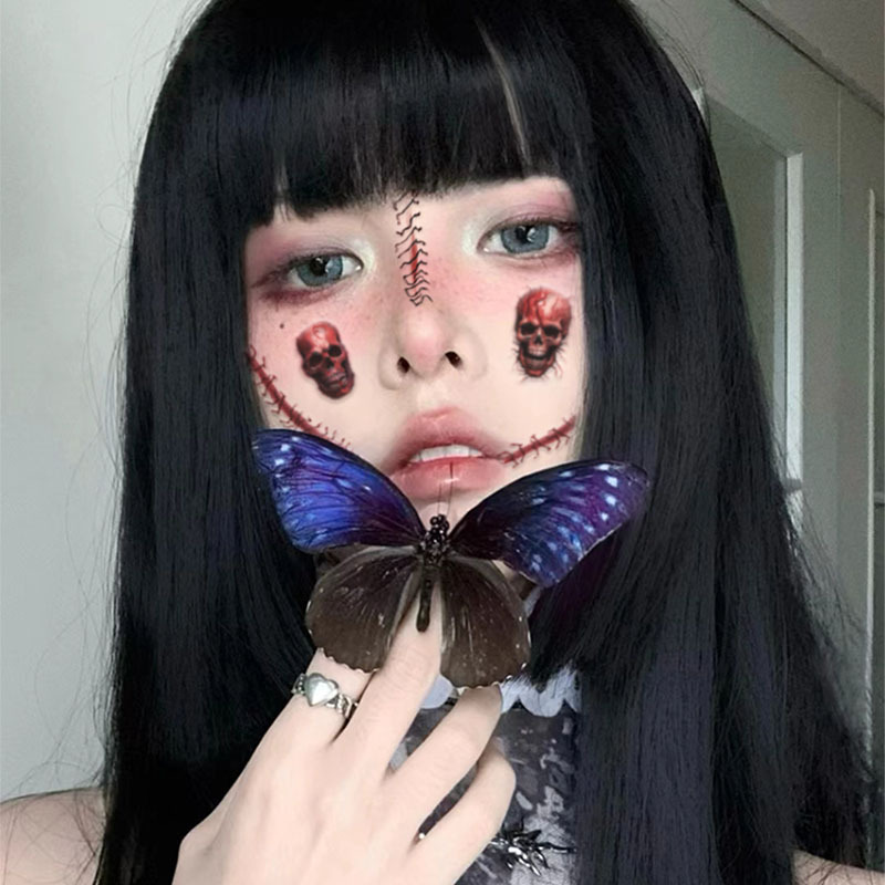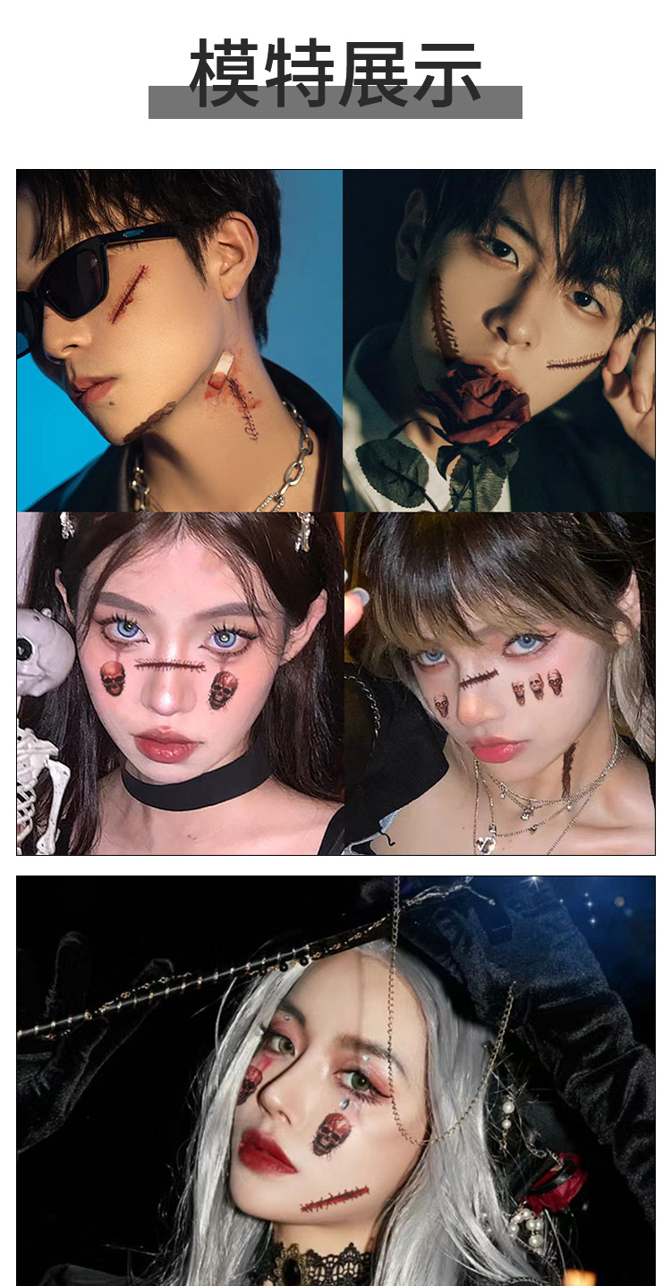 cos道具万圣节辣妹妆容贴纸男女仿妆脸部恐怖装饰骷髅头防水持久