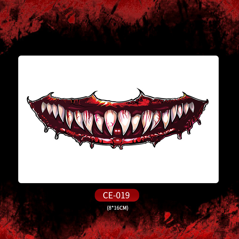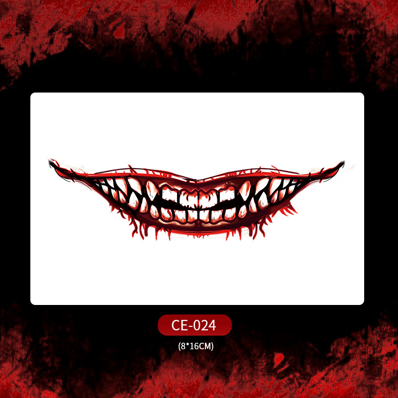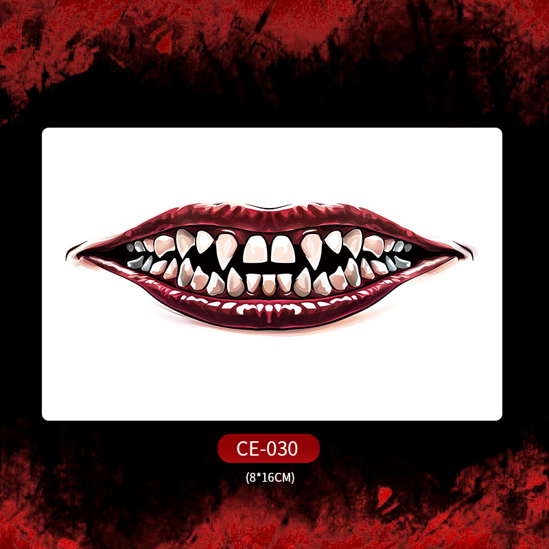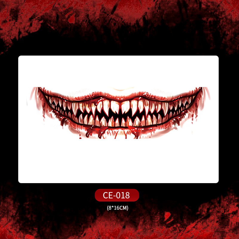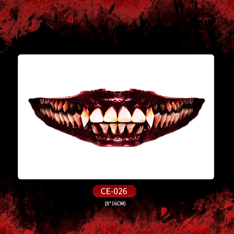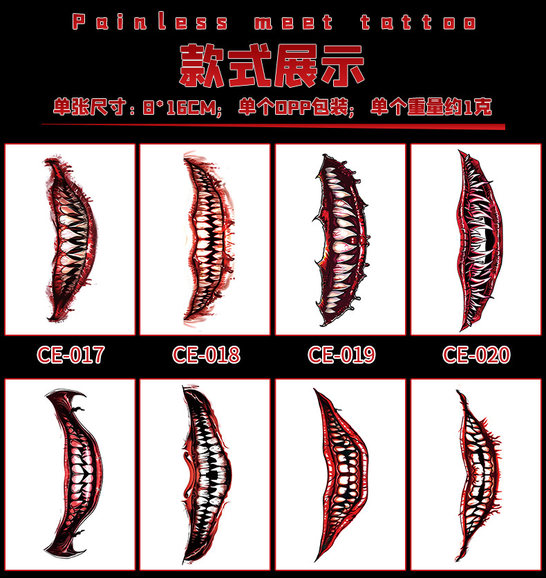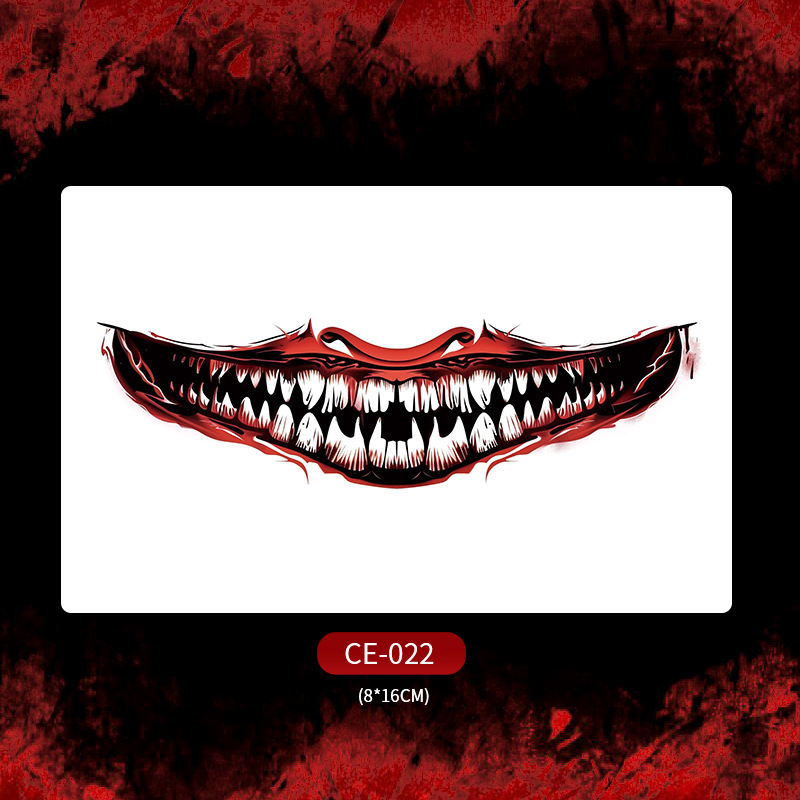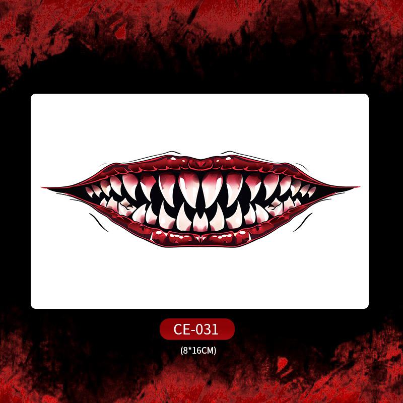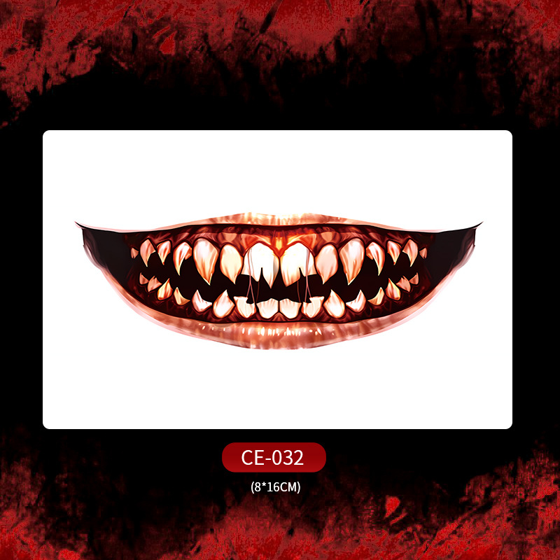 万圣节彩色纹身贴搞怪脸部贴纸遮疤手臂男女妆容恐怖嘴巴伤疤派对