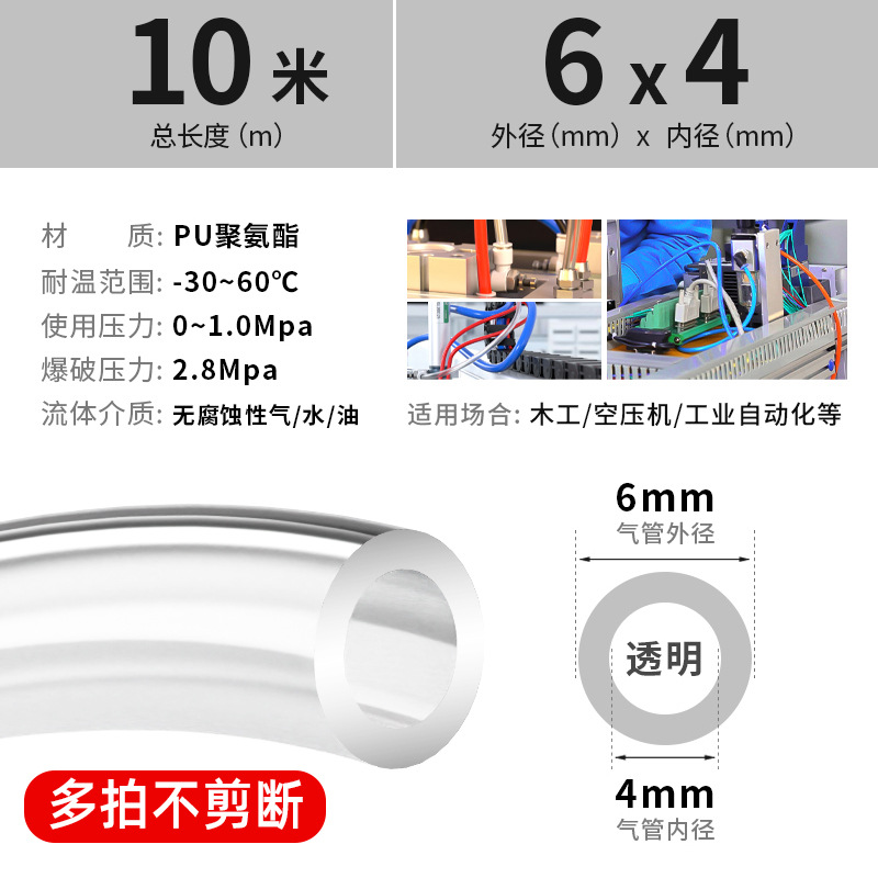 PU气管软管空压机防爆管子4/6/8/10/12/16mm毫米气动气泵管耐高压