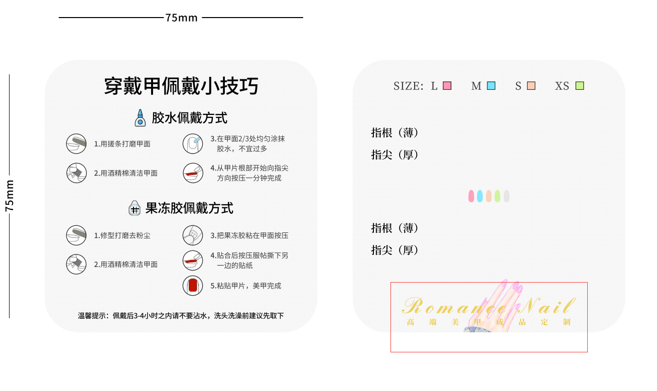 手工穿戴甲收纳盒 透明盖透明底亚克力甲片穿戴甲包装盒子批发