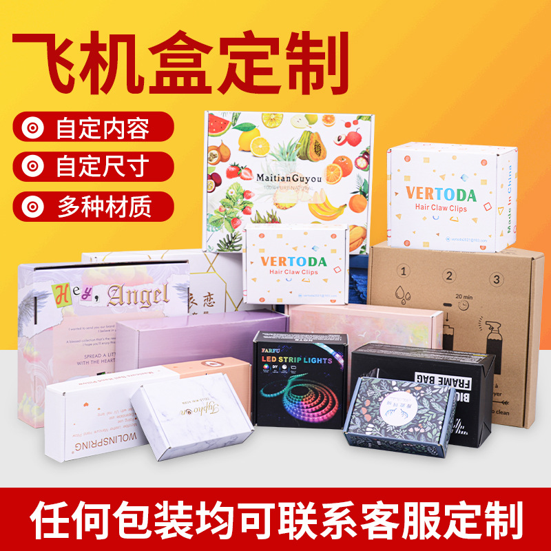 飞机盒快递专用纸盒子特硬瓦楞彩色JK制服内衣打包盒穿戴甲包装盒