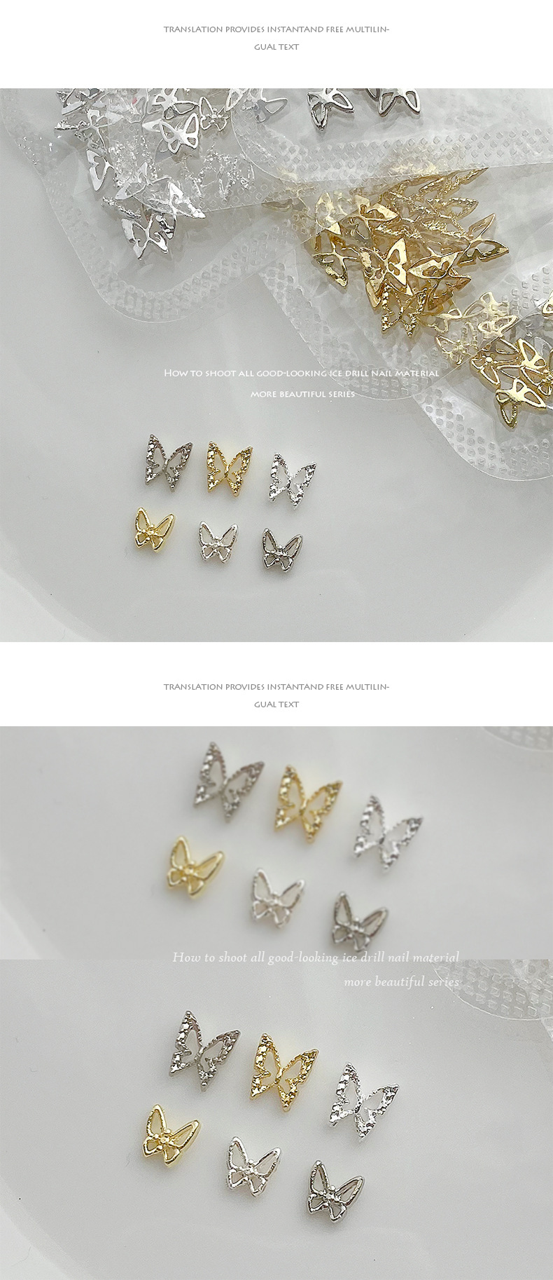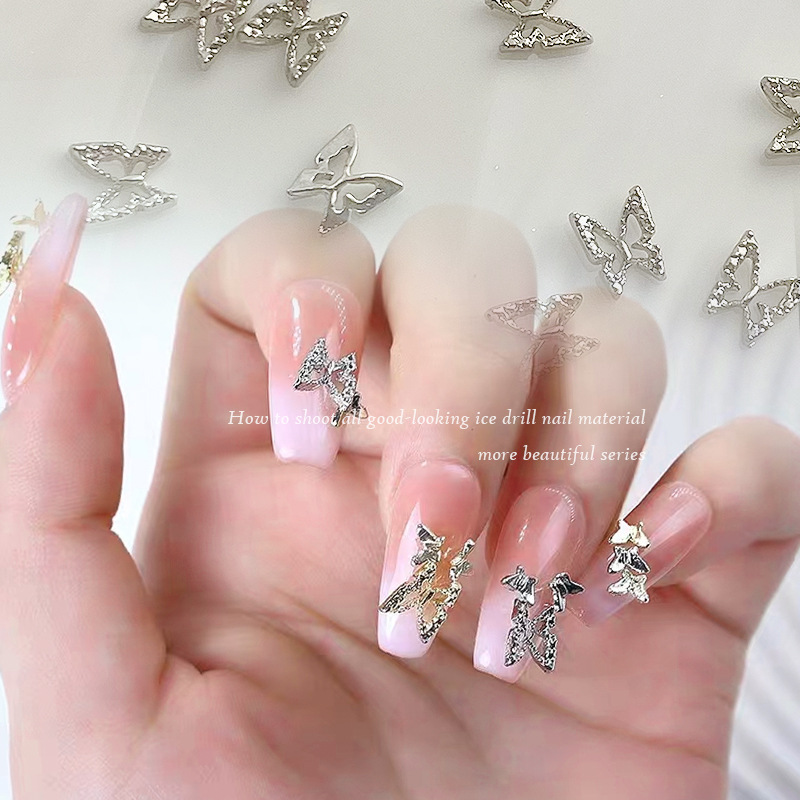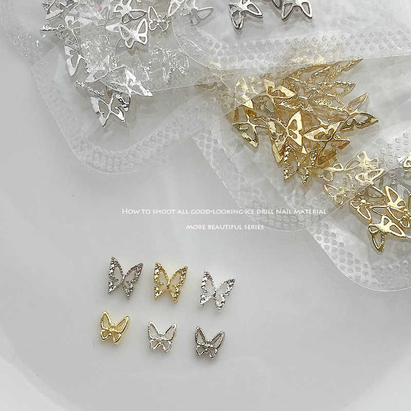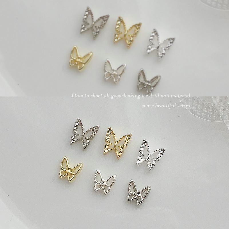 新品美甲磨砂电镀合金属饰品镂空磨砂蝴蝶指甲穿戴甲饰品配件批发