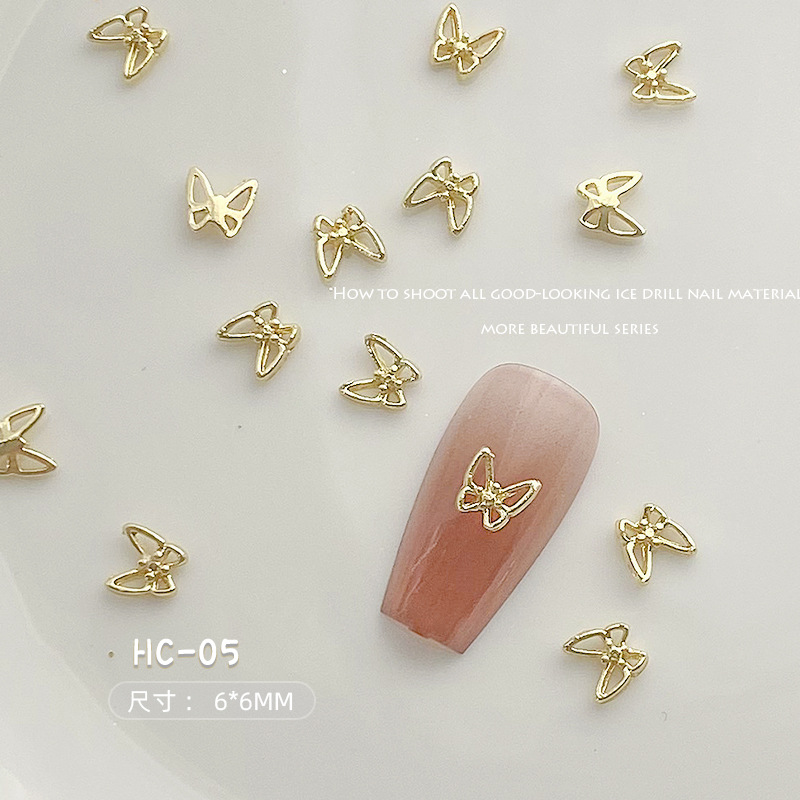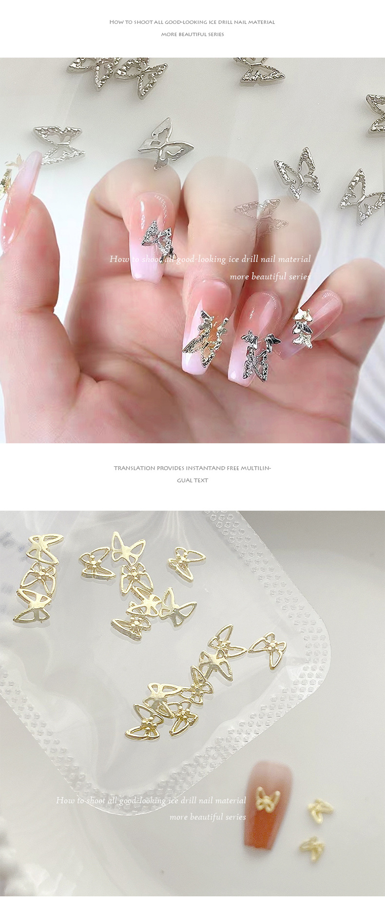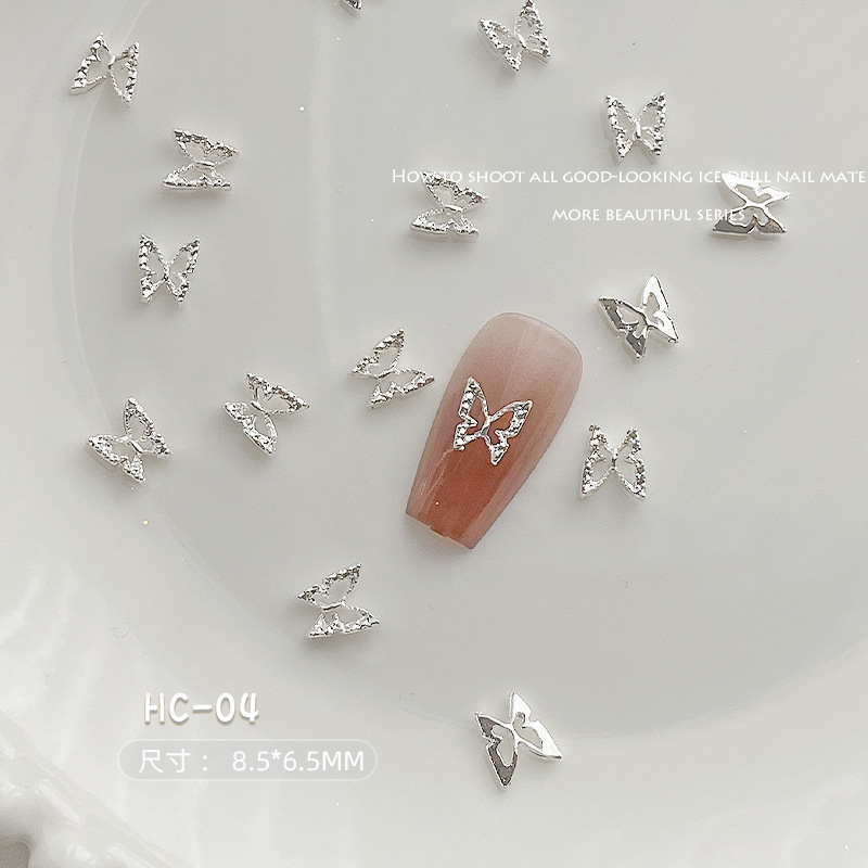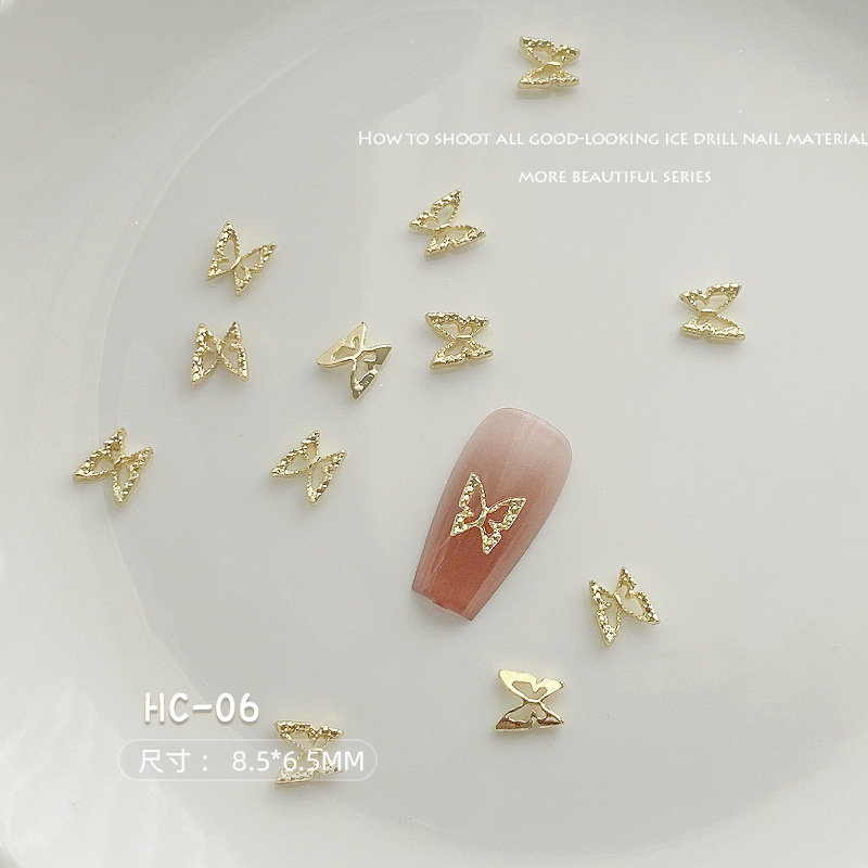 新品美甲磨砂电镀合金属饰品镂空磨砂蝴蝶指甲穿戴甲饰品配件批发