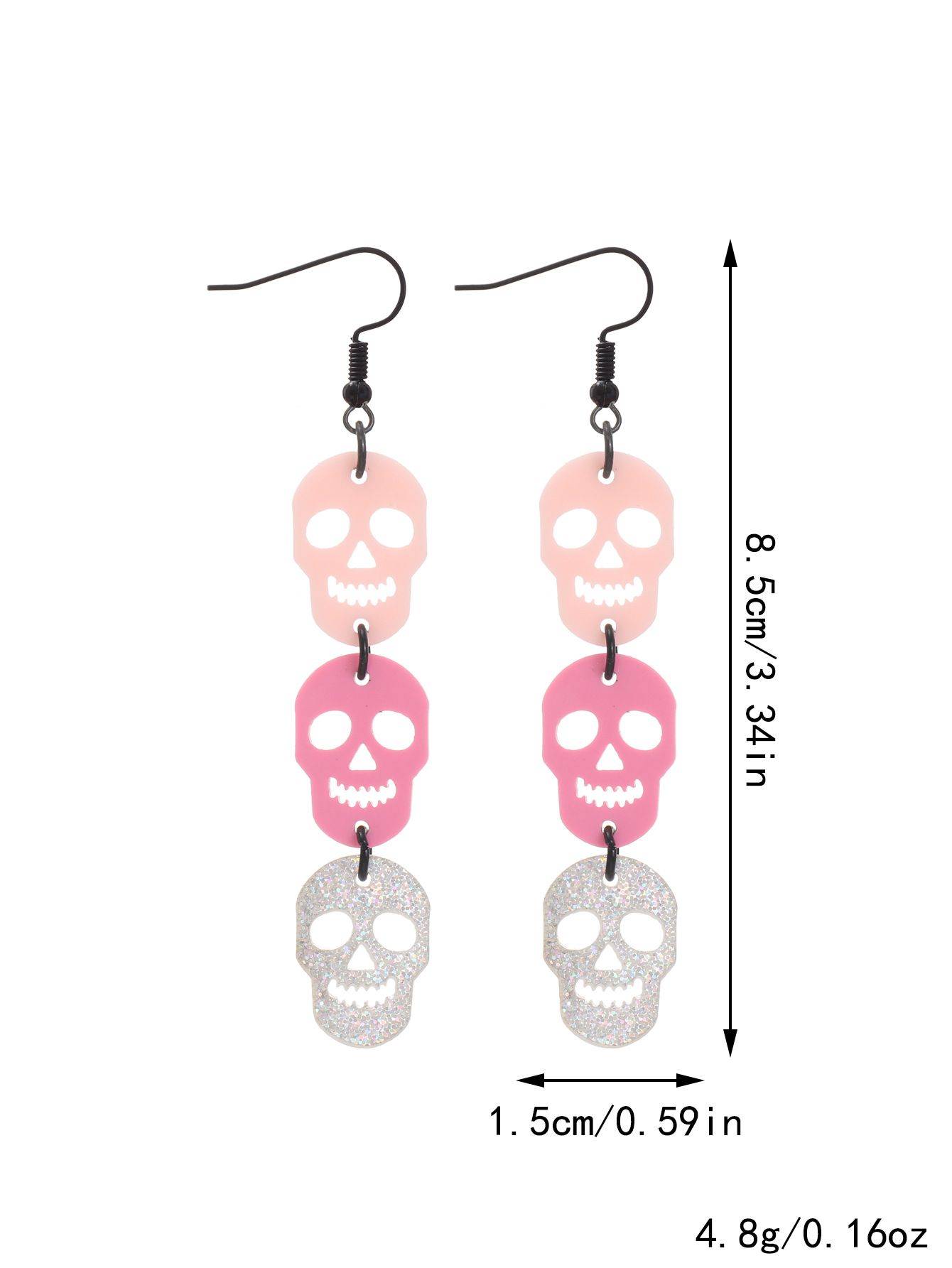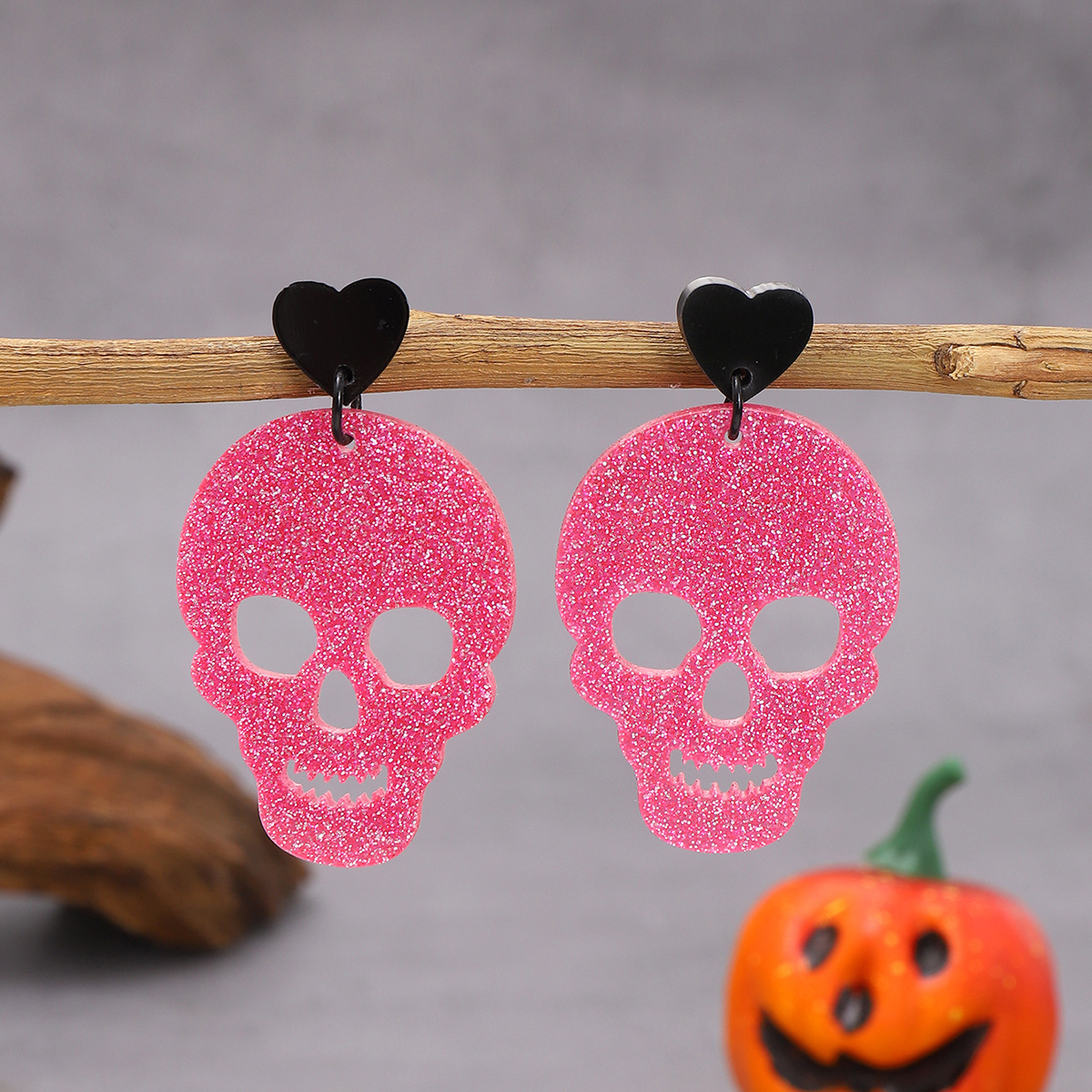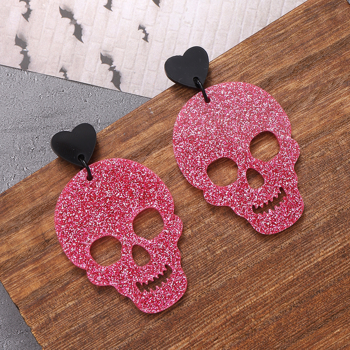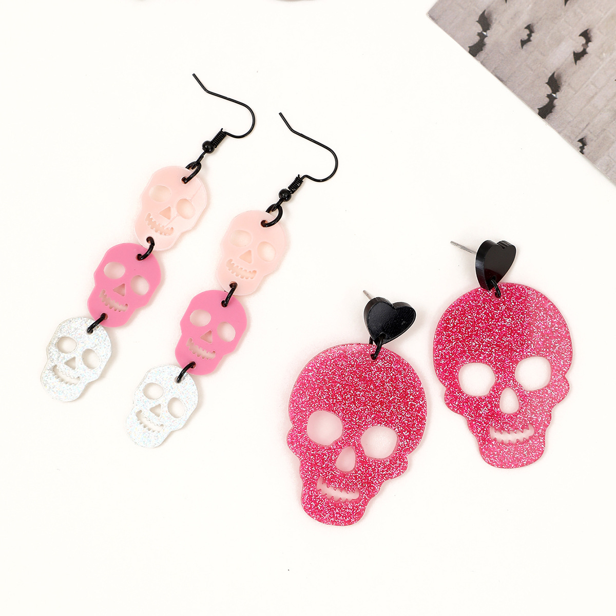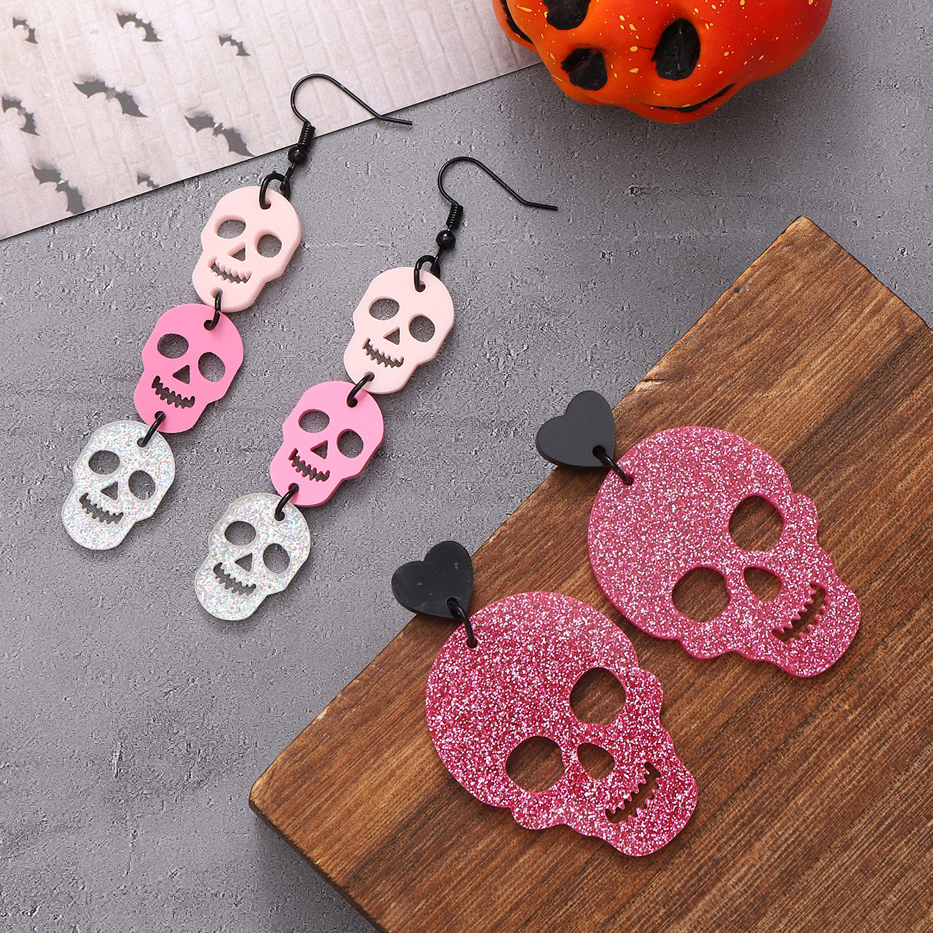 新款万圣节炫彩骷髅头吊坠拼接亚克力夸张耳环耳饰个性嘻哈饰品