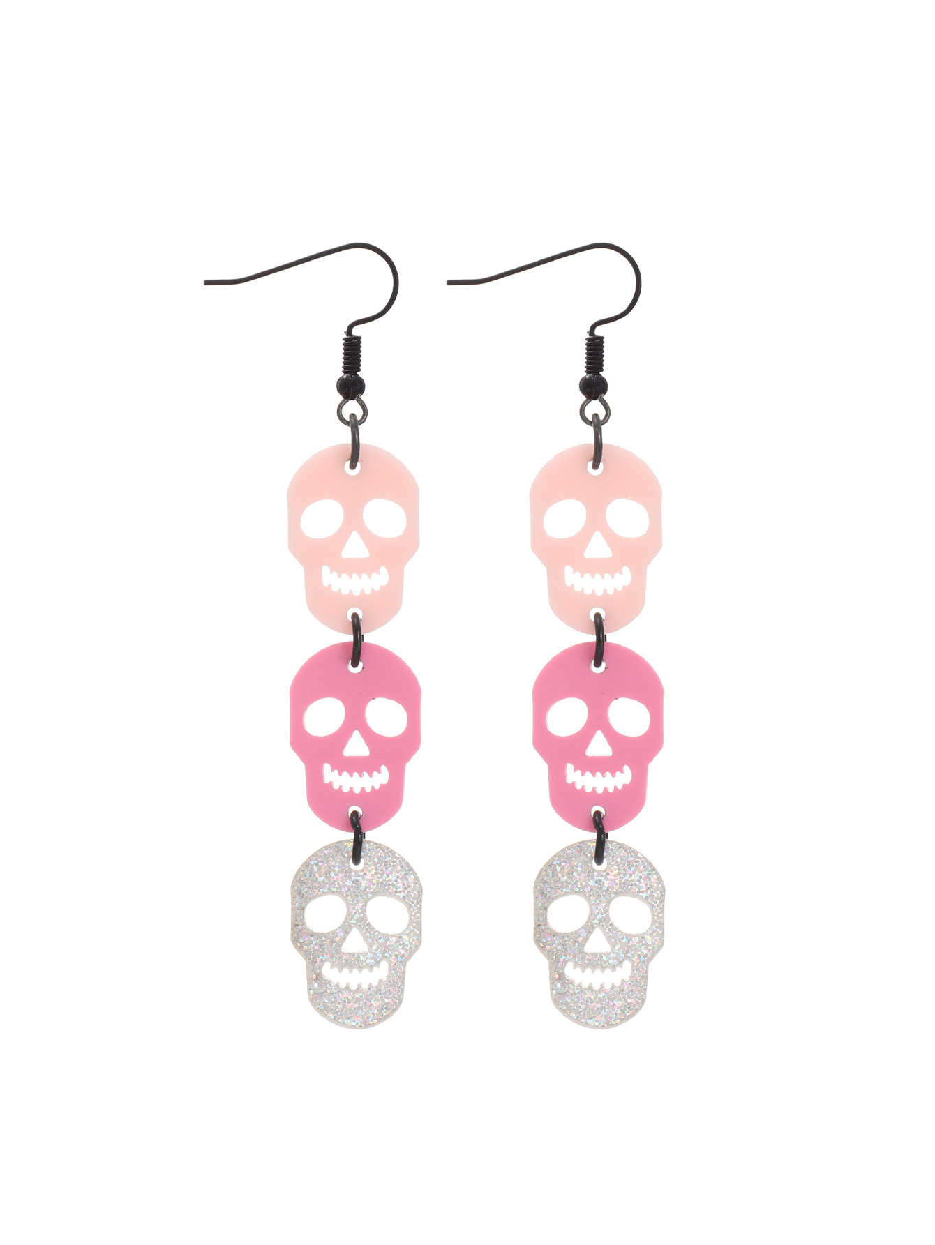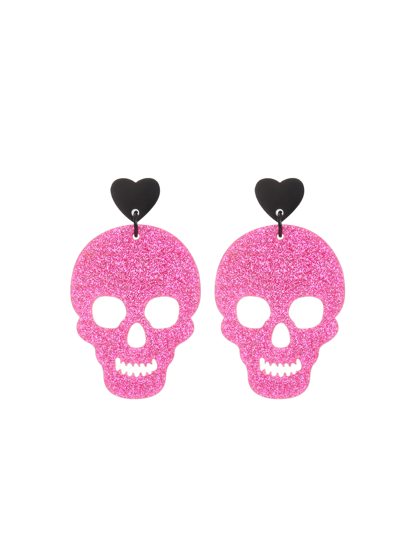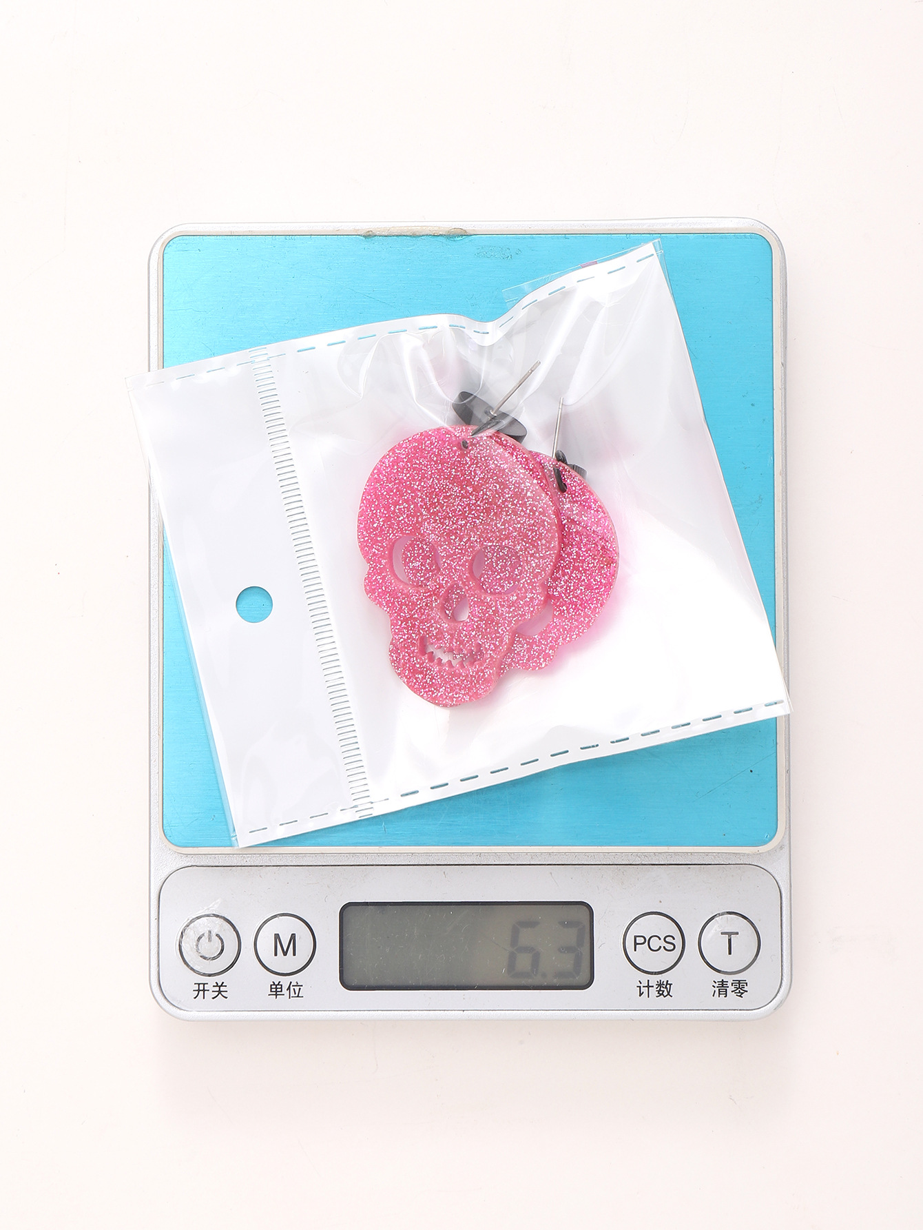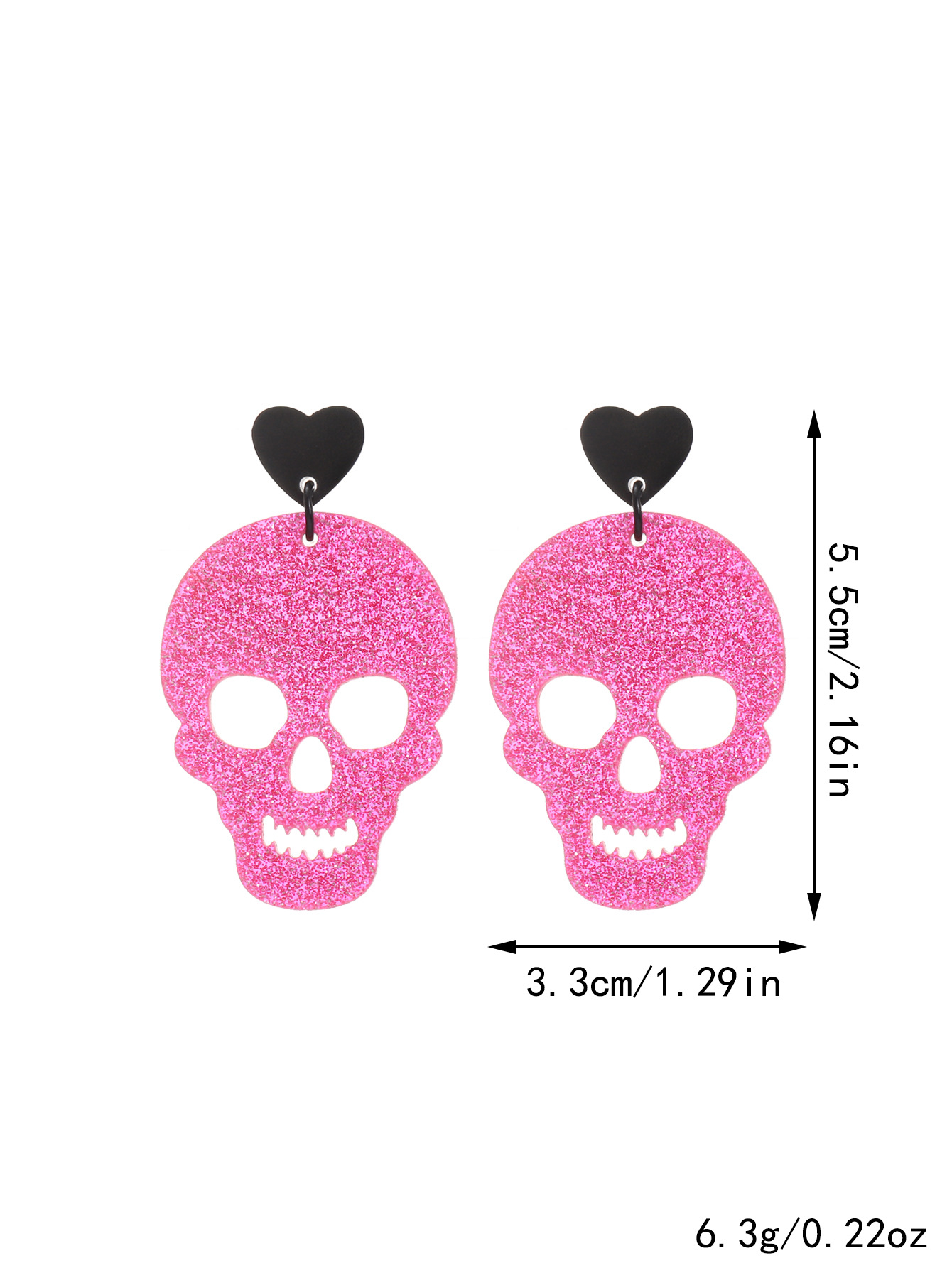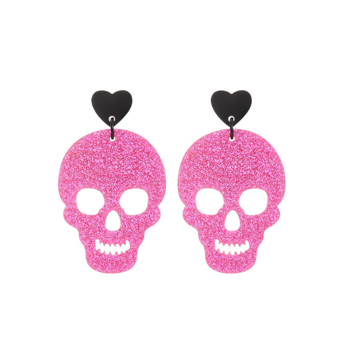 新款万圣节炫彩骷髅头吊坠拼接亚克力夸张耳环耳饰个性嘻哈饰品