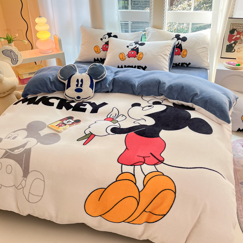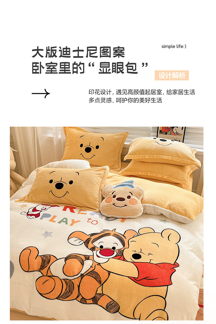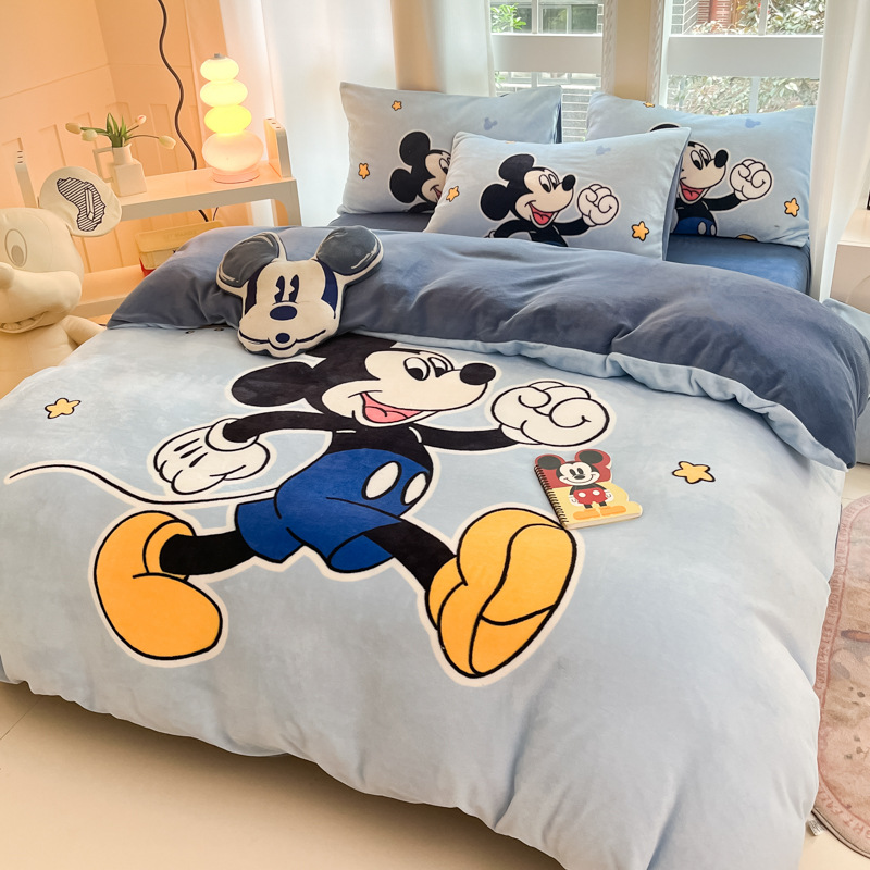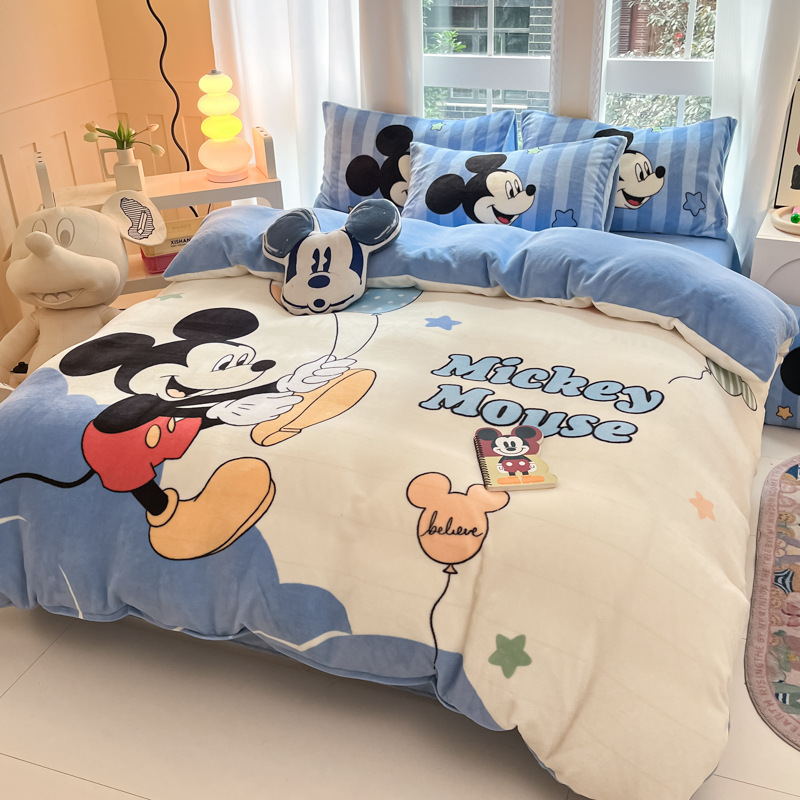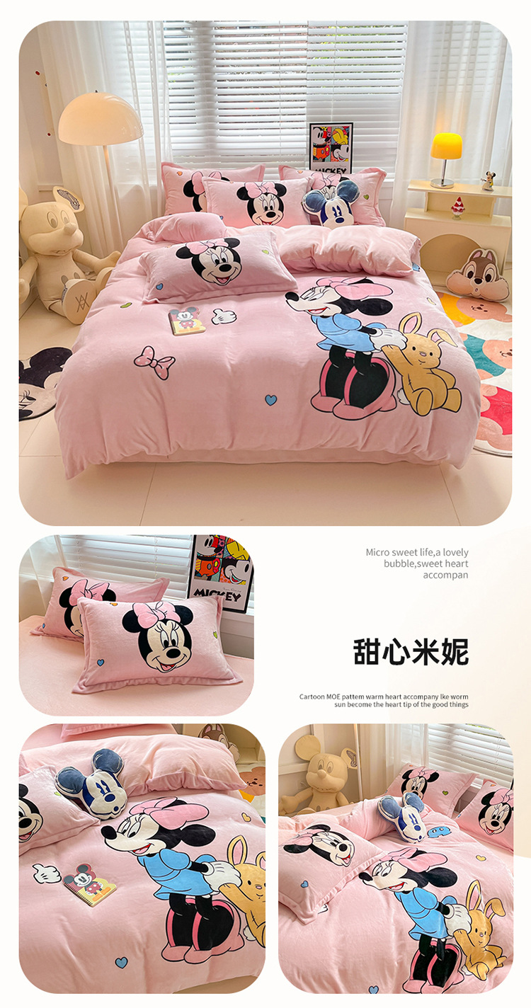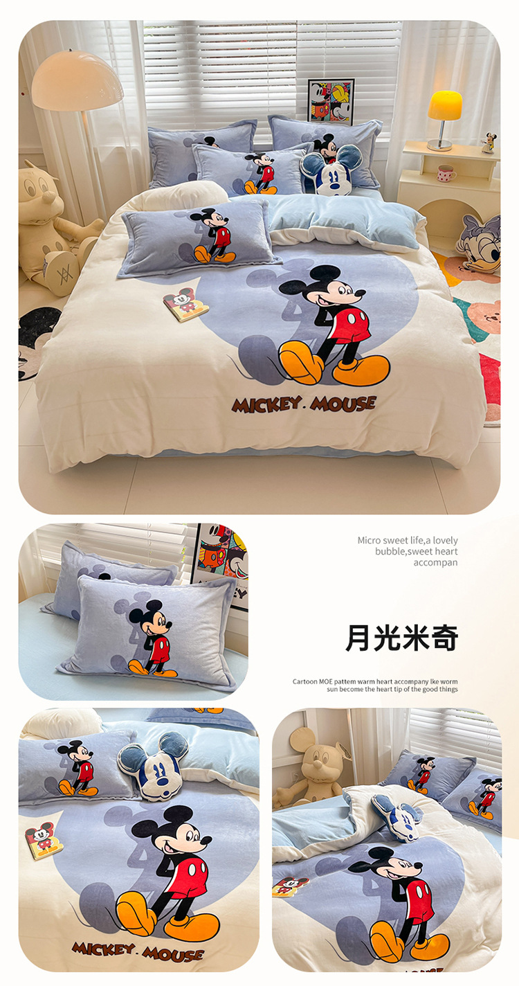 迪士尼加厚牛奶绒四件套冬季双面绒卡通保暖珊瑚绒床上三件套床笠