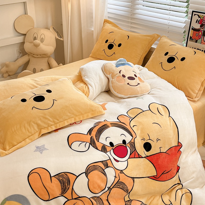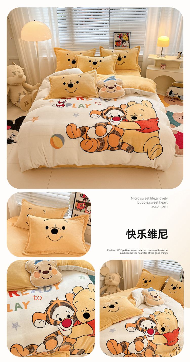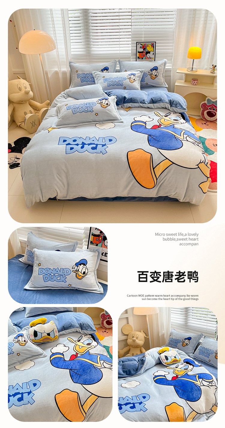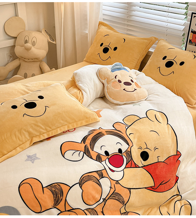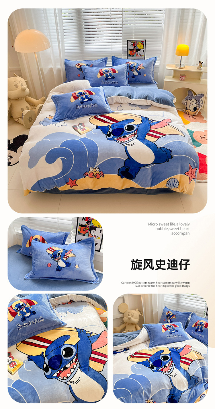 迪士尼加厚牛奶绒四件套冬季双面绒卡通保暖珊瑚绒床上三件套床笠