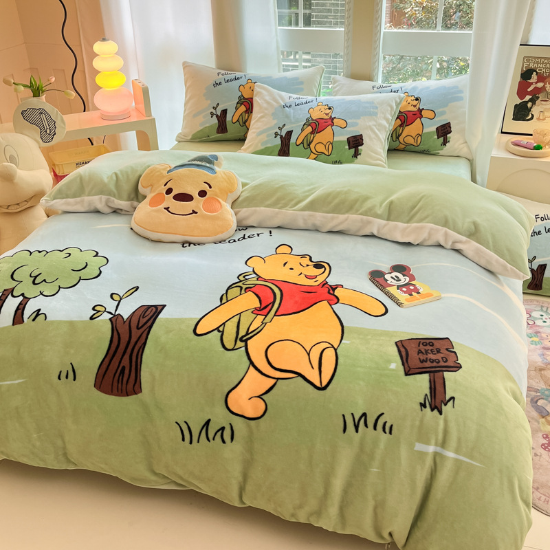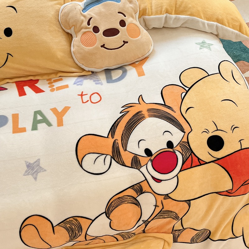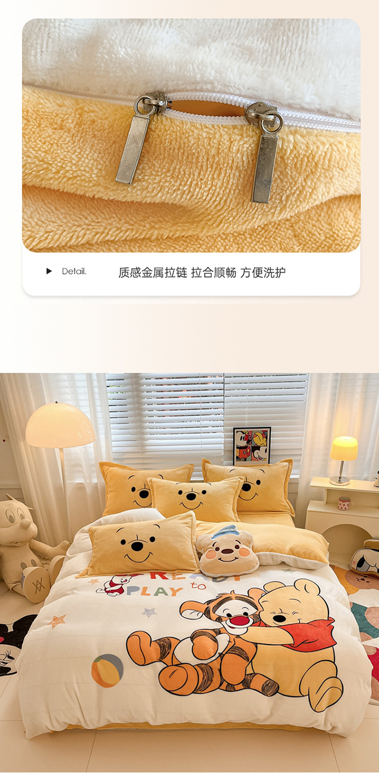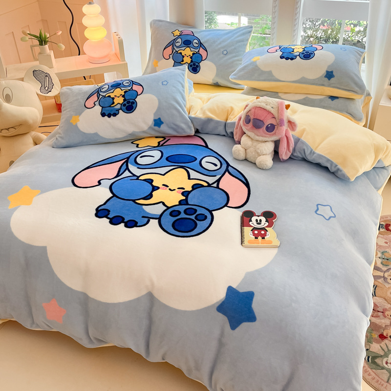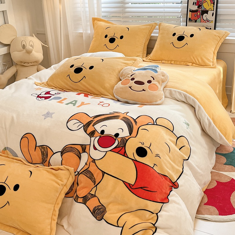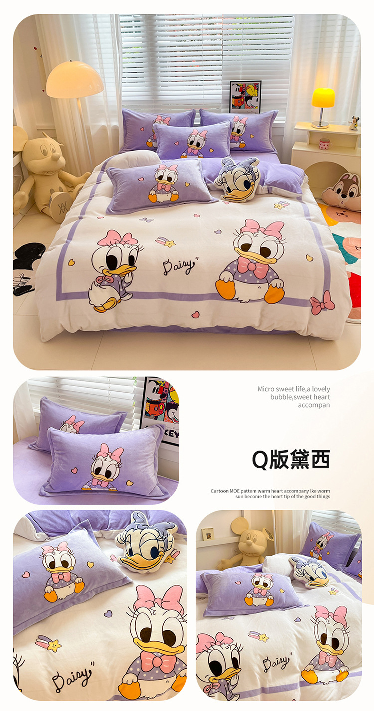 迪士尼加厚牛奶绒四件套冬季双面绒卡通保暖珊瑚绒床上三件套床笠