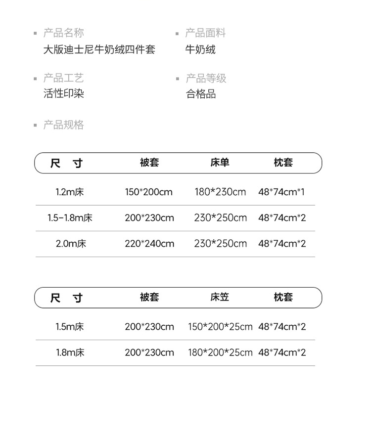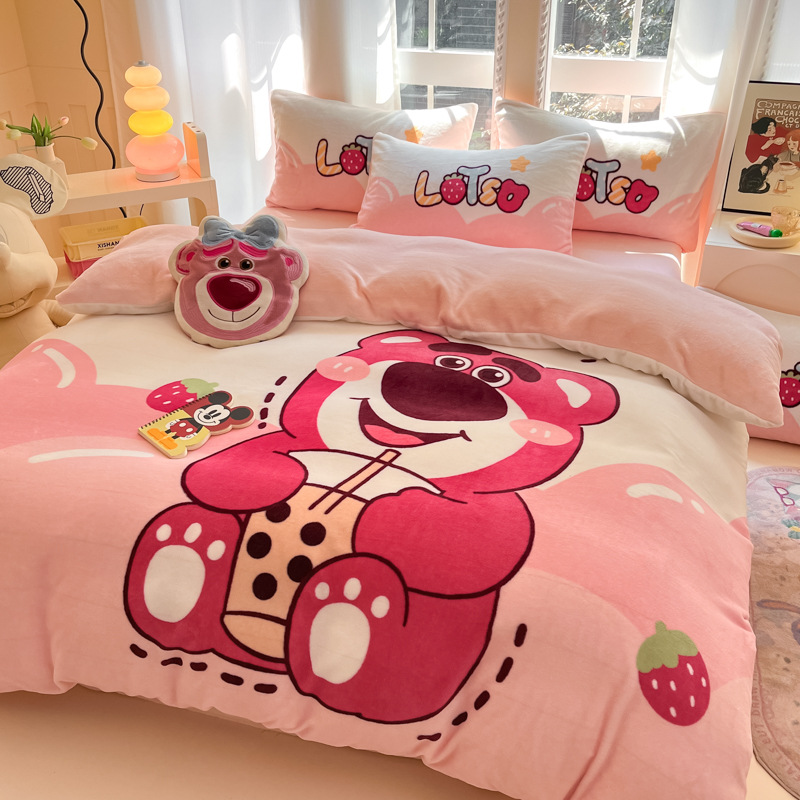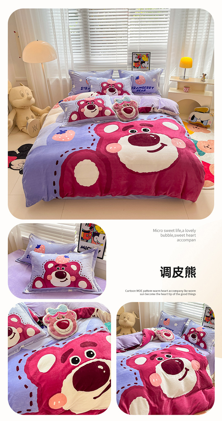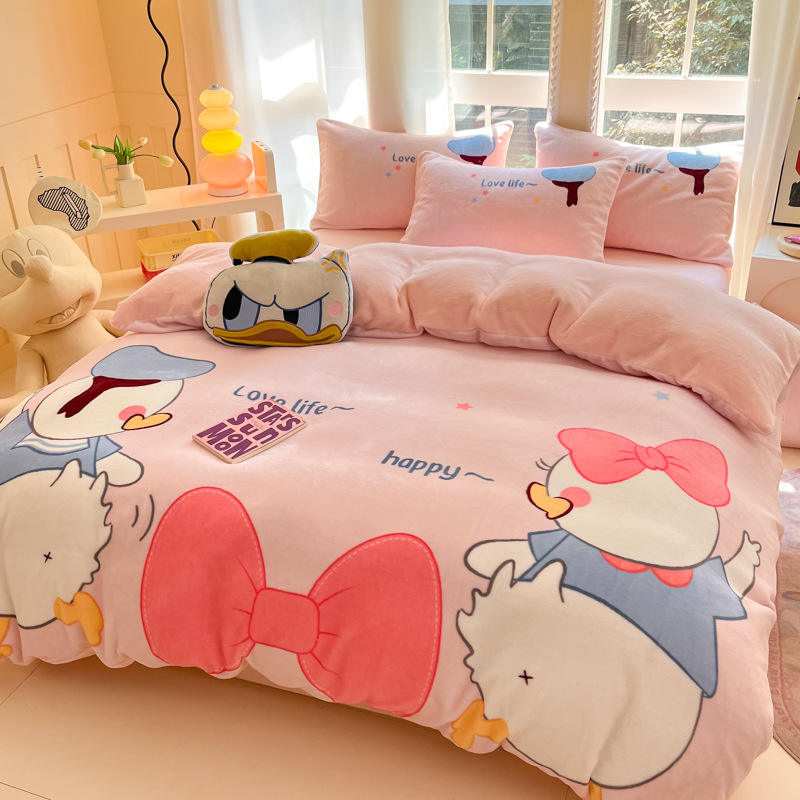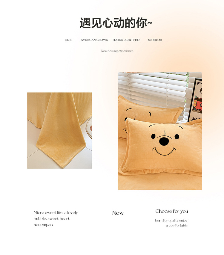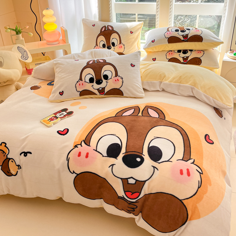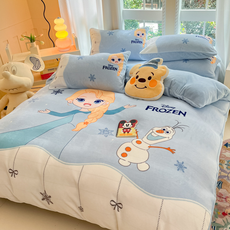 迪士尼加厚牛奶绒四件套冬季双面绒卡通保暖珊瑚绒床上三件套床笠