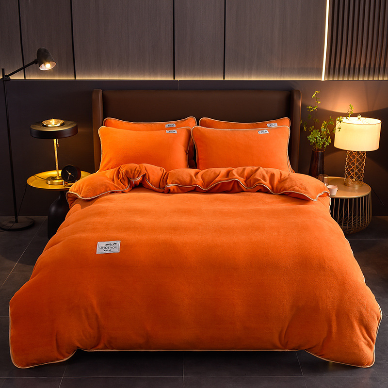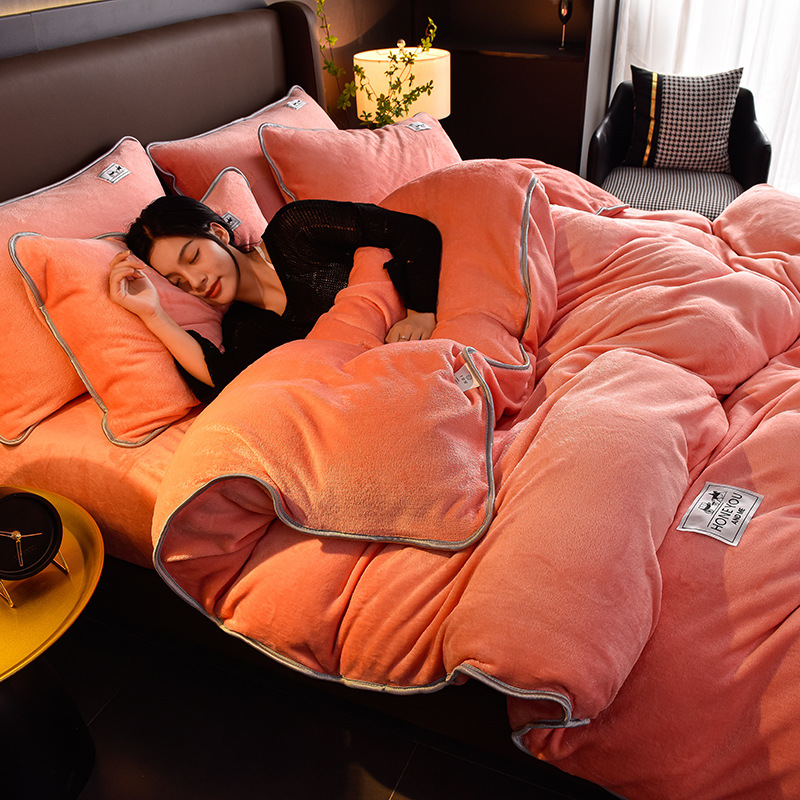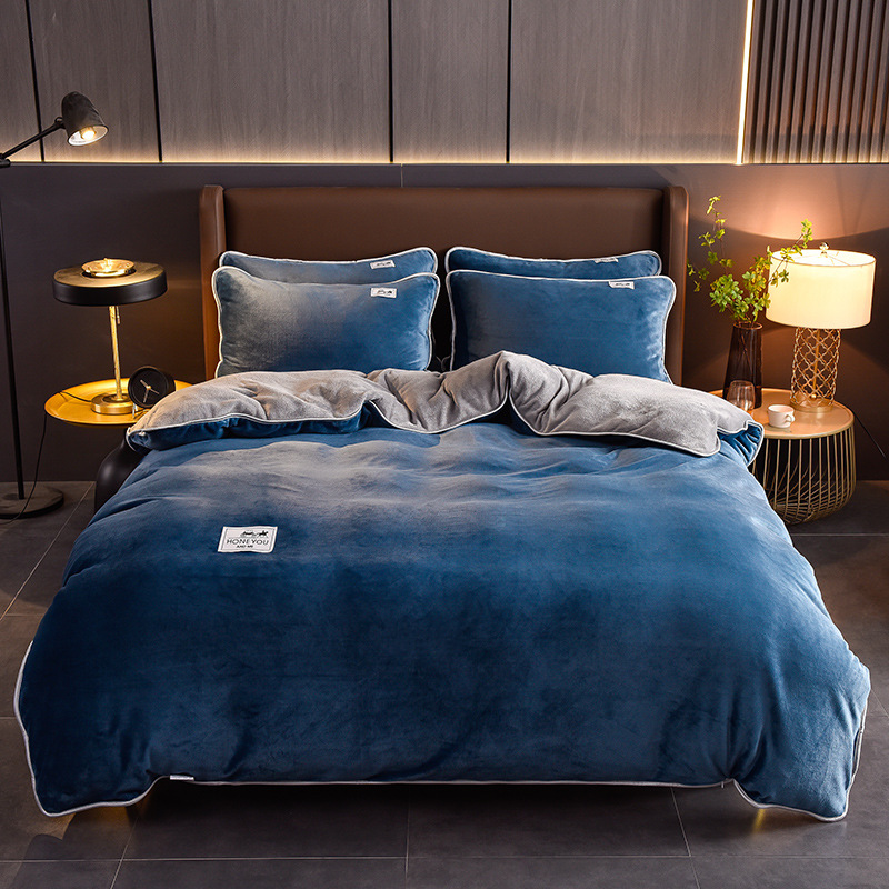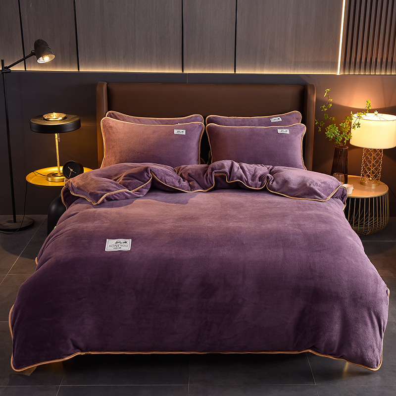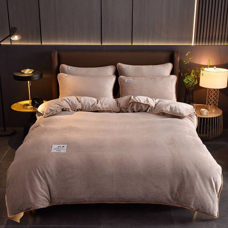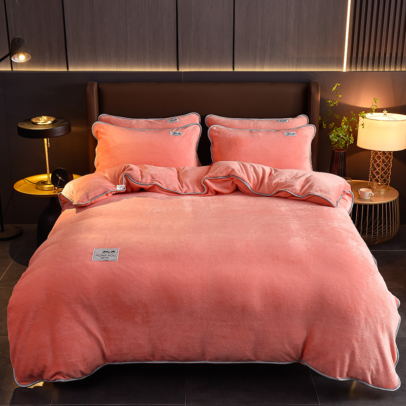 秋冬纯色加厚牛奶绒床上四件套双面加绒被套单件保暖珊瑚绒三件套