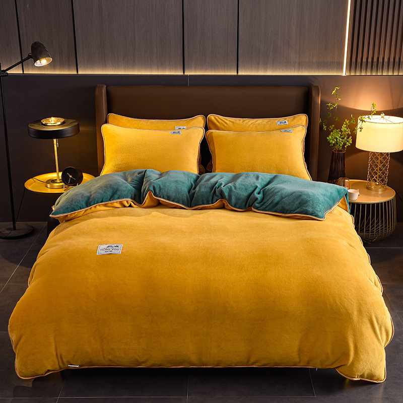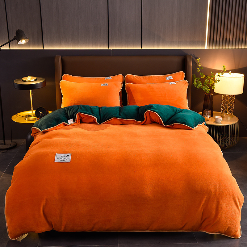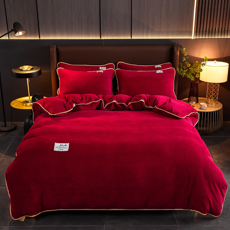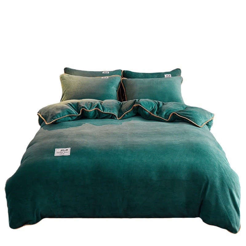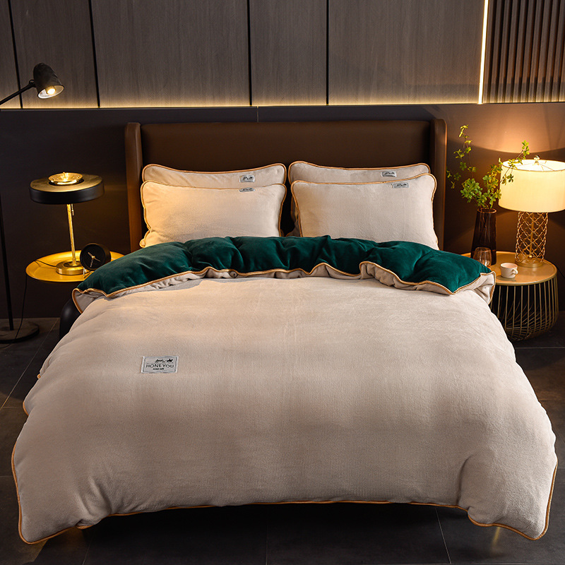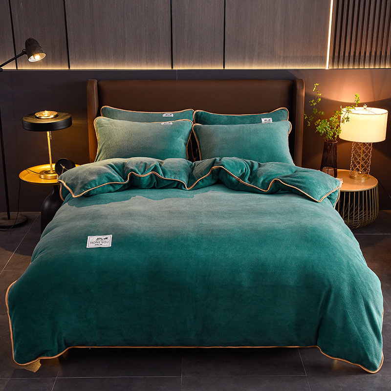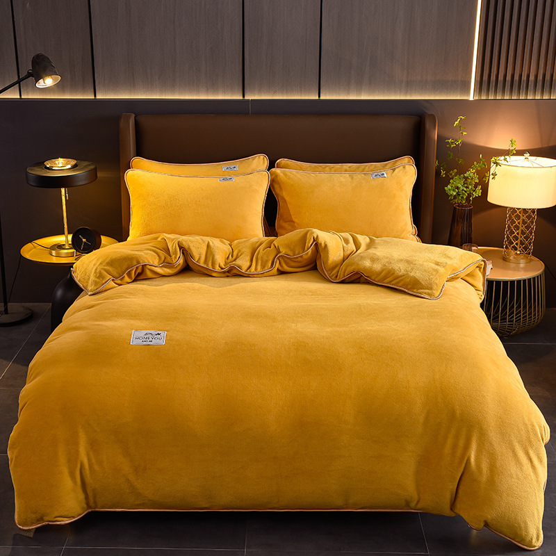 秋冬纯色加厚牛奶绒床上四件套双面加绒被套单件保暖珊瑚绒三件套