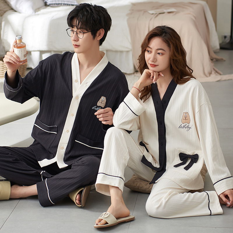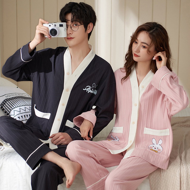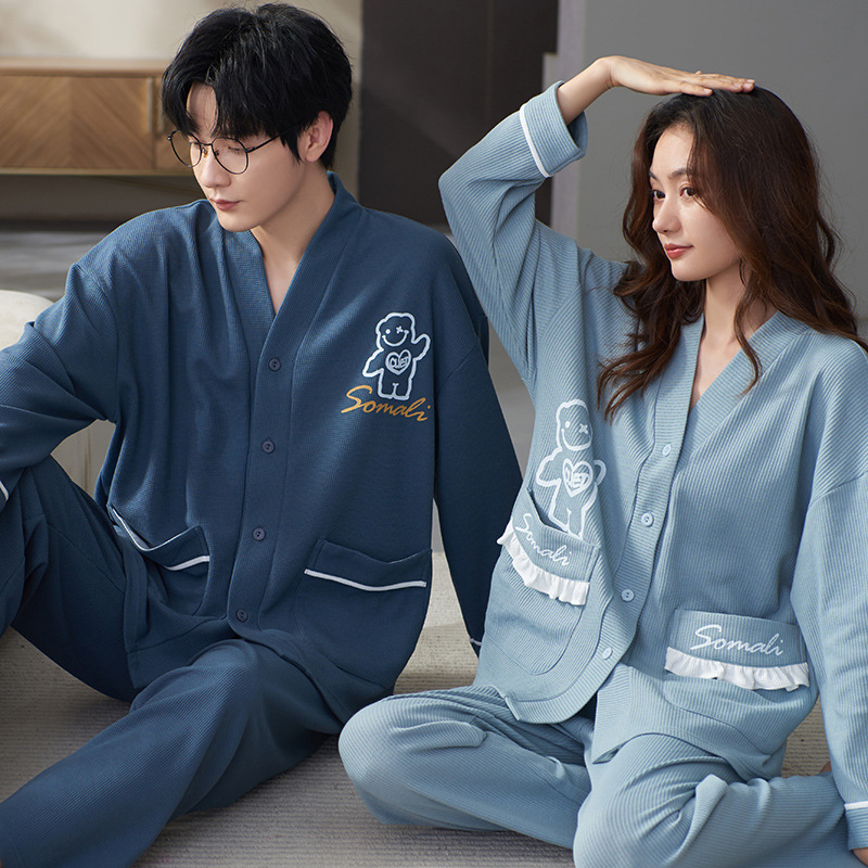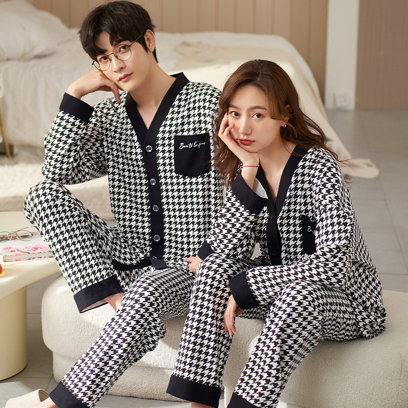 鹿时华夫格情侣睡衣女秋棉质长袖结婚喜庆大红色家居服男春秋套装