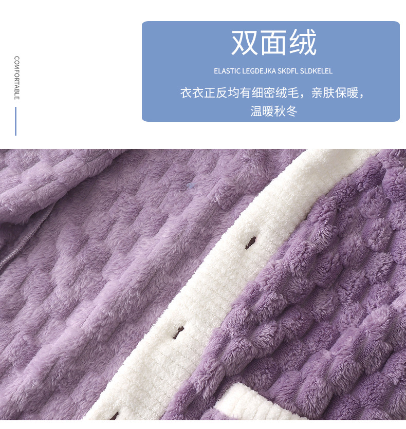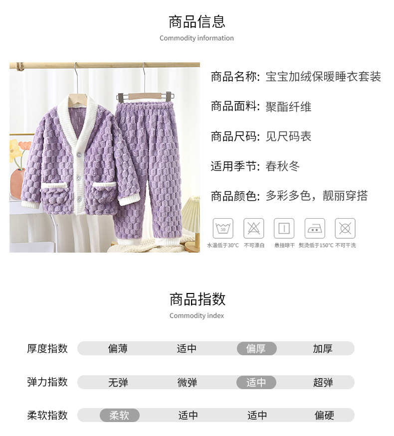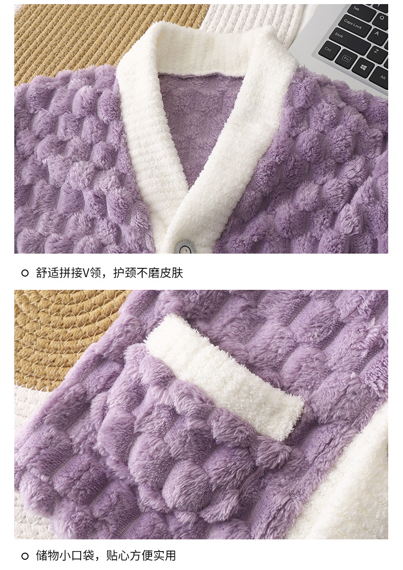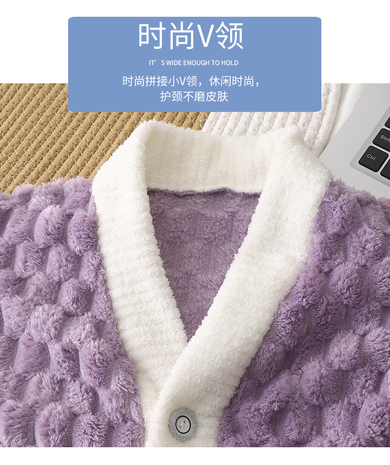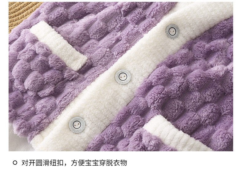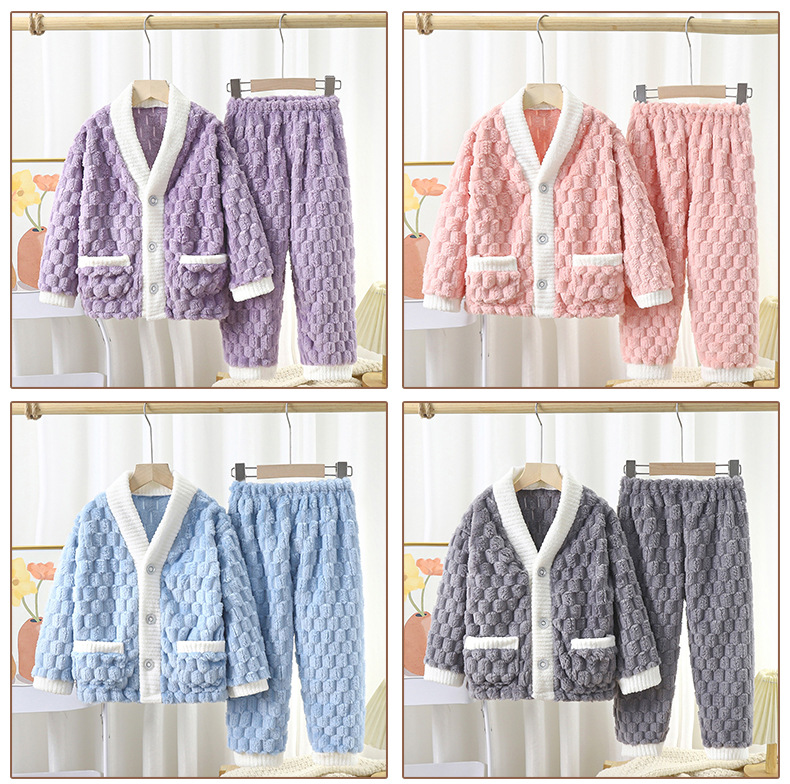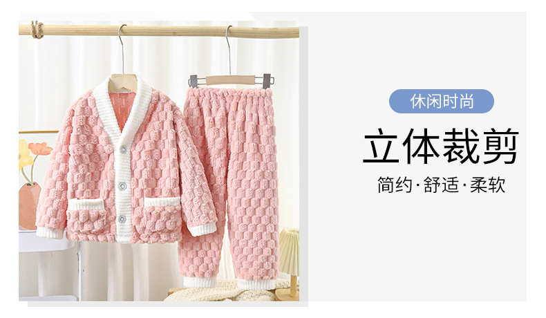 儿童法兰绒睡衣秋冬加厚提花金龟绒长袖长裤中大童纯色开衫家居服