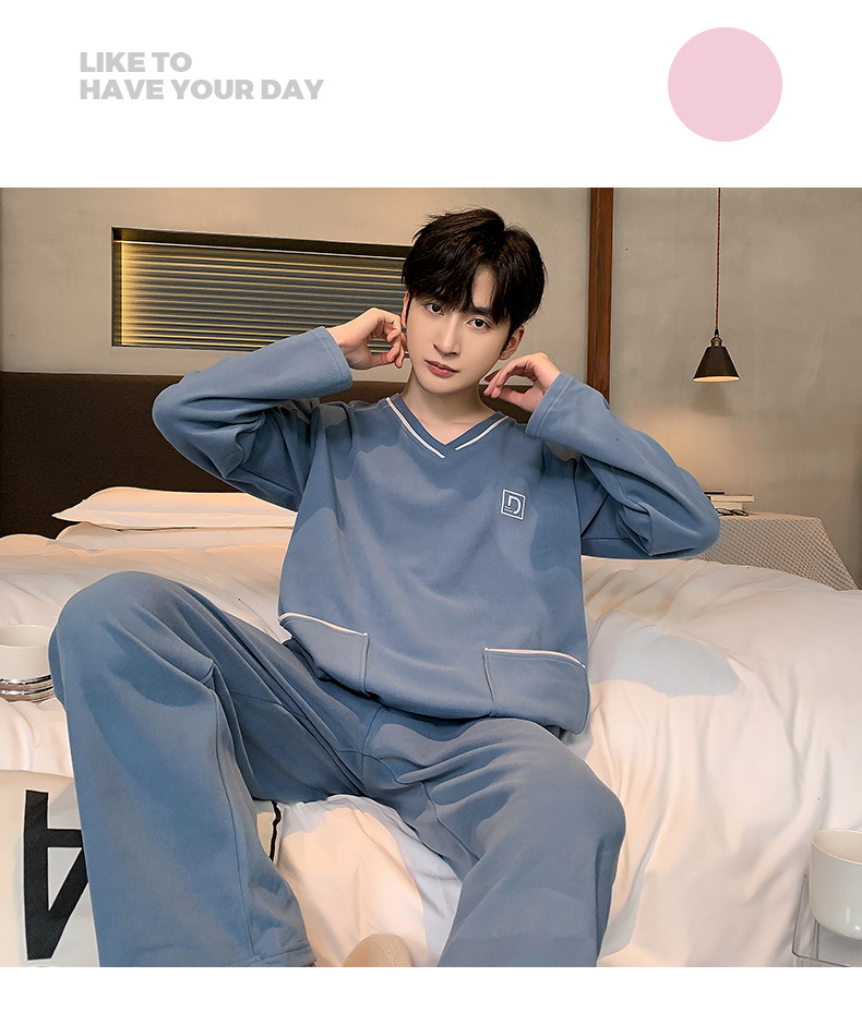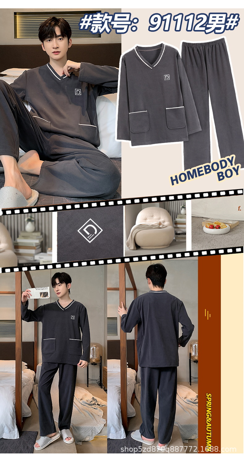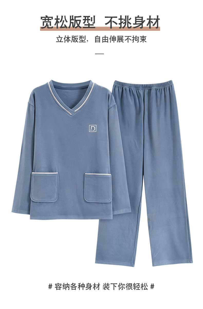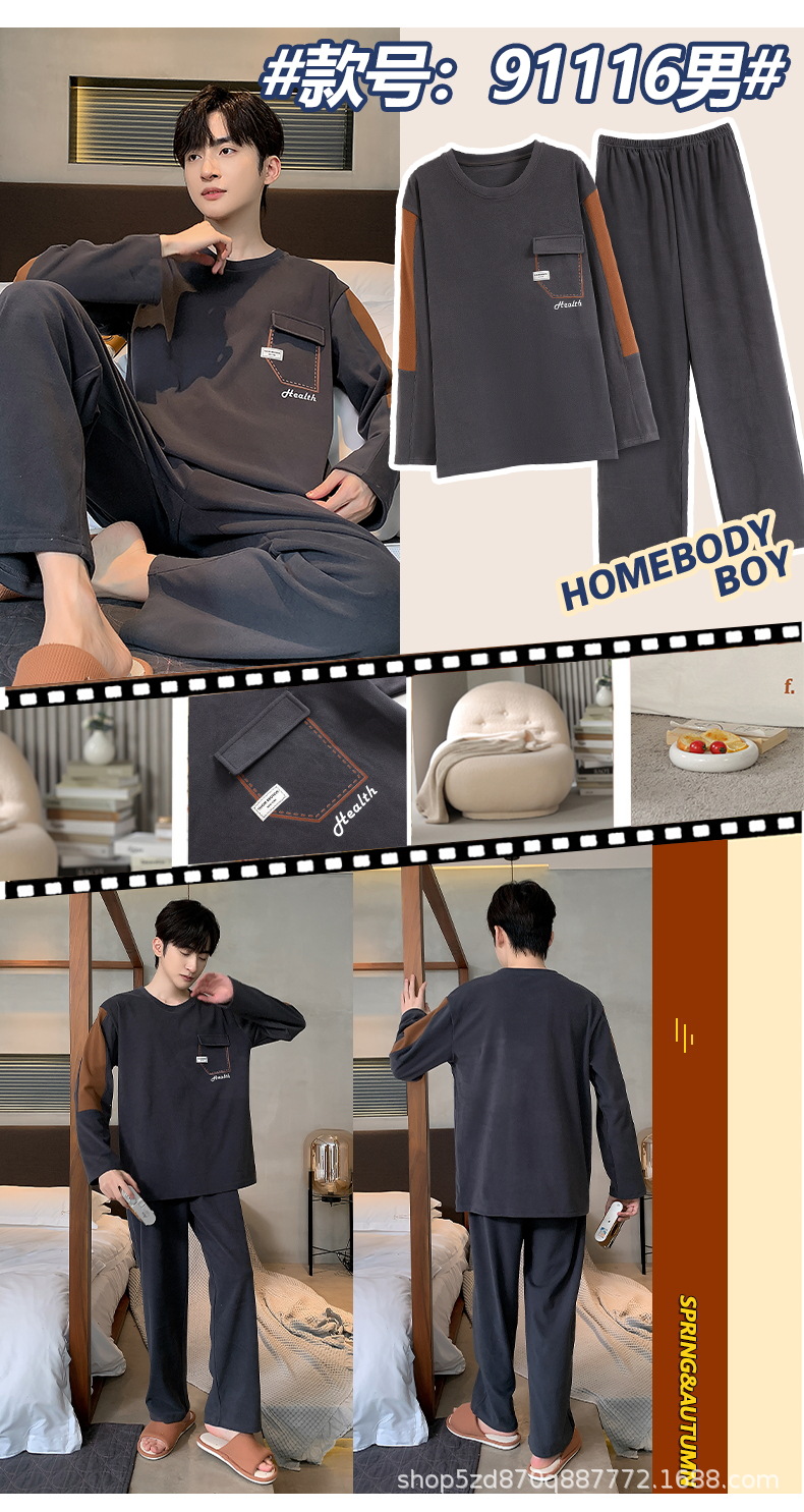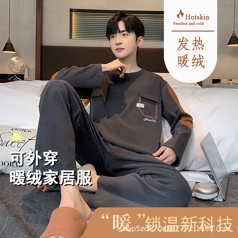 新款德绒灰睡衣男秋冬长袖长裤套头高级男士可外穿休闲家居服套装