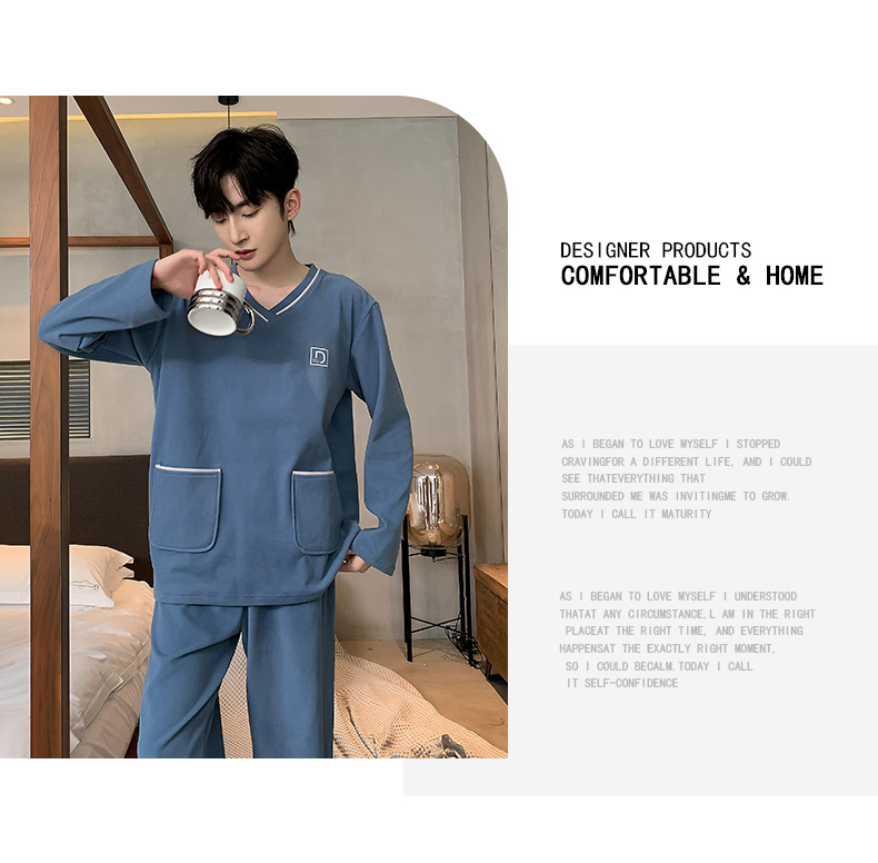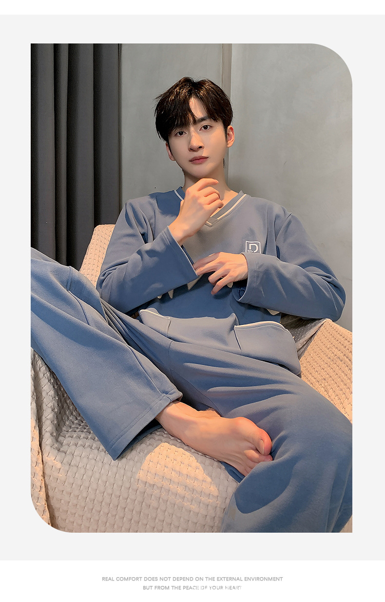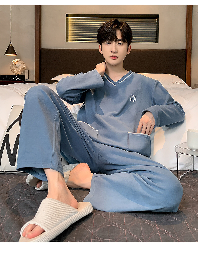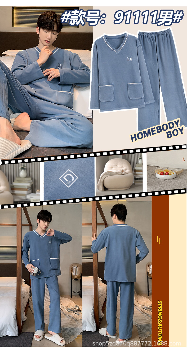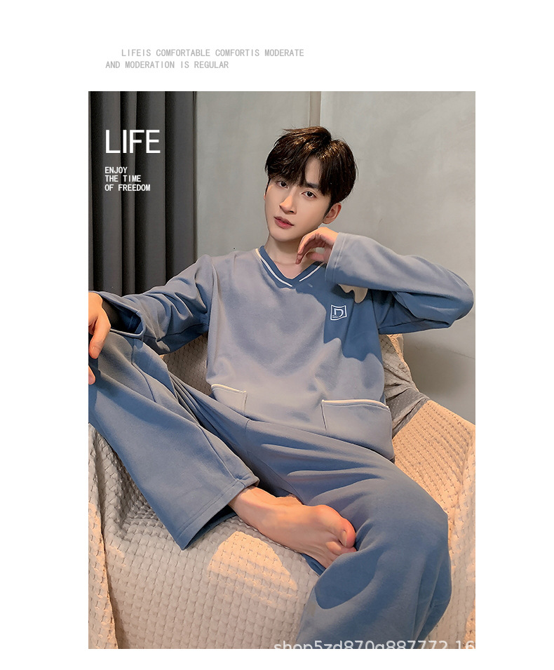 新款德绒灰睡衣男秋冬长袖长裤套头高级男士可外穿休闲家居服套装