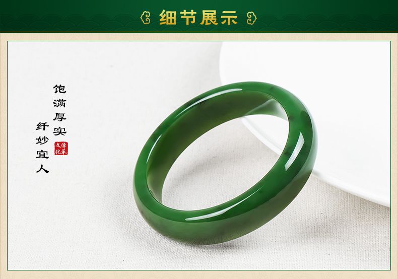 【送礼盒+证书】偶玉新疆旺夫碧玉手镯女加大码手镯大号手镯礼物