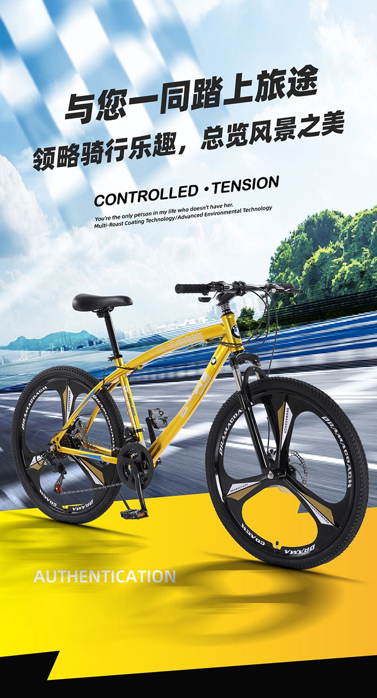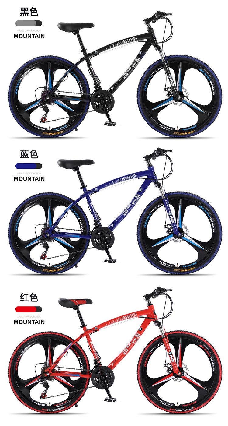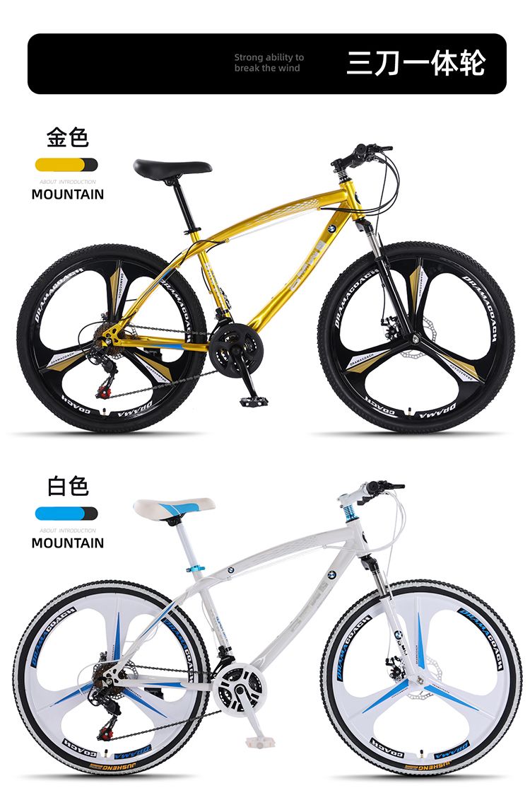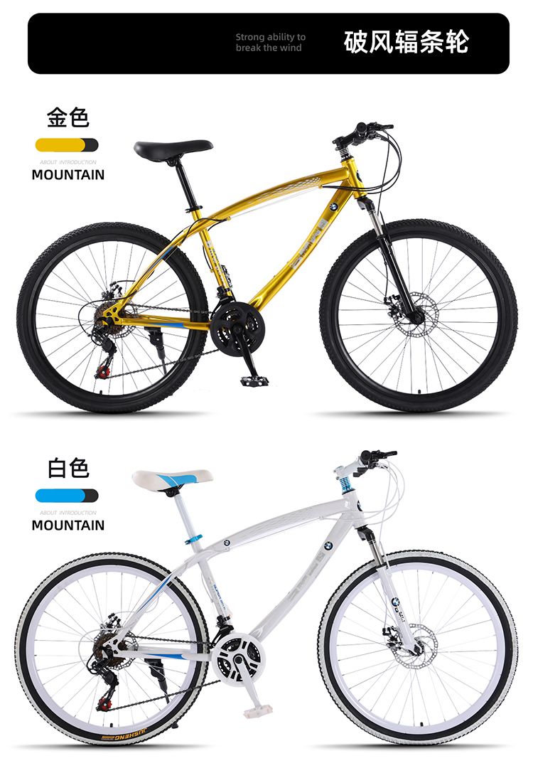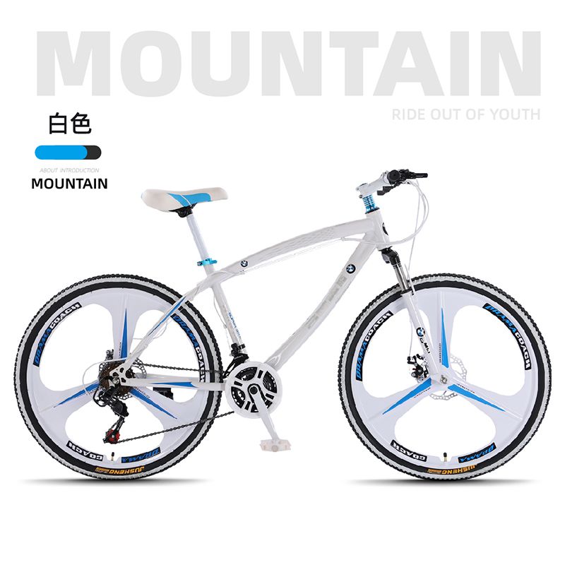 宝马变速山地自行车双碟刹减震男女学生镁合金一体轮城市户外单车