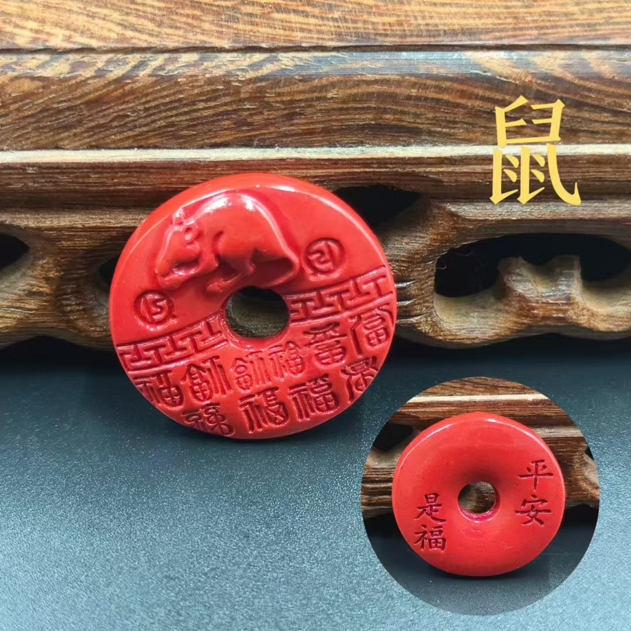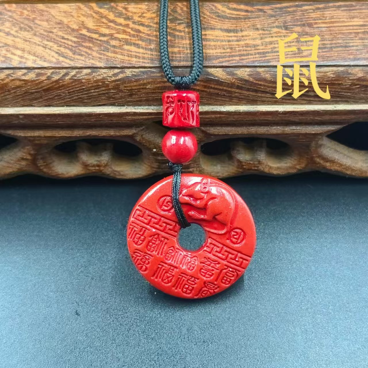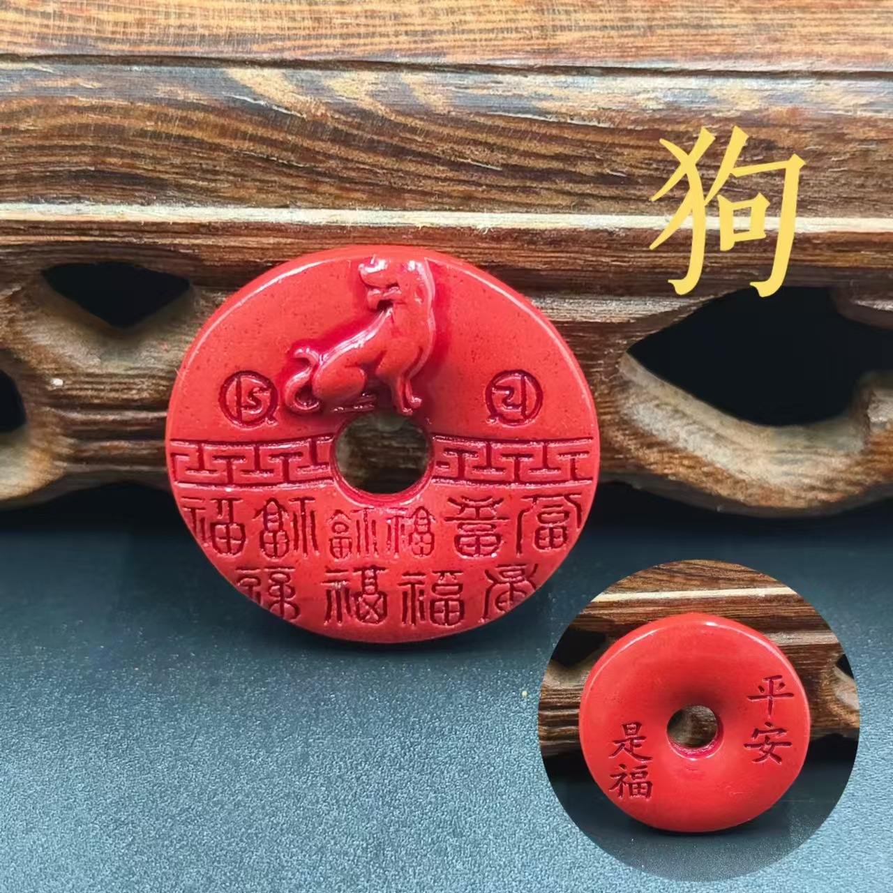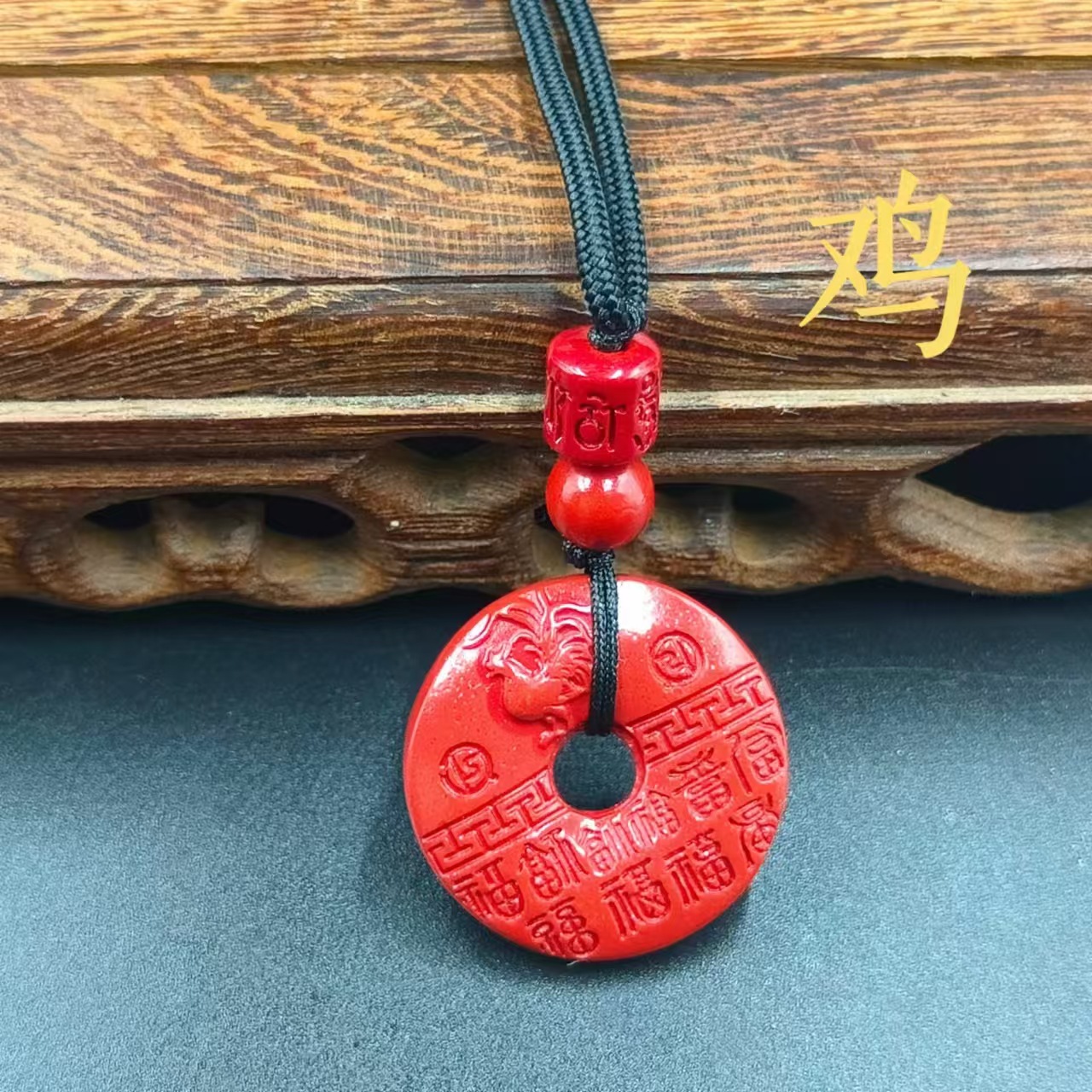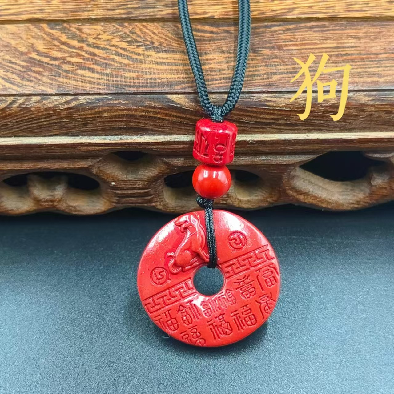 朱砂紫金砂十二生肖福字平安扣吊坠挂件本命年男女款项链直播批发