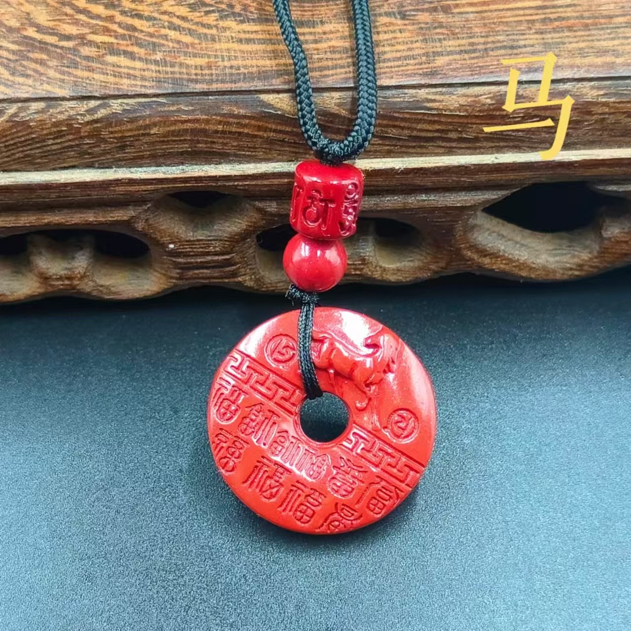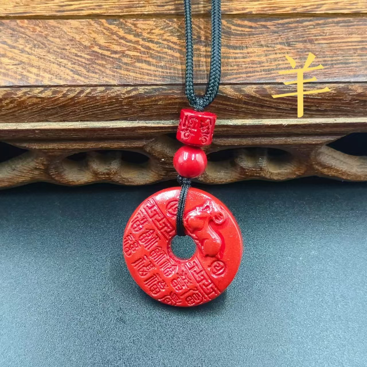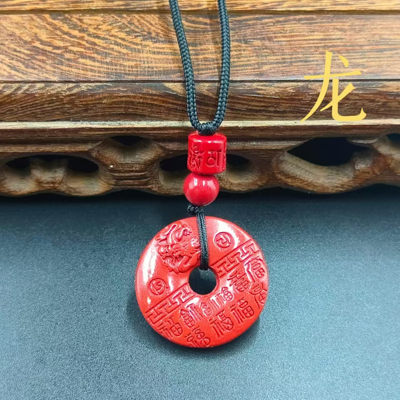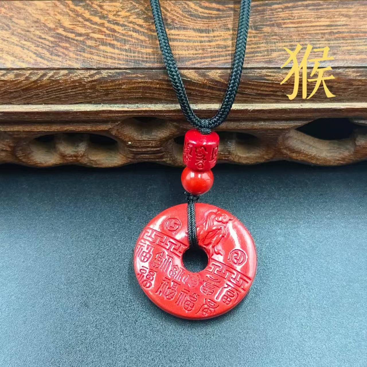 朱砂紫金砂十二生肖福字平安扣吊坠挂件本命年男女款项链直播批发